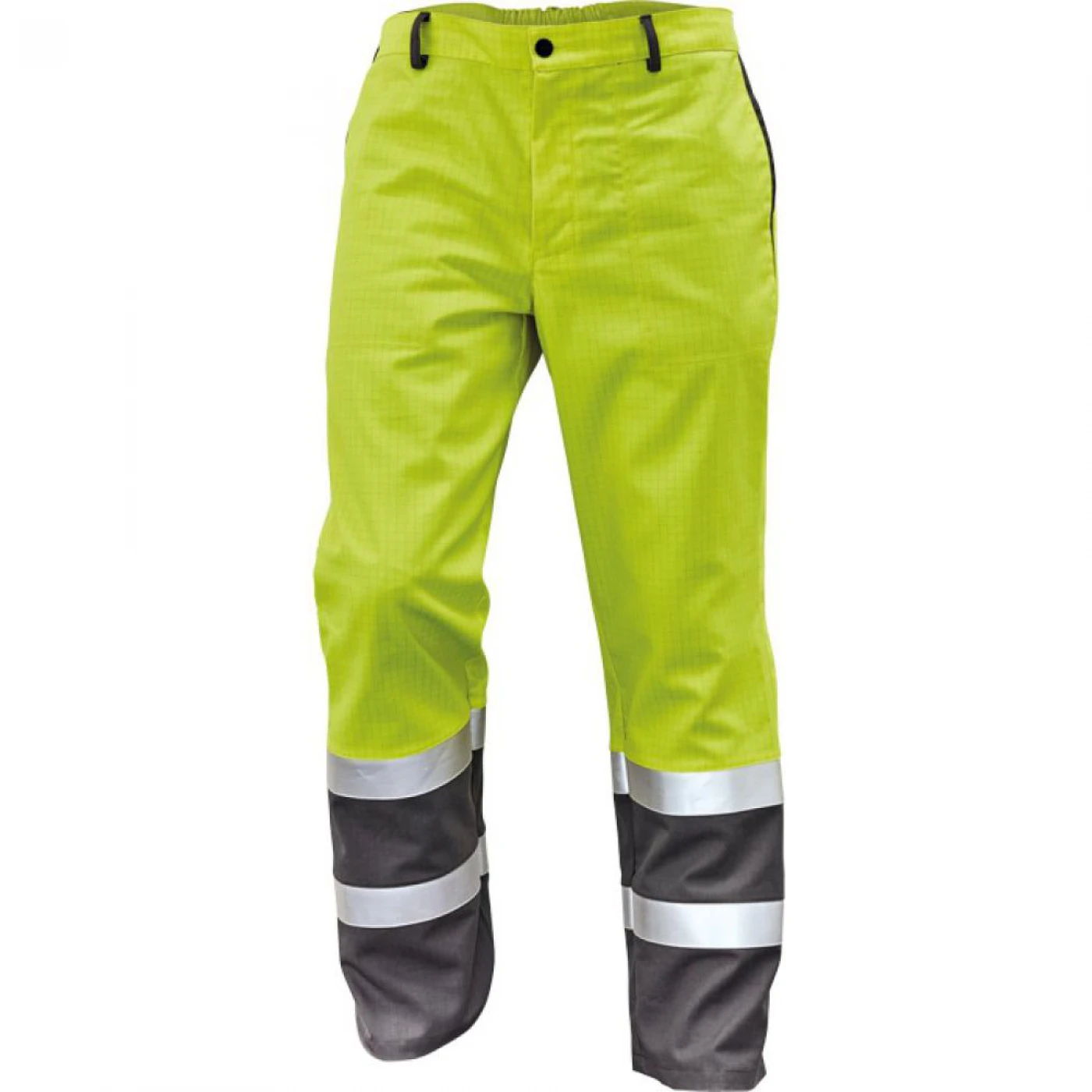 Materialul principal - antistatic, ignifug, este adecvat pentru utilizare în atmosfere potențial explozive și în zonele unde se manipulează substanțe inflamabile.Poate fi folosit de persoane care sunt expuse la căldură și flacără. Respectă cerințele standardului pentru îmbrăcămintea de înaltă vizibilitate, așadar poate fi utilizat atât în timpul zilei, cât și în timpul nopții. Buzunare laterale la piept; buzunar mic pe piciorul drept; buzunarele din spate, ambele acoperite cu clapetă; talie cu bandă elastică; benzi reflectorizante sub linia genunchiului; suport pentru curea