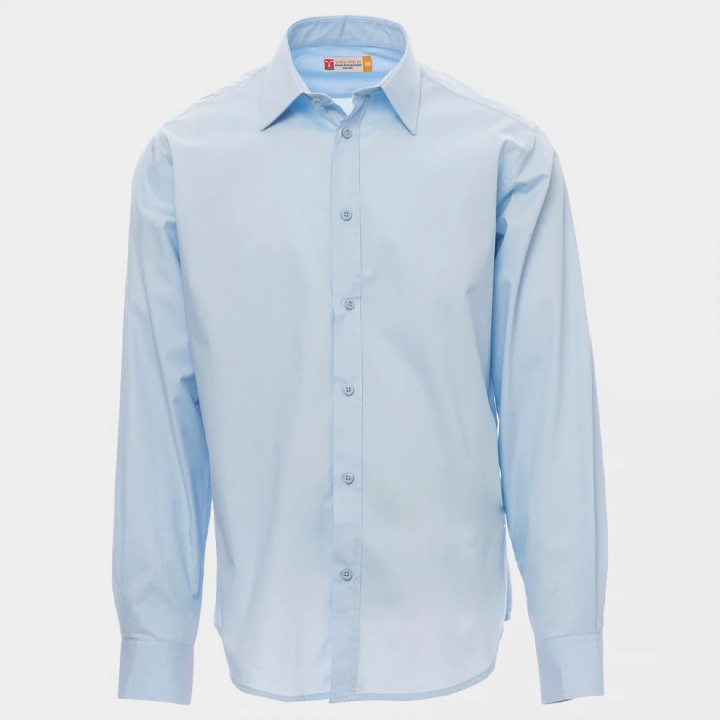 Cămașă pentru bărbați din bumbac cu o silueta ușor mulata. Guler în stil italian, manșeta cu doi nasturi. Placă și pliuri pe spate.