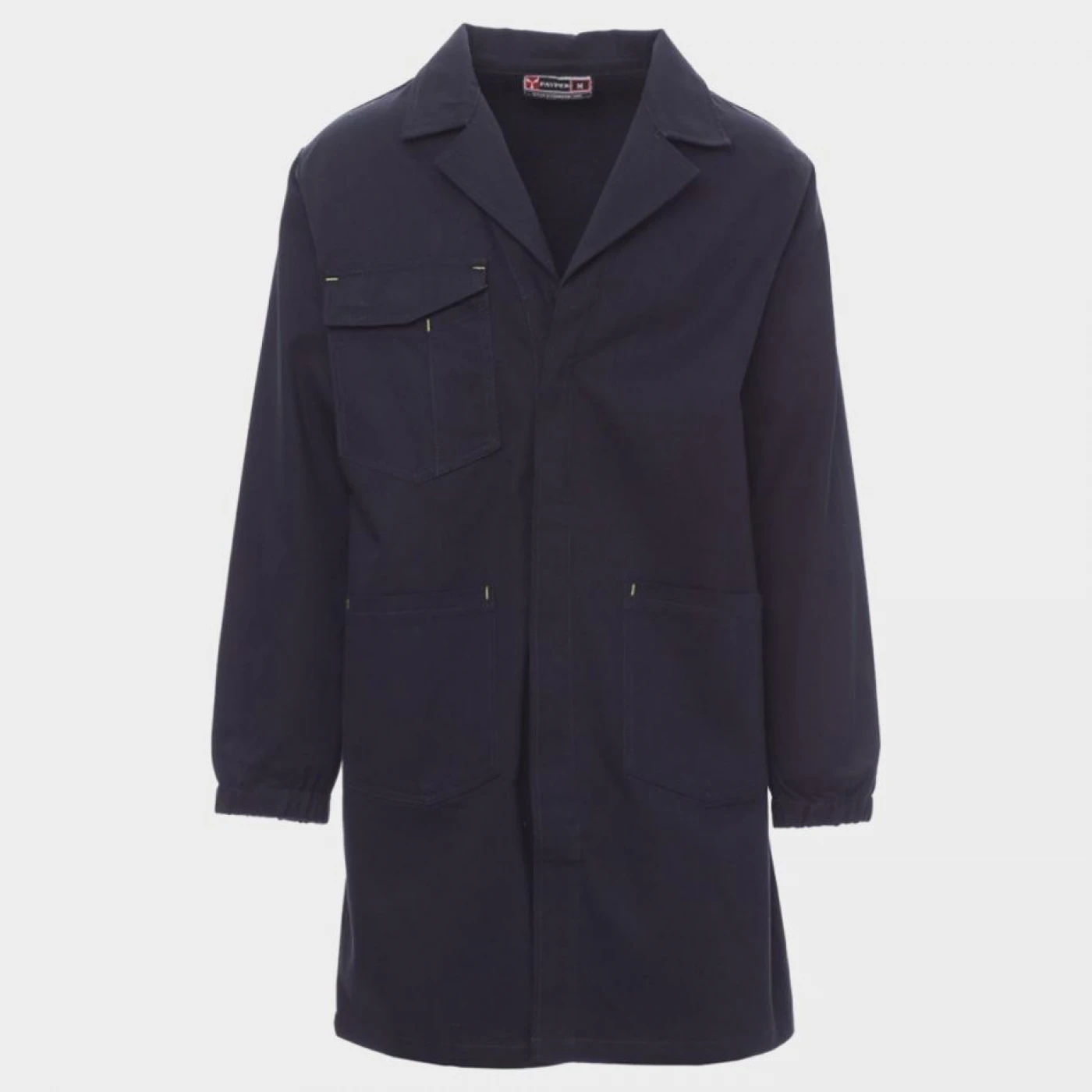 Halat cu guler deschis, bandă elastică la manșete, închidere cu nasturi neacoperiți, două buzunare aplicate și un buzunar pe piept cu suport smartphone, suport ecuson, suport pix și clapă de închidere cu velcro.