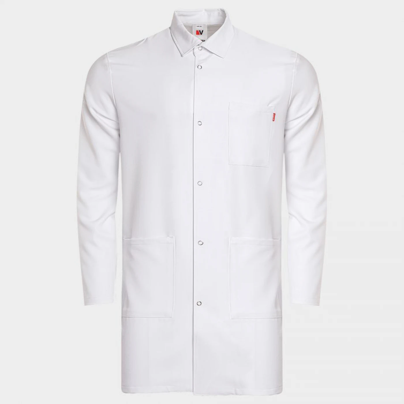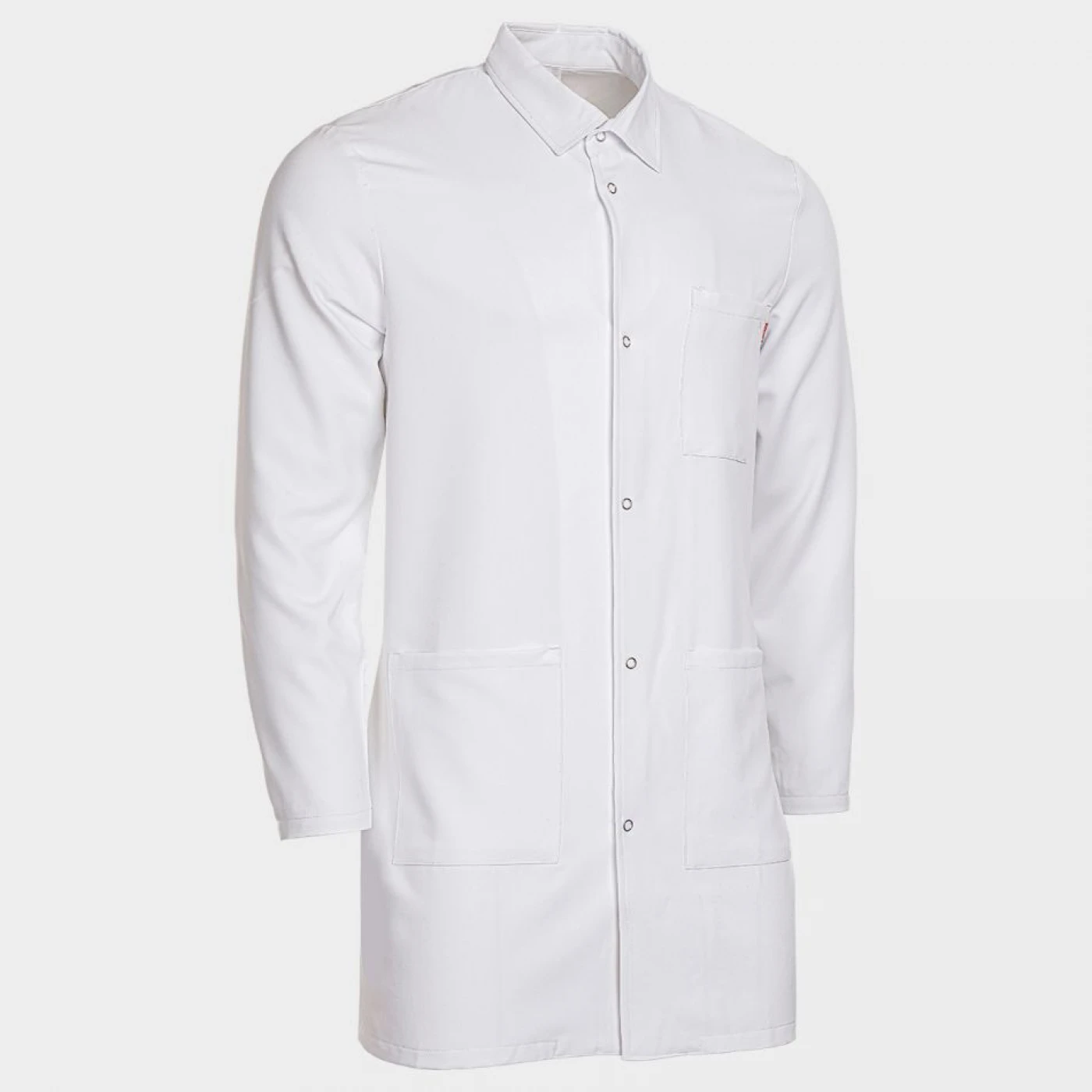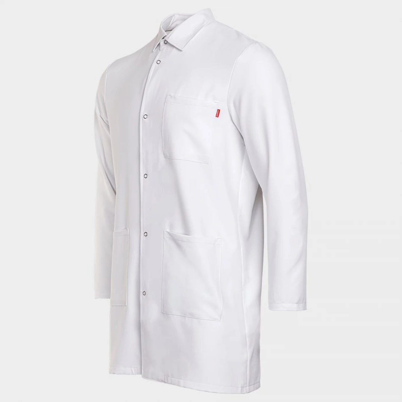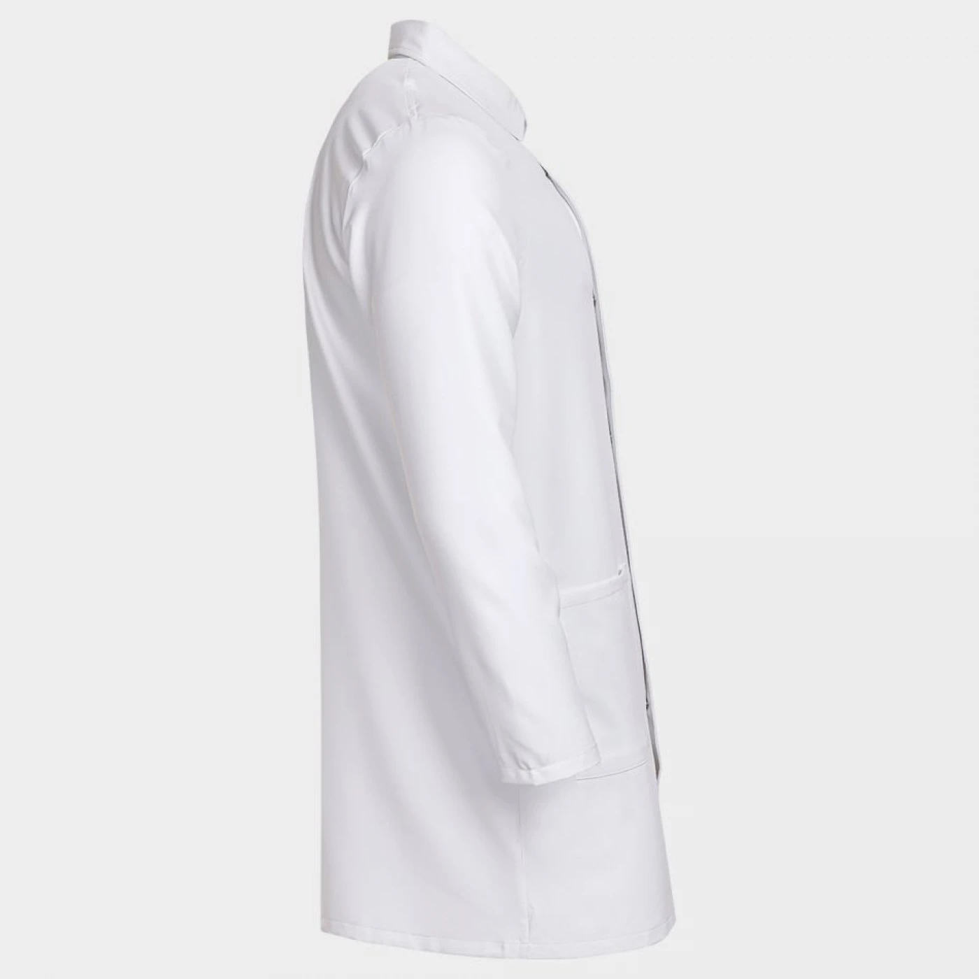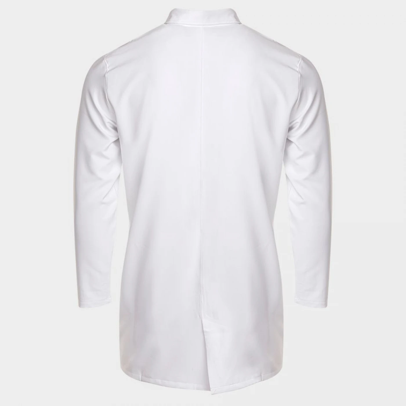 Halat cu mâneci lungi. Un buzunar superior, două buzunare inferioare, un buzunar suplimentar mic în buzunarul din dreapta. Guler cu rever, închidere cu nasturi tip capse. Material hidrofug, rezistent la pete, antibacterian, respirabil. Croială lejeră.