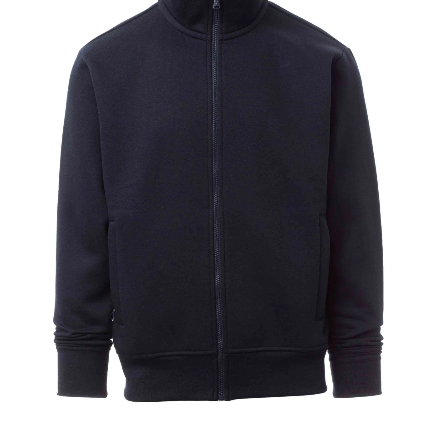 Hanorac pentru bărbați, cu fermoar integral din plastic în aceeași culoare, cu cursor simplu personalizat, mânecă ajustată, două buzunare interioare cu fermoar, bandă elastică la manșete și în talie, cusături întărite, bandă de întăritură în interiorul gulerului în aceeași culoare.