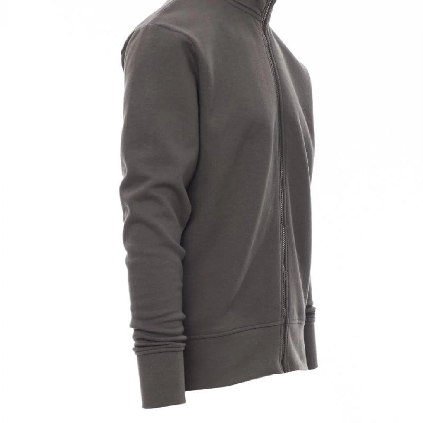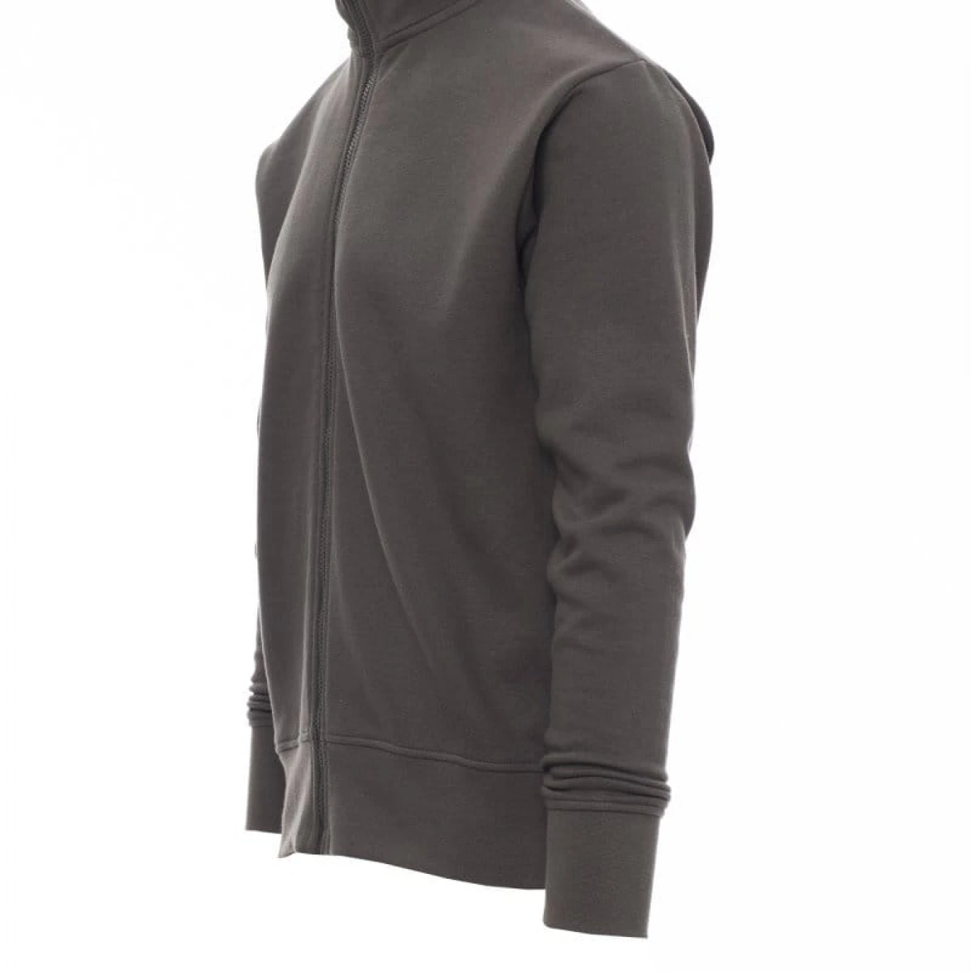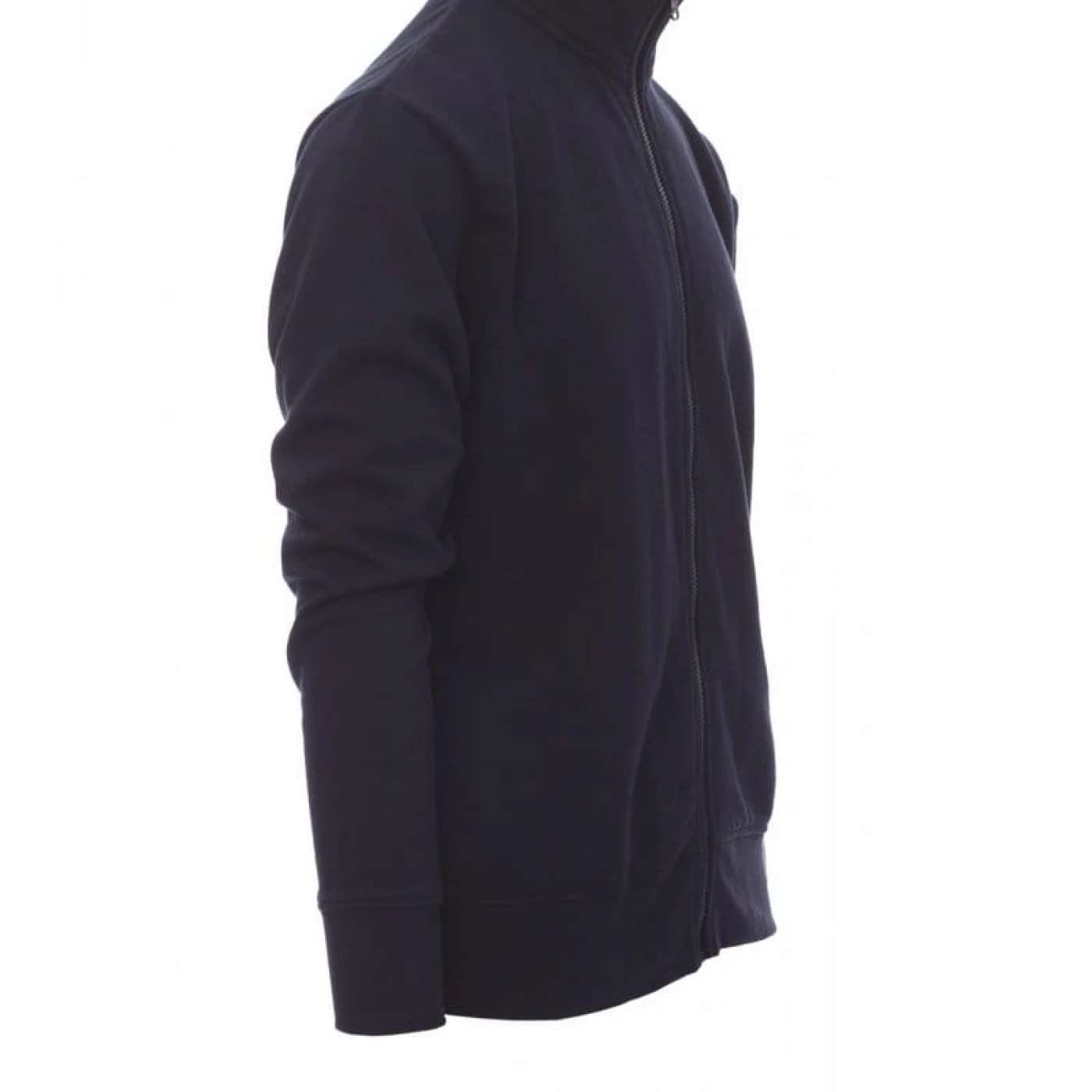Jacheta moderna pentru bărbați cu inchidere integrala cu fermoar din plastic, asortat. Este confectionata dintr-un amestec de poliester si bumbac periat. Beneficiaza de cusaturi intarite, mansete si tiv elastice. \n