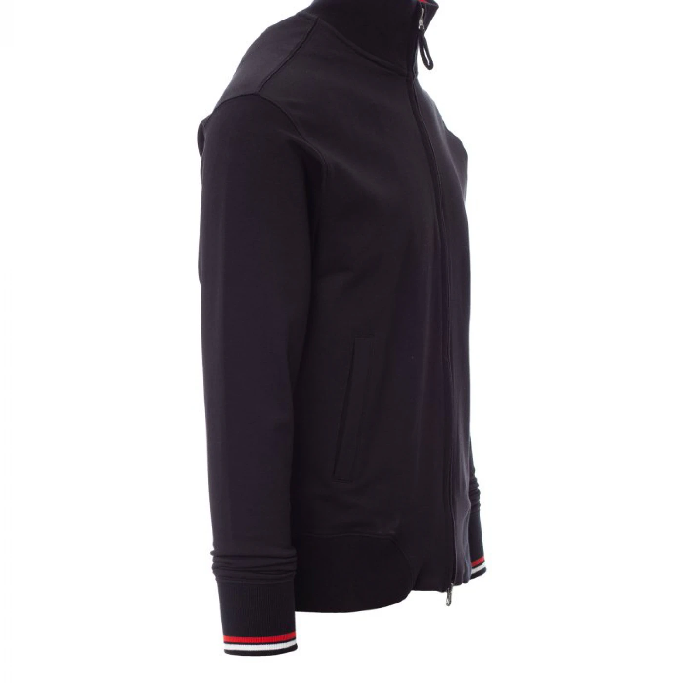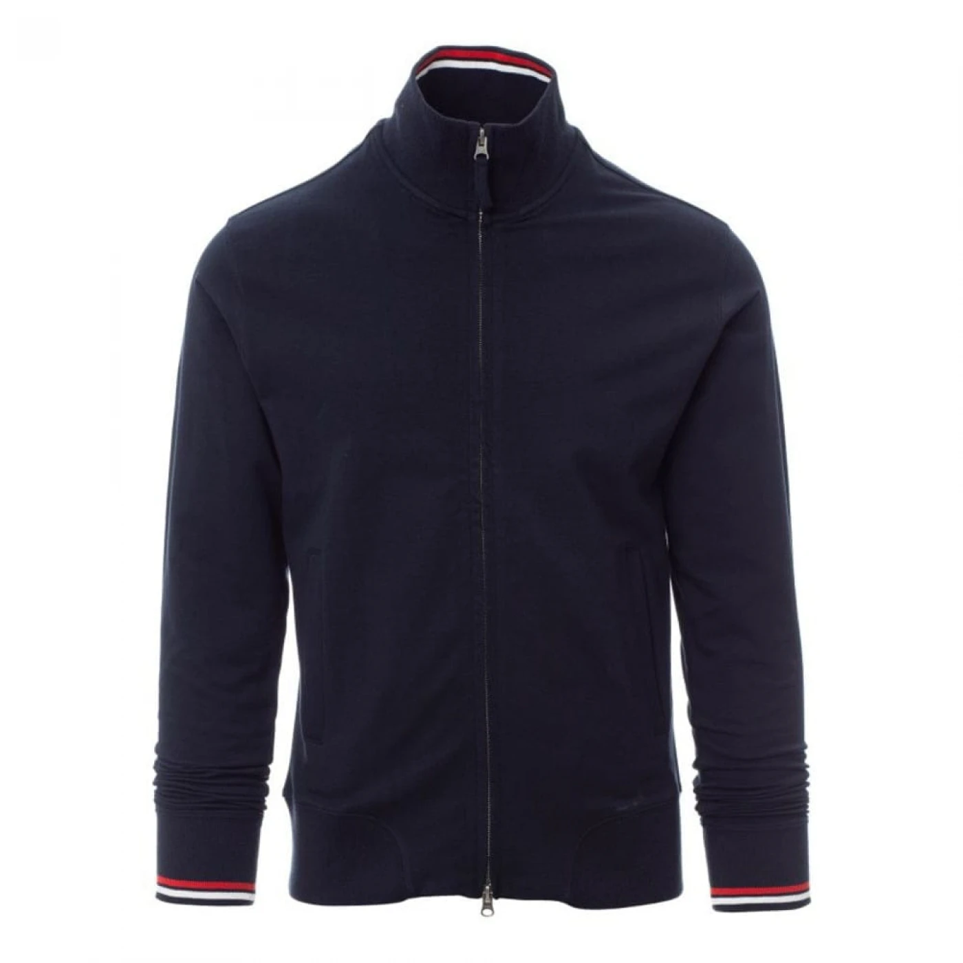Jacheta pentru barbati confectionata dintr-un amestec de 95% bumbac si 5% elastan. Inchiderea frontala se face cu ajutorul unui fermoar lung cu cursor dublu easy zip din metal, acoperit complet. Echipata cu doua buzunare frontale, mansete si guler cu ornamente contrastante. \n \n \n \n