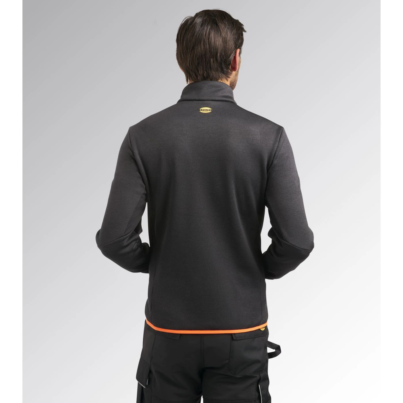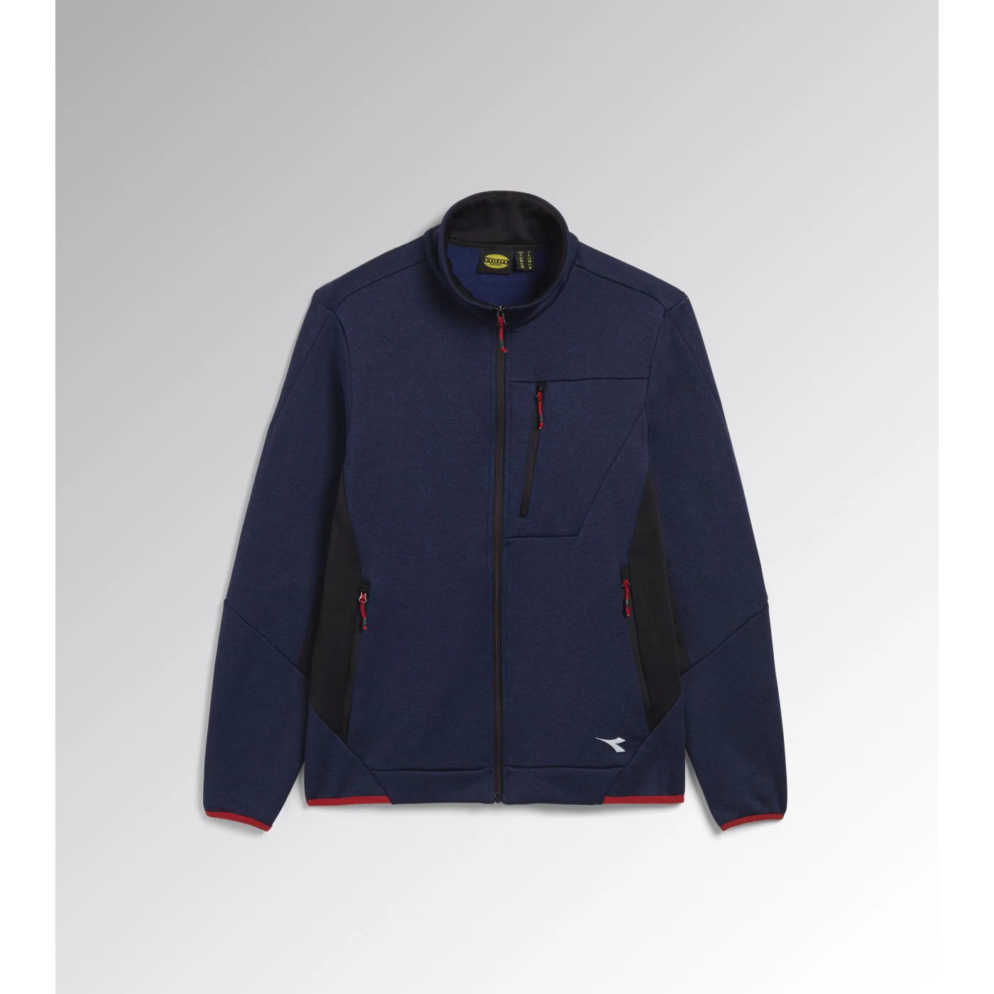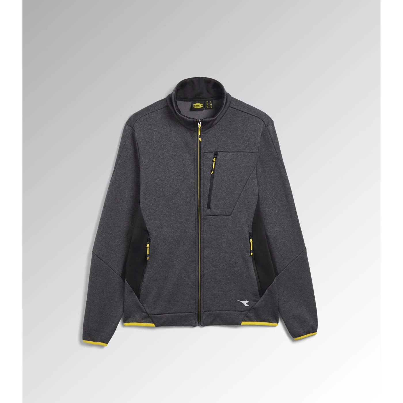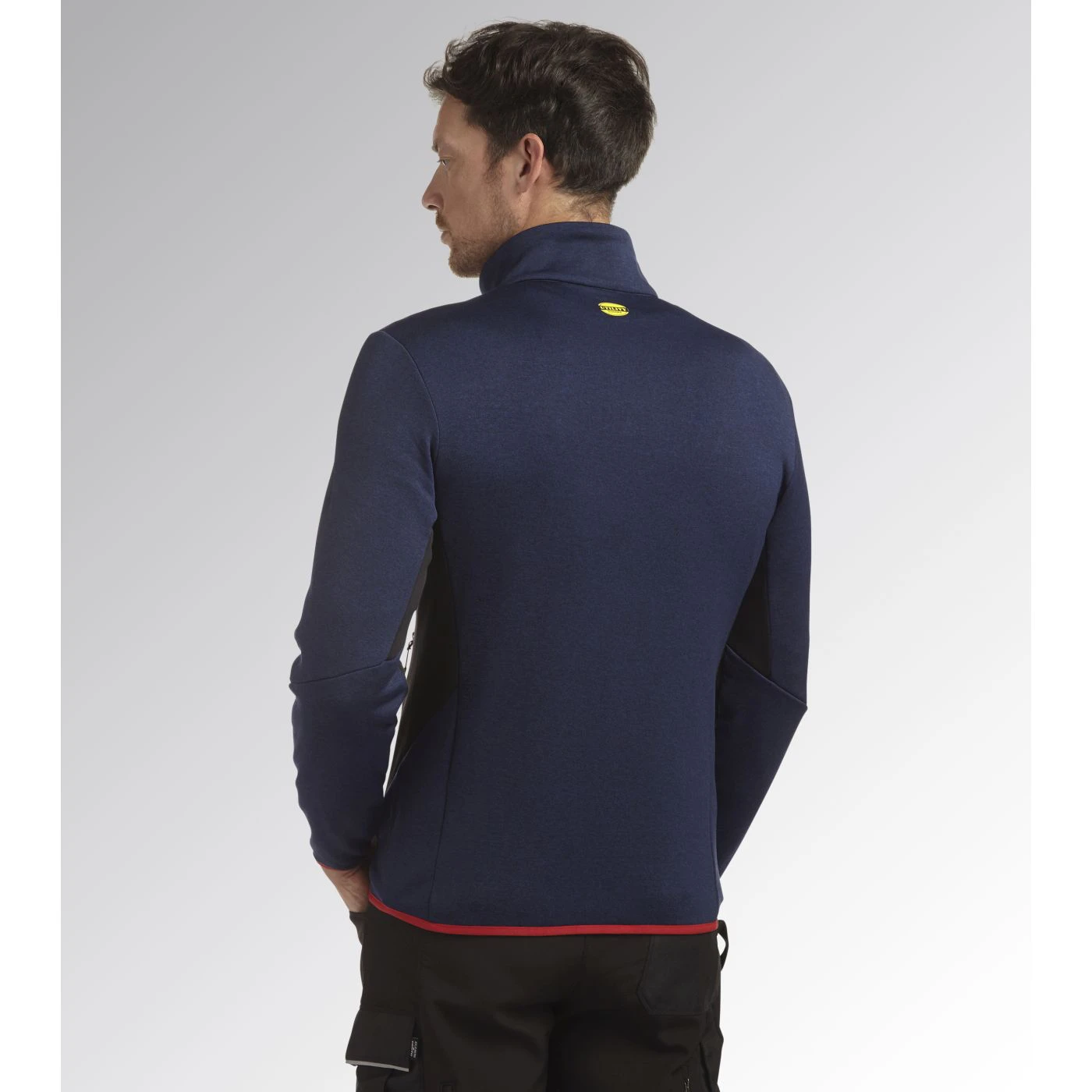 Super-stretchy technical fleece with plain exterior and brushed interior. Ergonomic cut and modern look. Two side pockets and a front pocket with zip. Contrasting-coloured details.