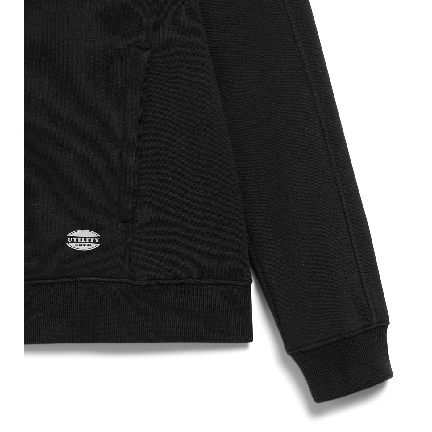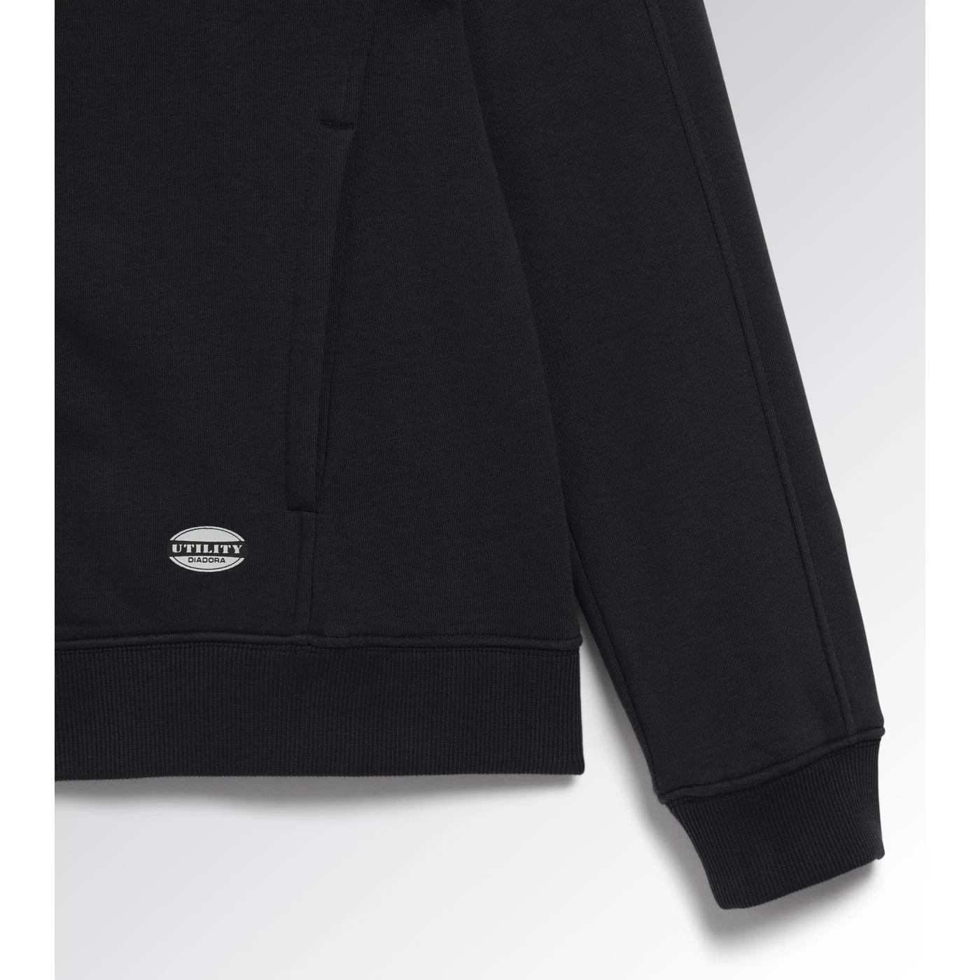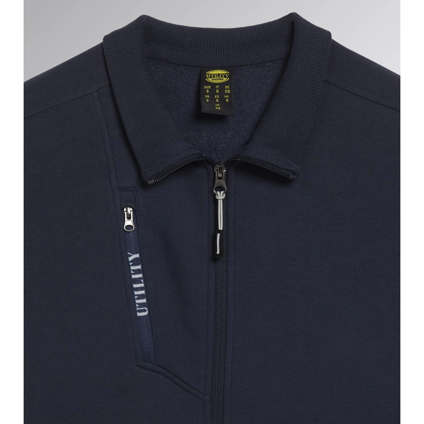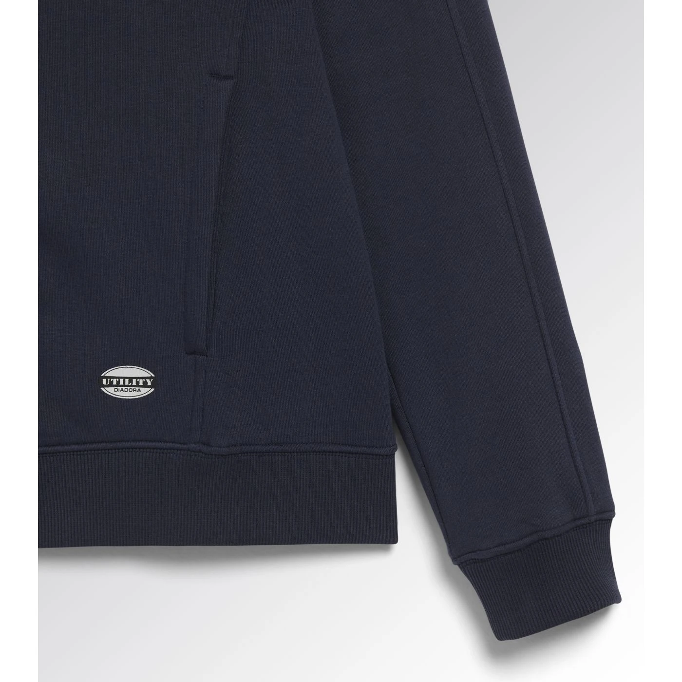 Women’s comfortable slim-fit work sweatshirt in brushed fabric with a full zip. Two open side pockets and a front pocket with zip. Stretch rib-knit neck, cuffs and hem.