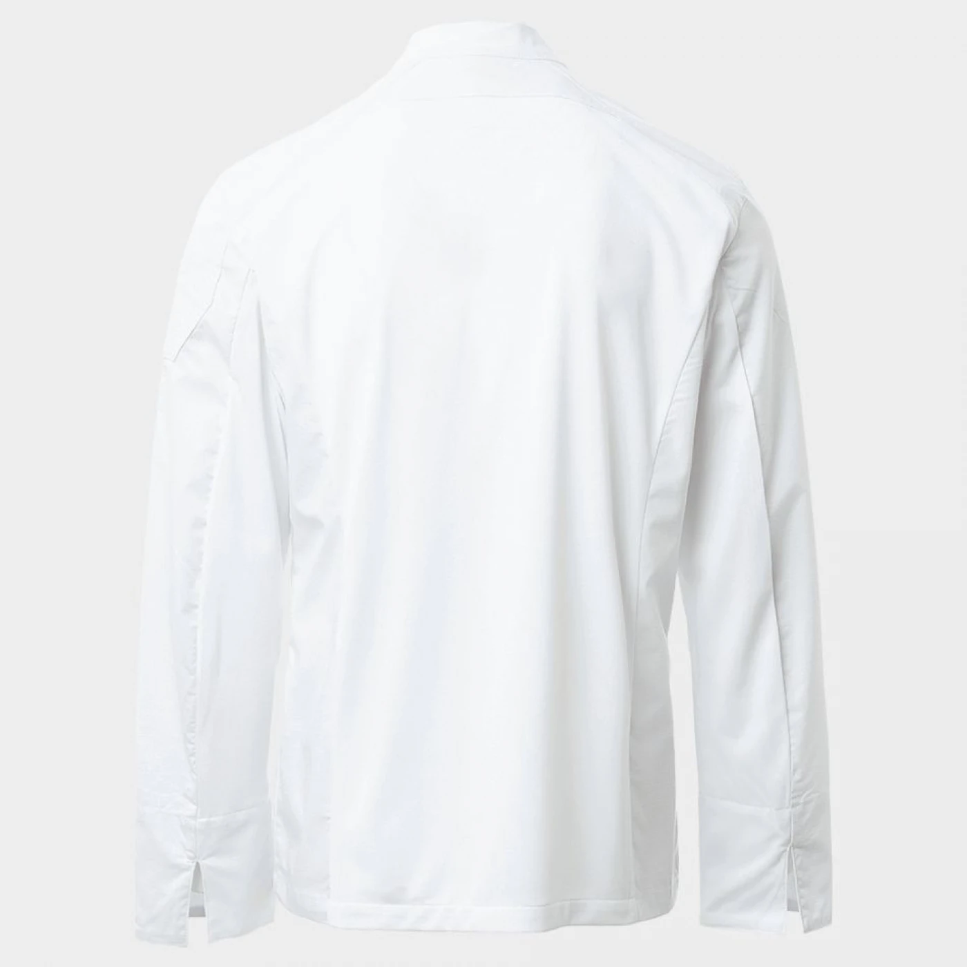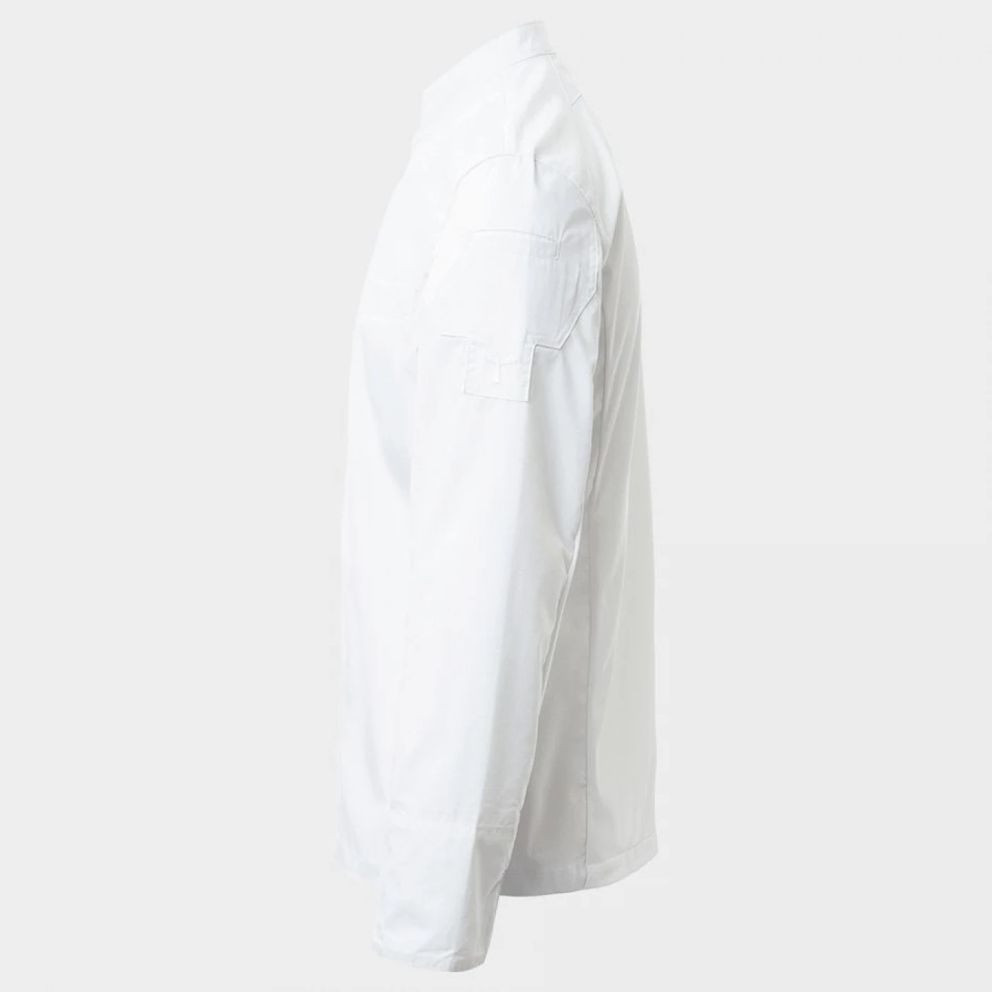 Tunică de bucătari cu guler drept, realizată din bumbac ripstop si Lycra® T400® pentru elasticitate și respirabilitate ridicată.