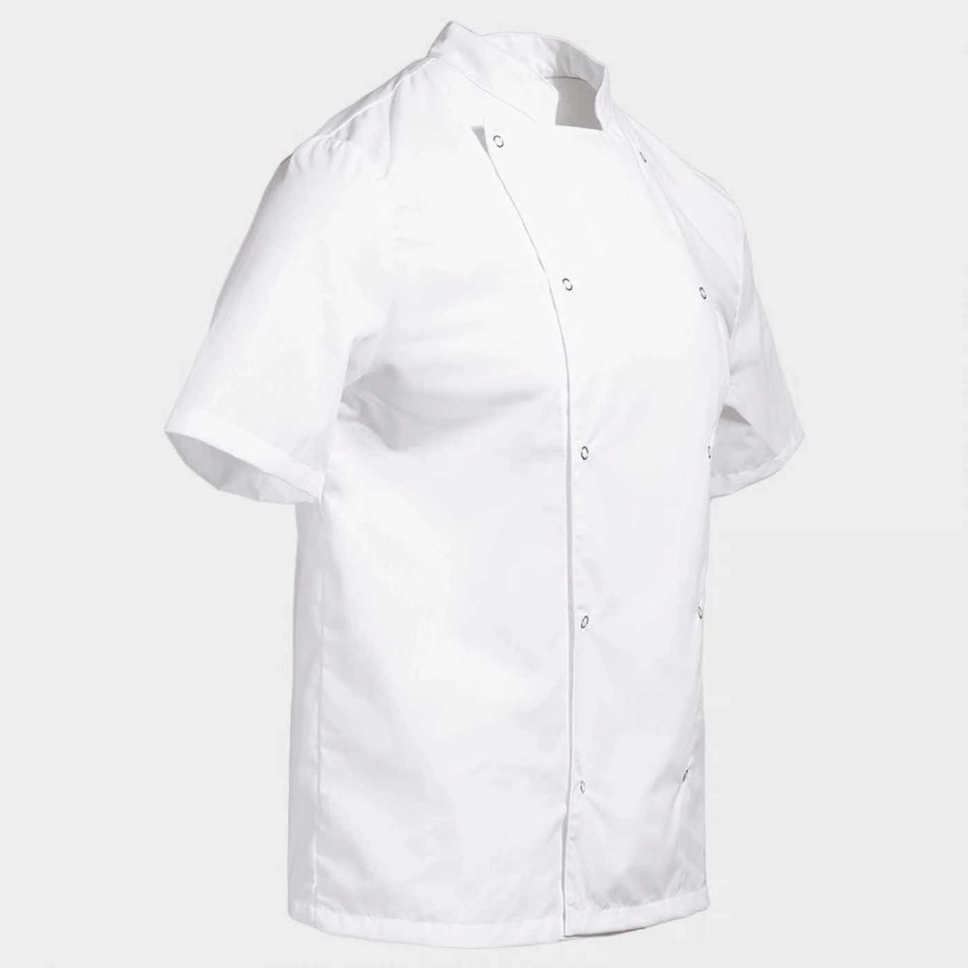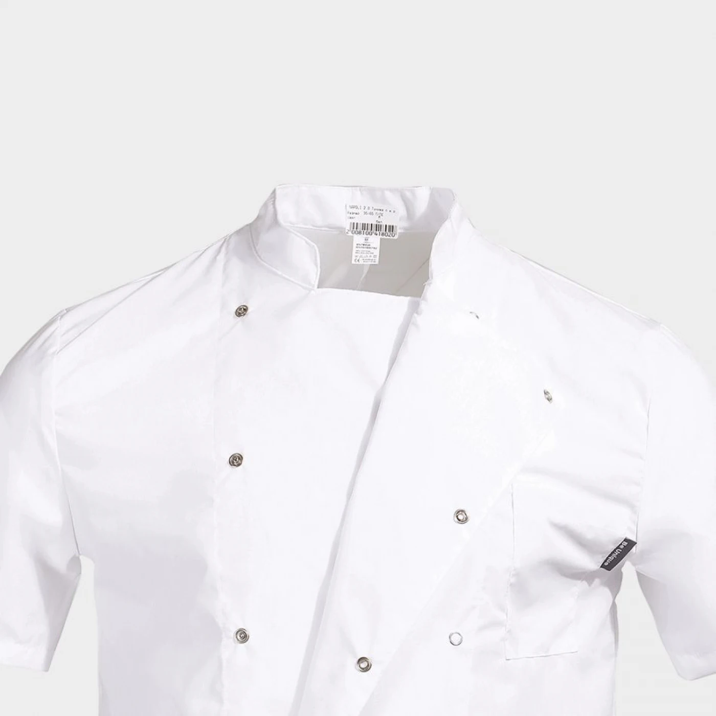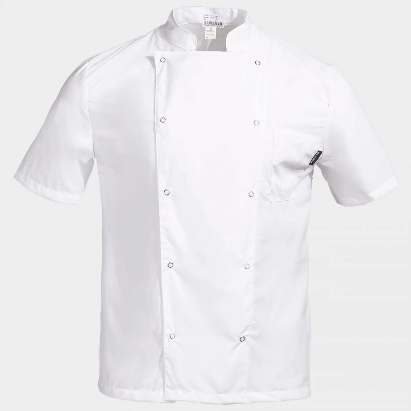 Tunică pentru bucătar cu mânecă scurtă, confecționată dintr-un material respirabil de înaltă calitate. Asigură confort și libertate de mișcare în timpul orelor lungi de lucru. Închidere dublă cu capse și buzunare funcționale pe mânecă. Ușor de întreținut și potrivită pentru utilizare intensivă.