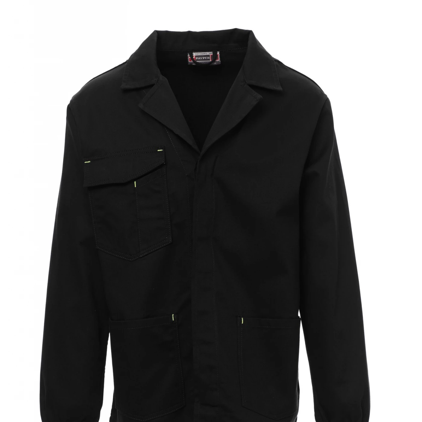 Geacă cu guler deschis, manșete elastice, închidere cu nasturi ascunși, două buzunare aplicate și un buzunar la piept prevăzut cu suport pentru smartphone, suport pentru legitimație, suport pentru pix și clapetă de închidere cu Velcro. \n \n