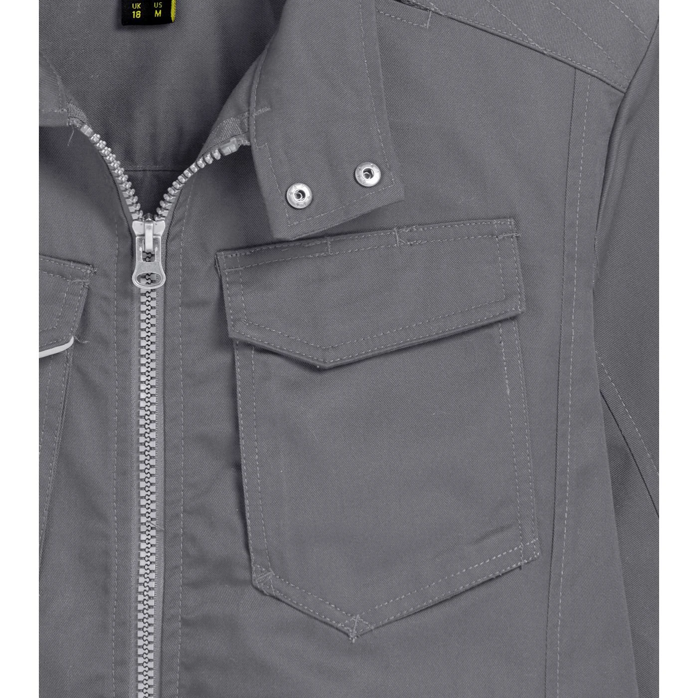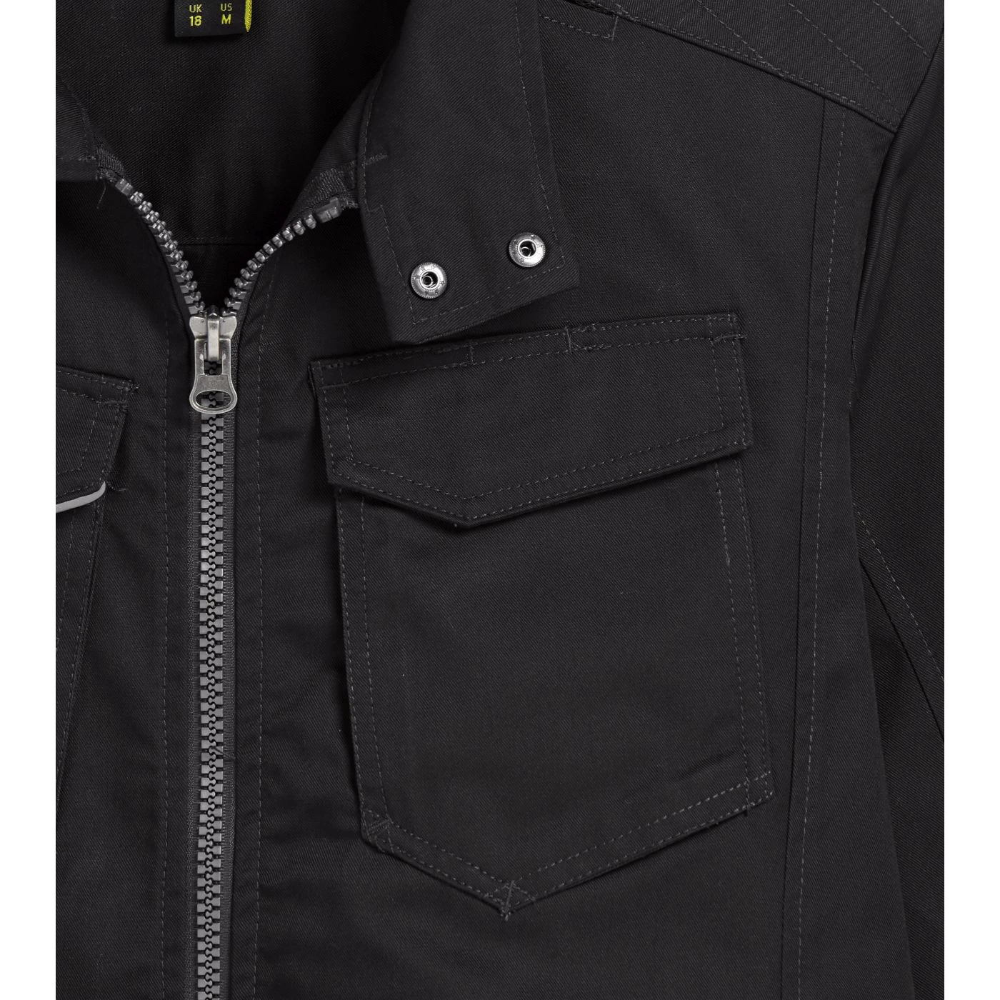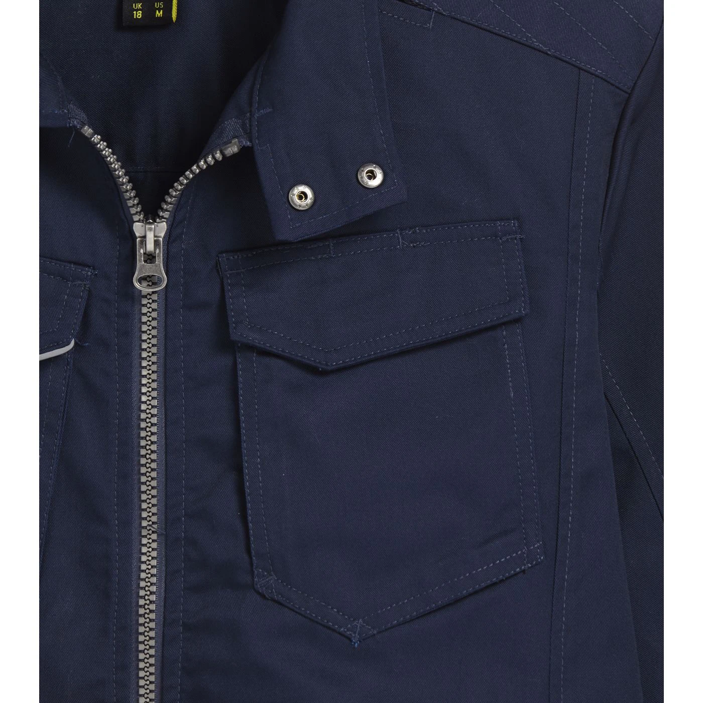 Multi-pocket jacket with Mandarin collar, adjustable waist and cuffs, badge holder, reflective details, zip hand pockets, inside pocket, triple stitching, sleeves with ergonomic cut.