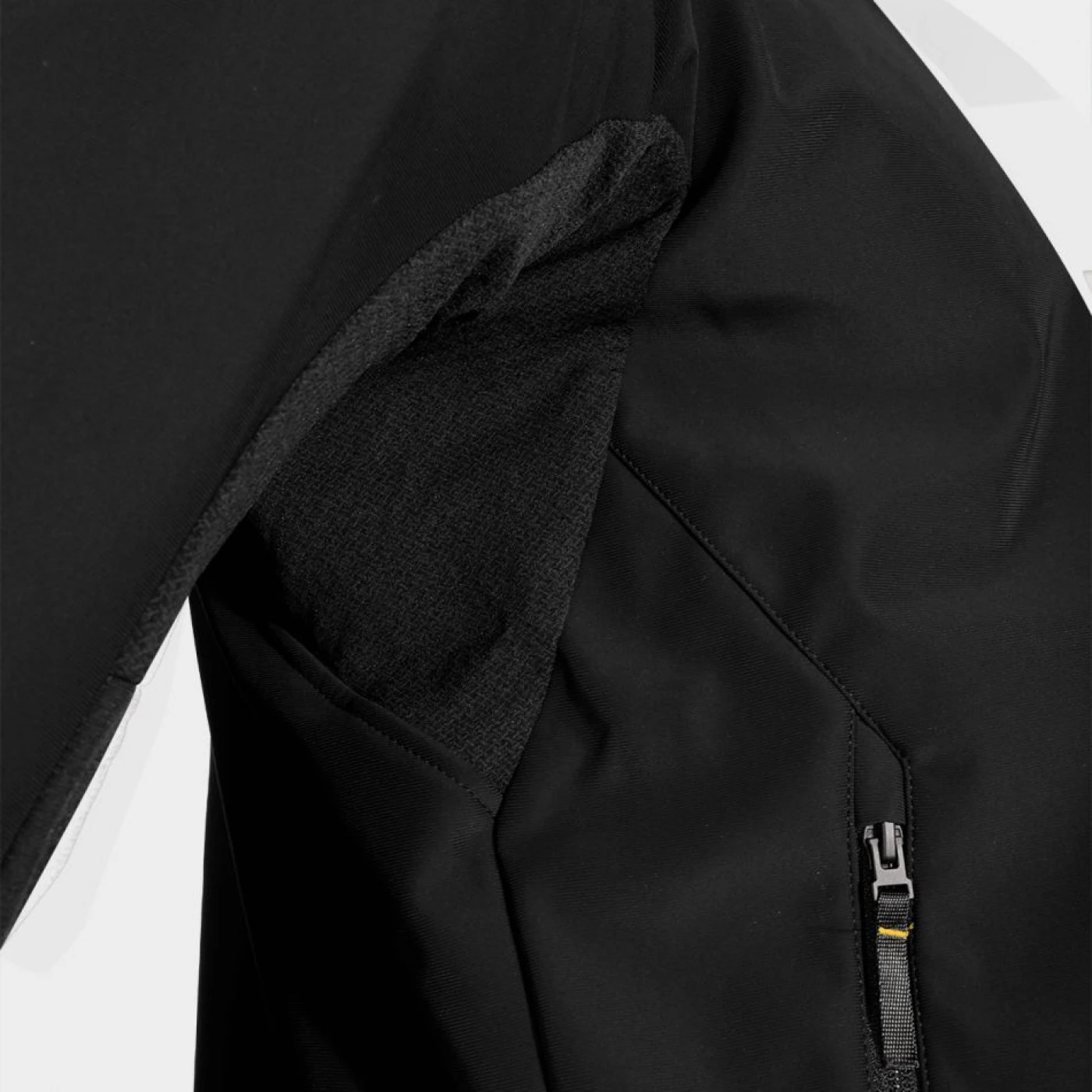 Jachetă elastică softshell din țesături mixte cu tratament impermeabil și croială dreaptă. Glugă ergonomică reglabilă cu fermoar și nasturi. Două buzunare laterale cu fermoar și detalii contrastante, precum și un buzunar frontal cu fermoar contrast, cu marca Utility termosigilată. Mânecile au o margine ripstop pentru o protecție sporită, axile sunt realizate din fleece imprimat pentru o rezistență mai bună la abraziune și o construcție internă din plasă pentru o mai bună respirabilitate. Manșete elastice pentru o potrivire mai confortabilă. MATERIAL: Softshell - 75% poliester, 25% elastan, 350 g/m² + membrană TPU; Inserții - Fleece: 94% poliester, 6% elastan, 280 g/m², elastic Ripstop: 90% poliamidă, 10% elastan
