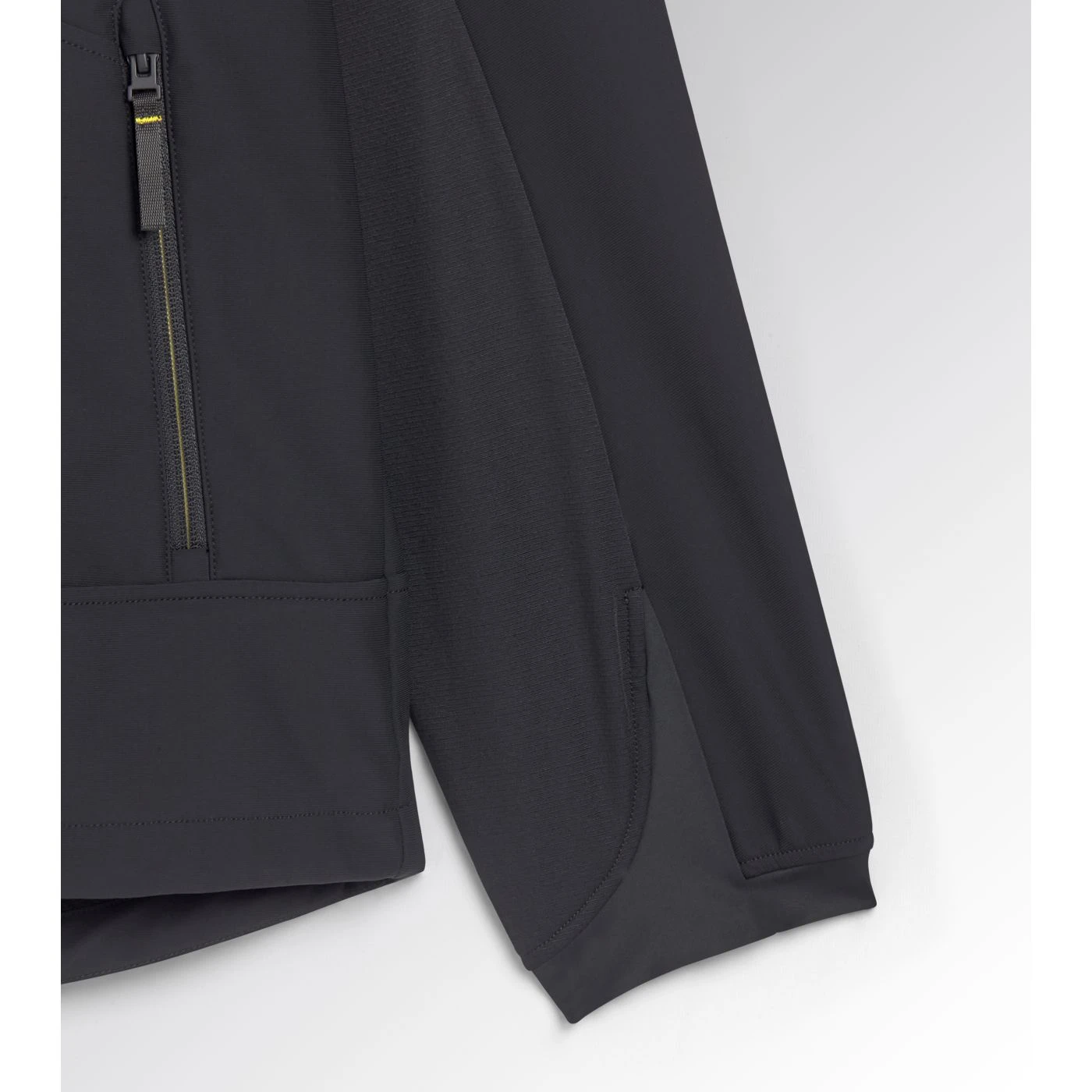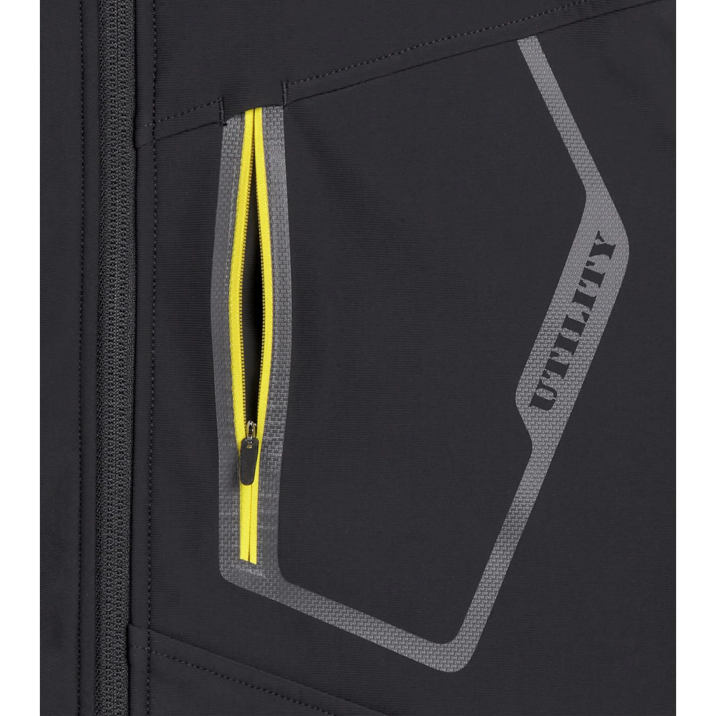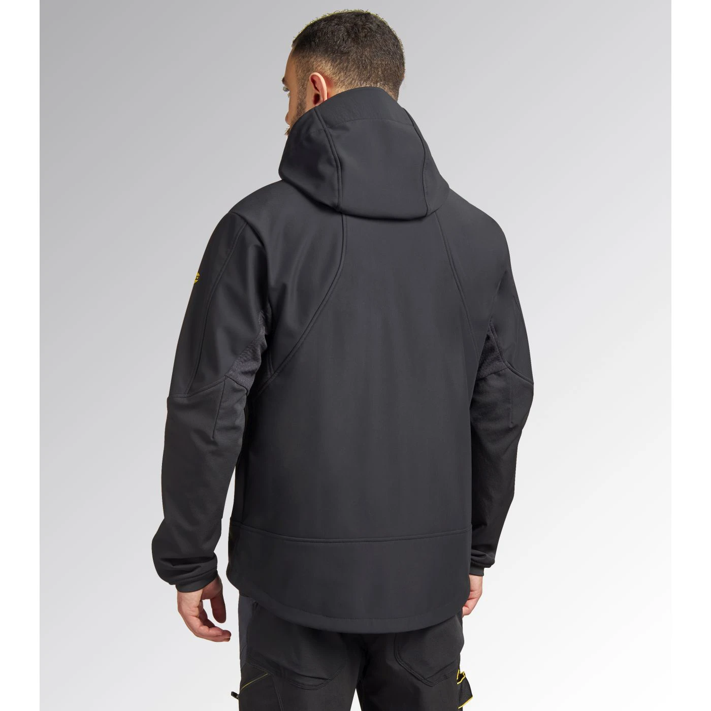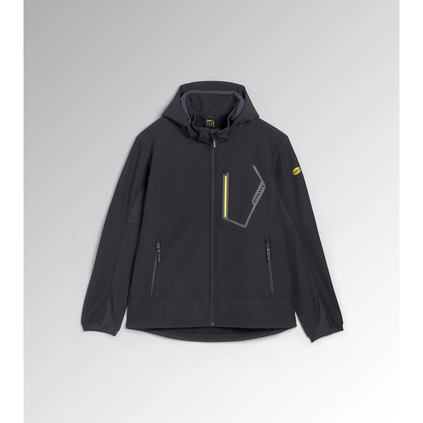 Stretchy mixed-material softshell jacket with water-resistant treatment. Zip-off ergonomic hood with press-stud buttons, triple regulation and a shaped front. Two zipped side pockets with contrasting details and one front pocket with contrasting zip and a heat-sealed Utility-branded print. Chin guard with branded inner print. Sleeves with Ripstop trim for increased protection, fleece underarms with a pigment print for better abrasion resistance, with an inner grid construction to guarantee increased breathability, and shaped stretch fabric cuffs. Shaped hem at the back. Regular fit.