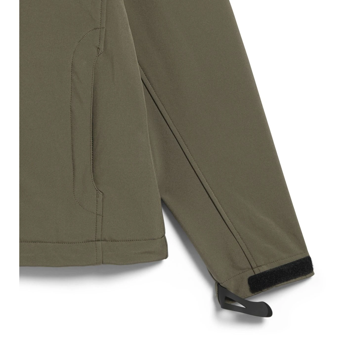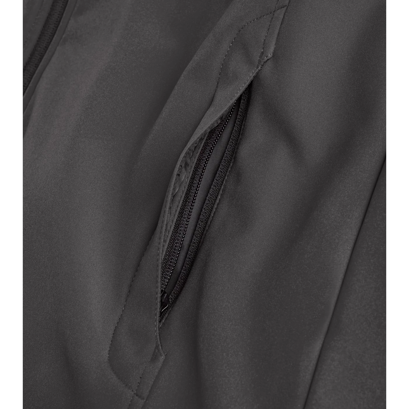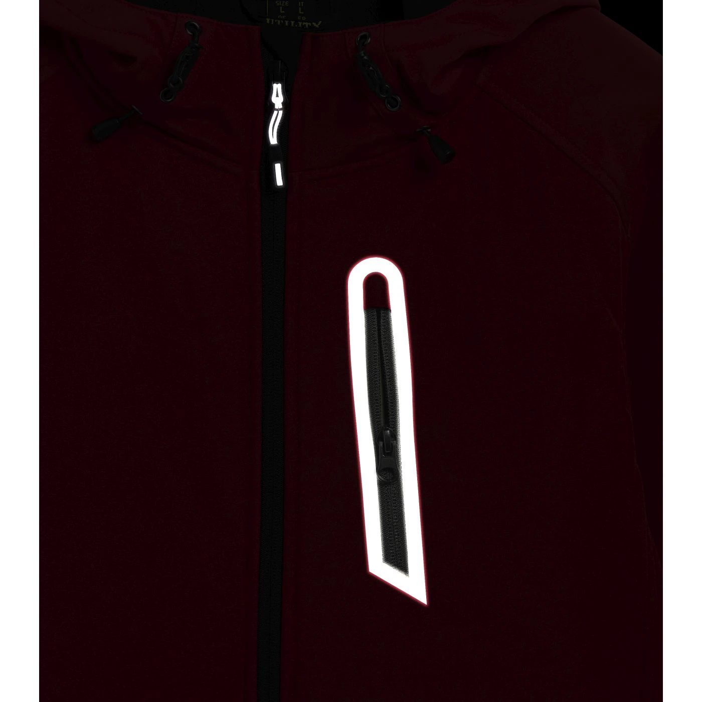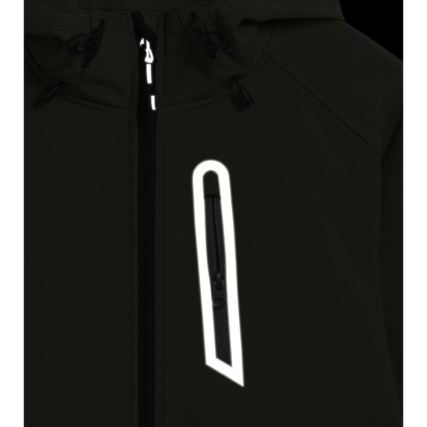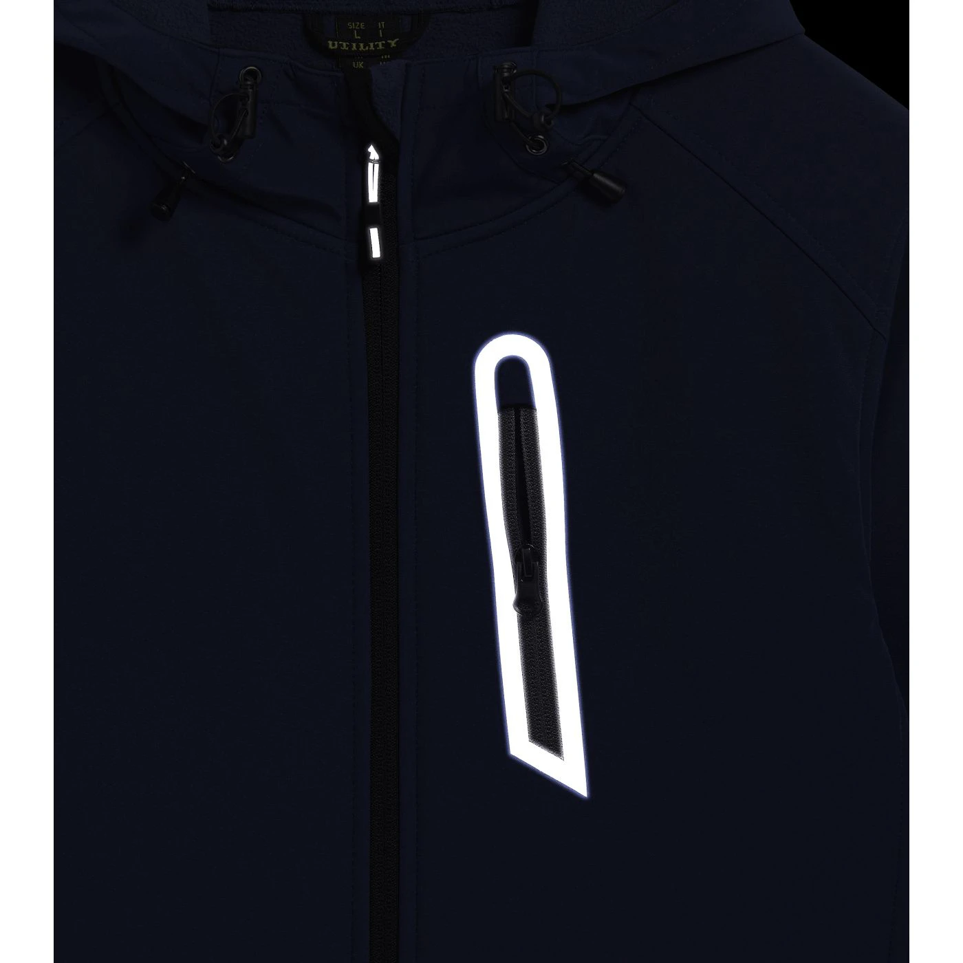 Softshell jacket, 3 zip front pockets with one chest pocket, reflective details, adjustable hood. Adjustable cuffs.