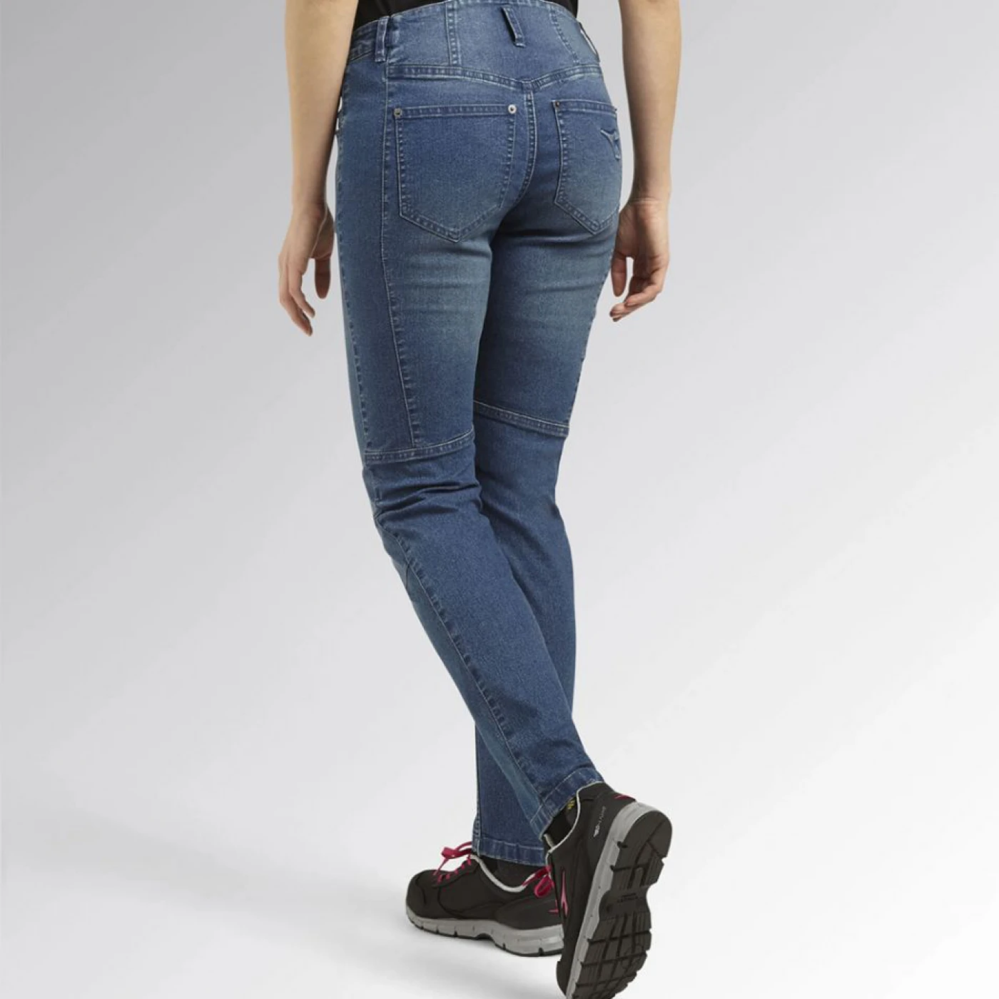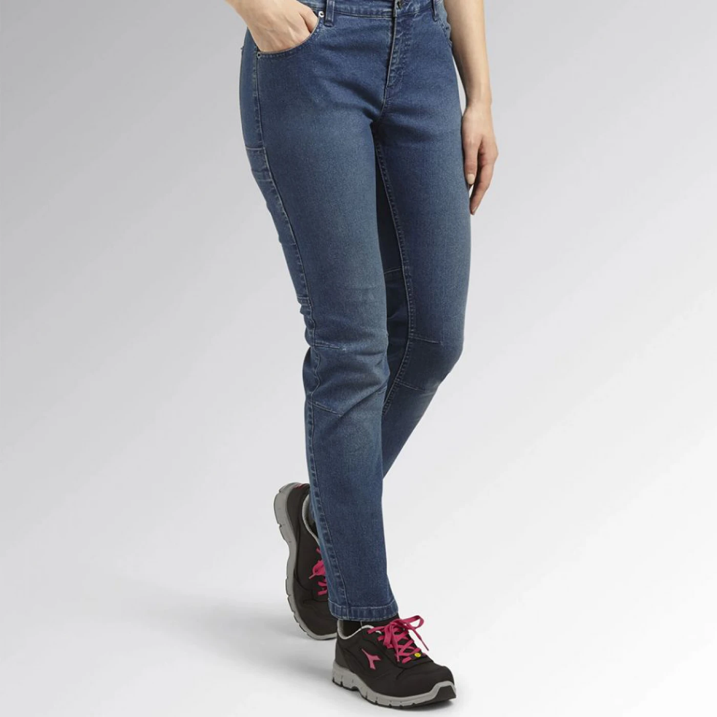 • Pantaloni de lucru din denim elastic cu 6 buzunare pentru femei.