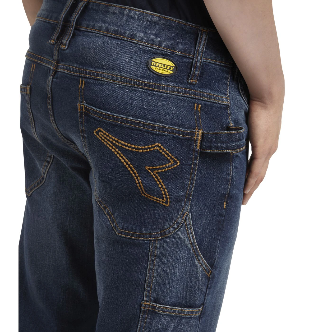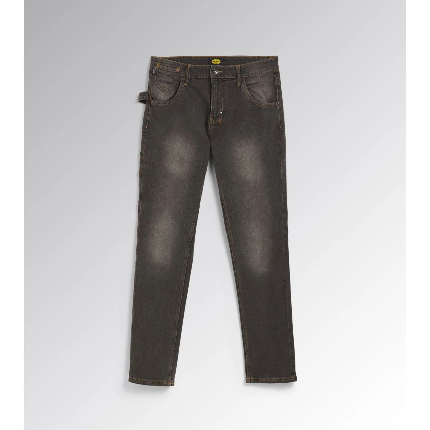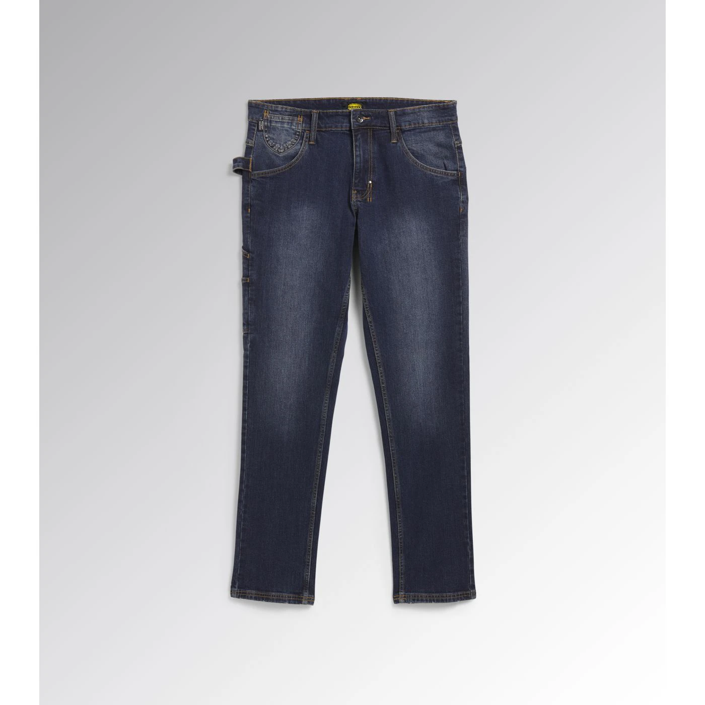 Stonewashed stretch denim trousers. Fabric treatments and attention to detail typical of Italian jeans design. Hammer holder, ruler pocket.