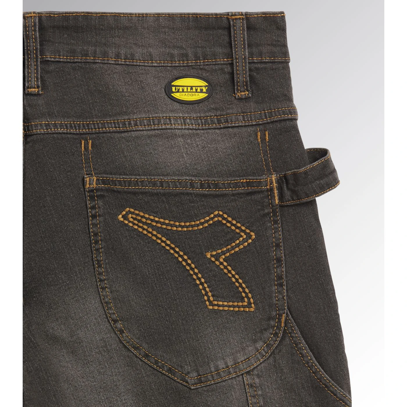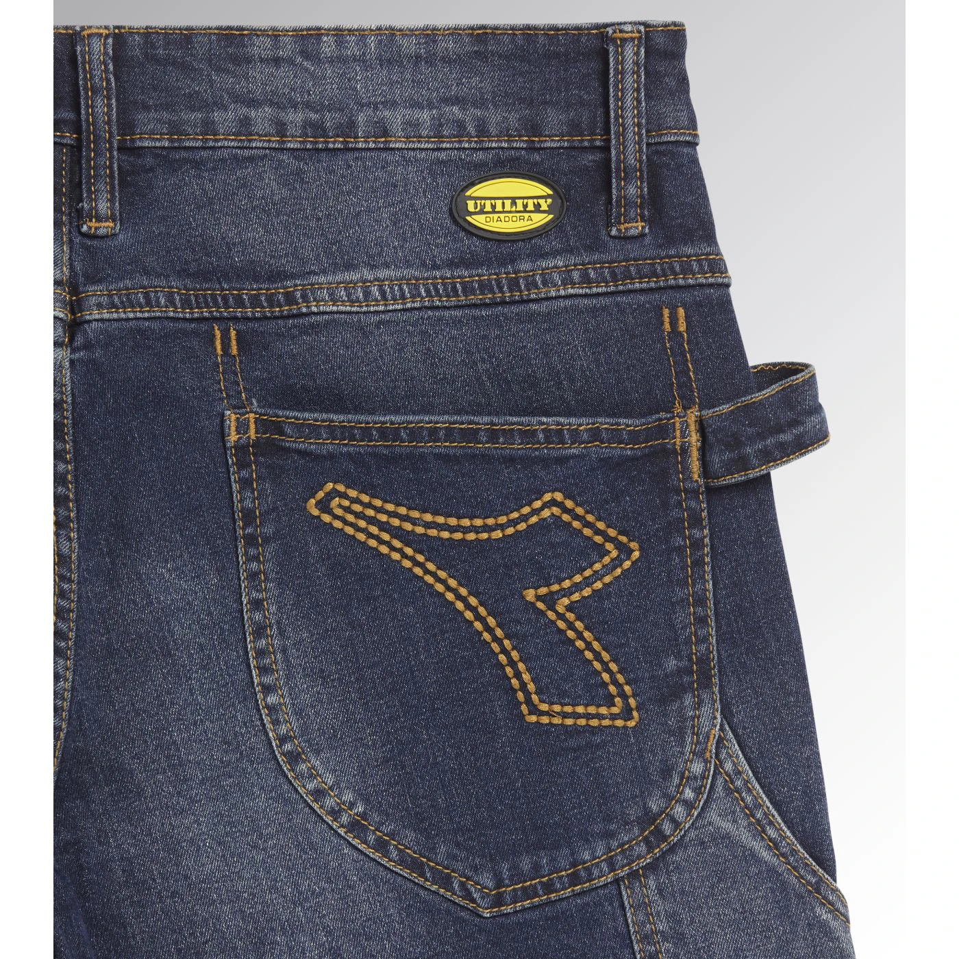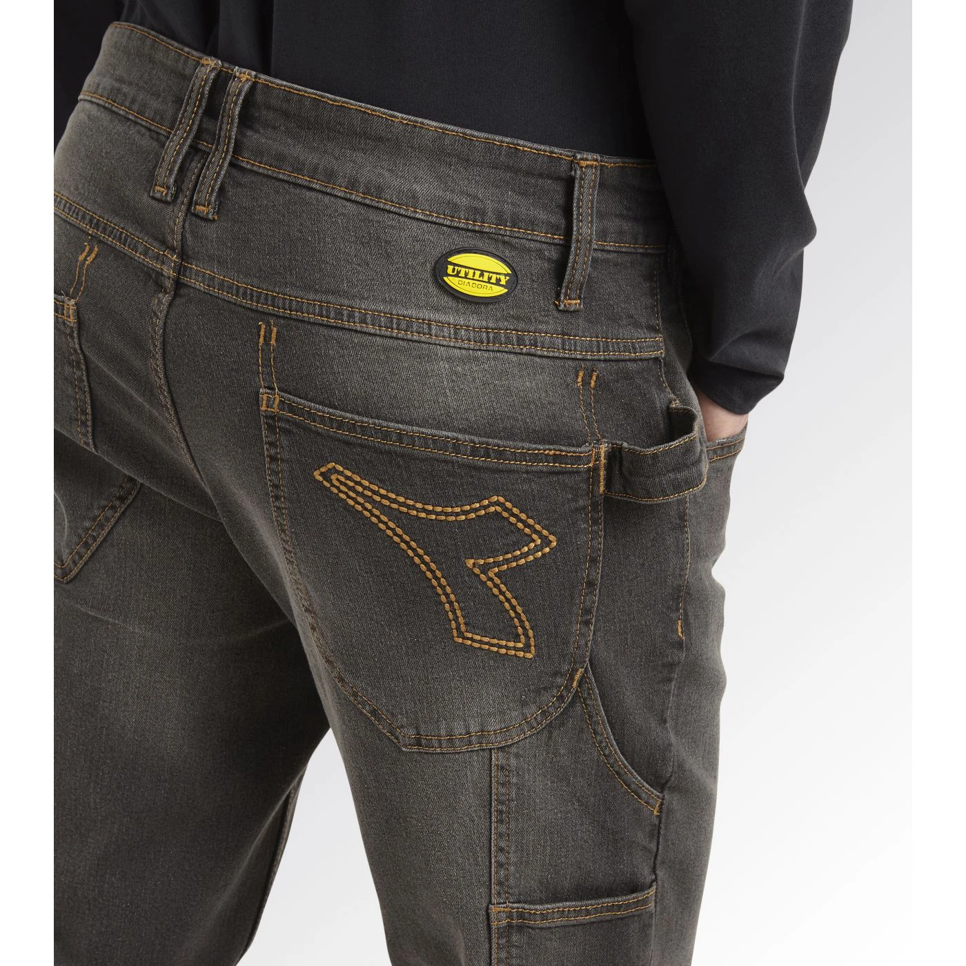 Stonewashed stretch denim trousers. Fabric treatments and attention to detail typical of Italian jeans design. Hammer holder, ruler pocket.