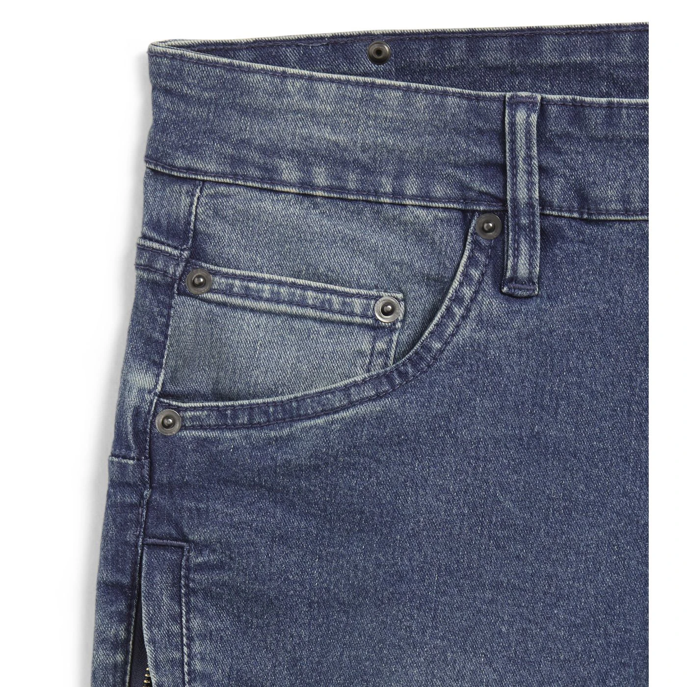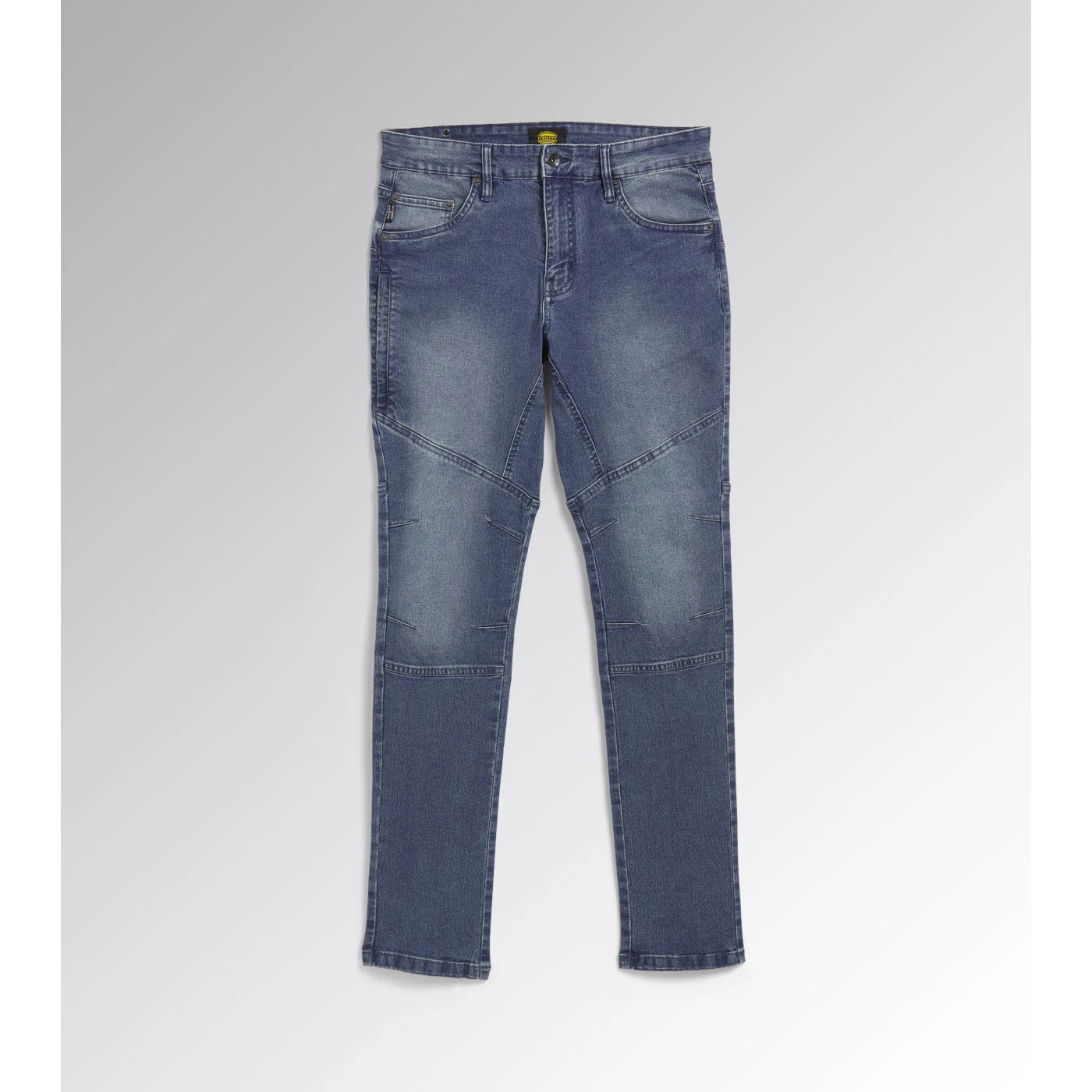 Denim trousers with 6 pockets, including one zipped side pocket. Stonewashed, stretch, fabric treatments and attention to detail typical of Italian jeans design. Gusset on the crotch to enable greater comfort. Pleats on knees for improved ergonomics.
