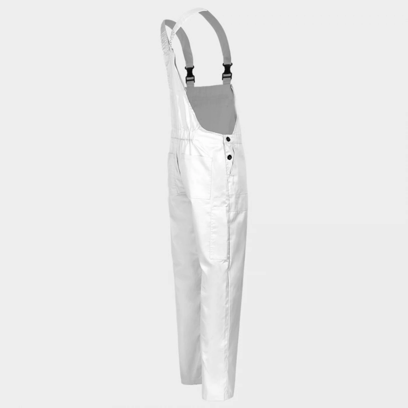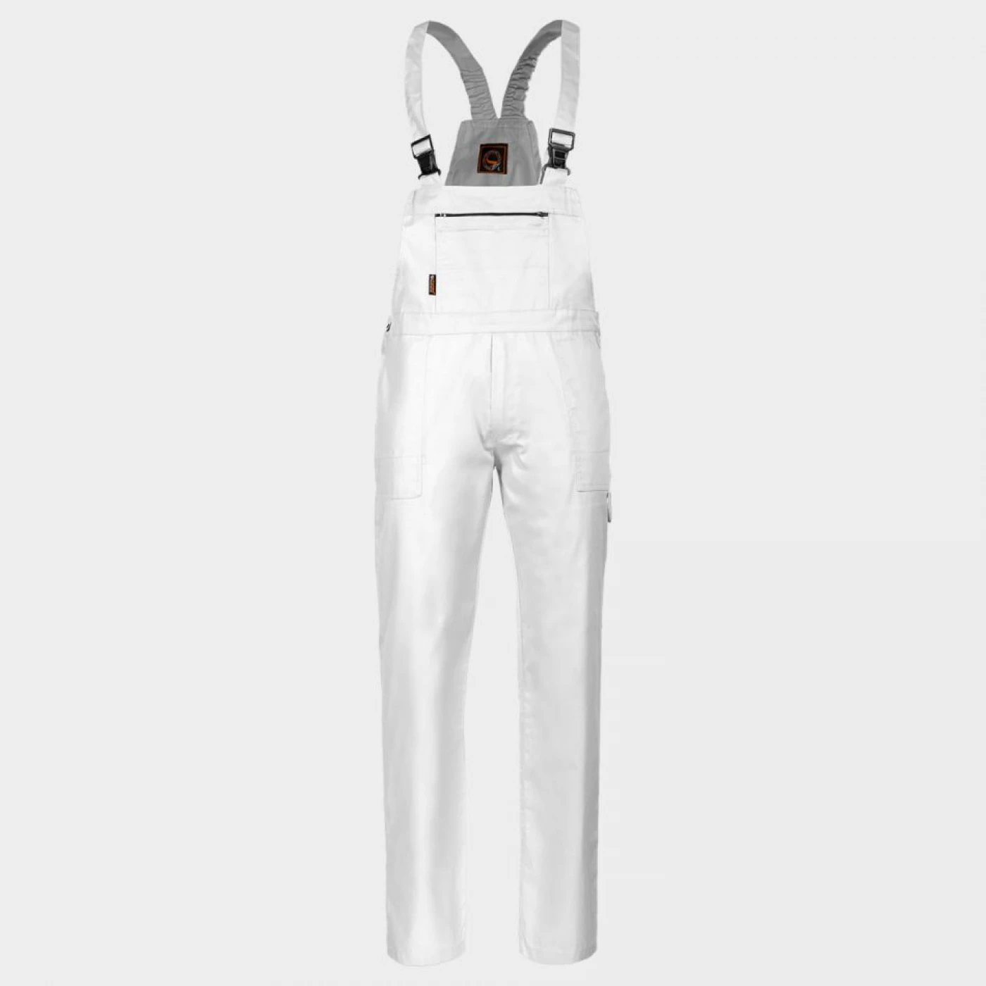 Pantaloni de salopete PLUTONN T/C ALB / Stenso / Pantaloni salopeta cu pieptar
