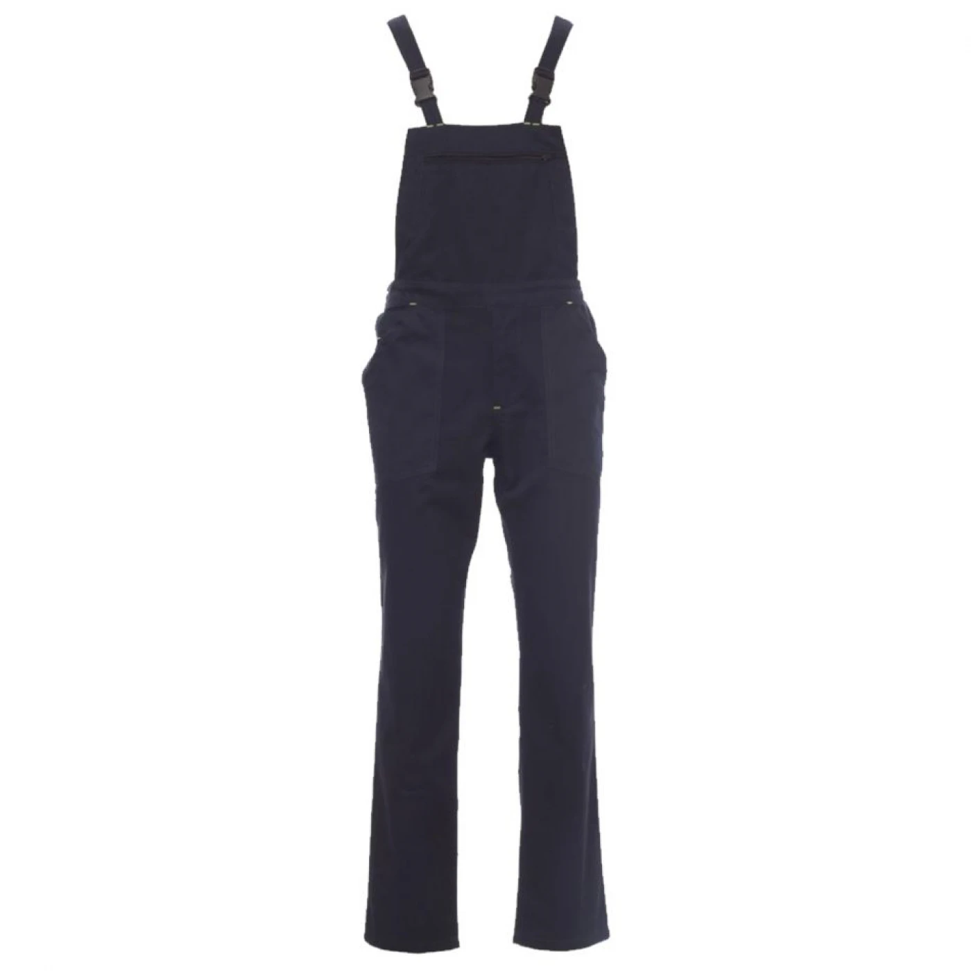 Salopetă cu protecție renală amplă, bretele elastice și cataramă cu fixare rapidă, deschidere laterală cu nasturi și închidere a clapei cu fermoar, bandă elastică în talie. Cusătură dublă în zona șlițului și în interiorul piciorului. Buzunar pe piept cu suport ecuson și închidere cu fermoar, două buzunare frontale și buzunar pentru pix, buzunar pe partea dreaptă dedicat ruletei de măsurat și un buzunar spate cu clapă de închidere și velcro.