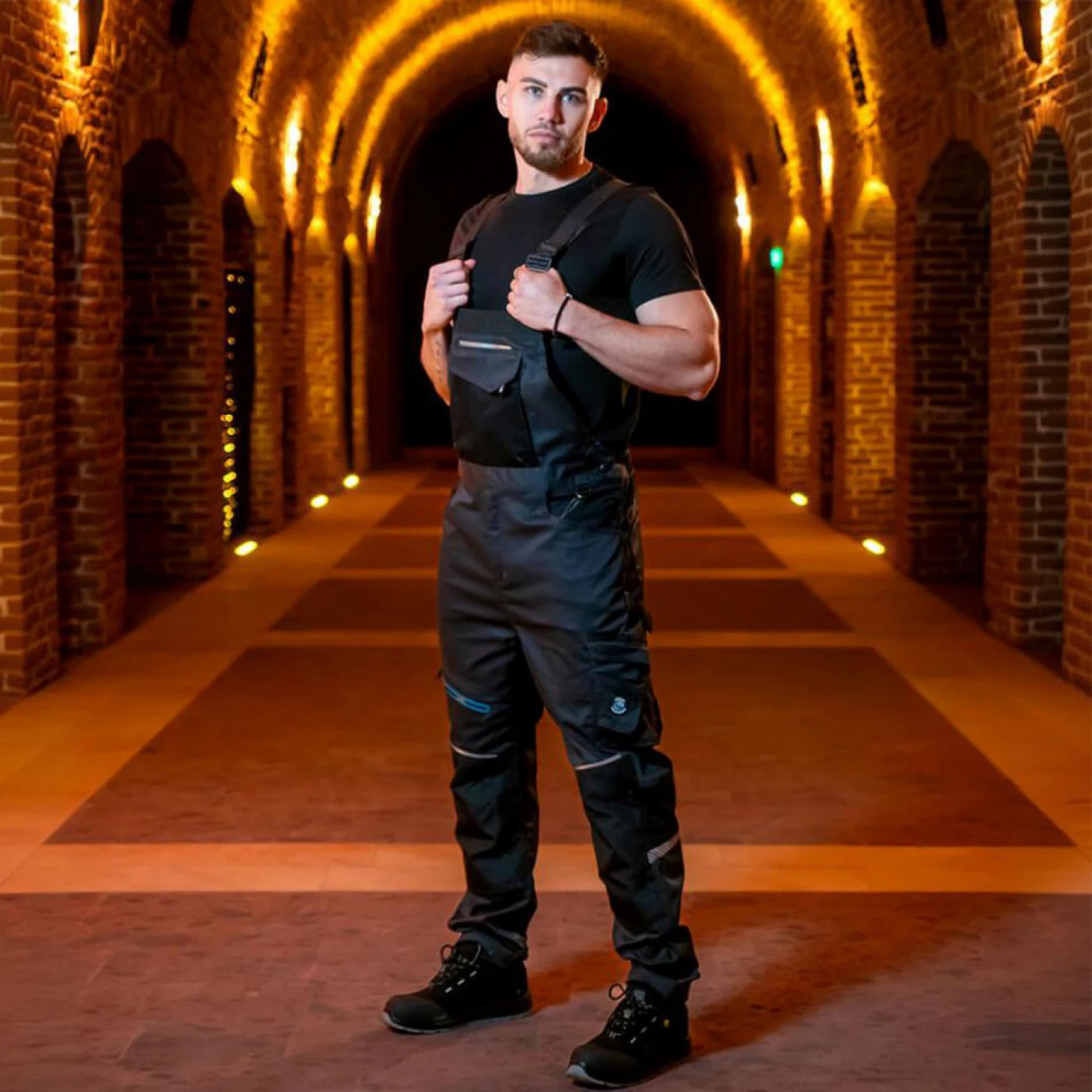 Salopetă de lucru multifuncțională cu cusături triple și elasticitate bună;