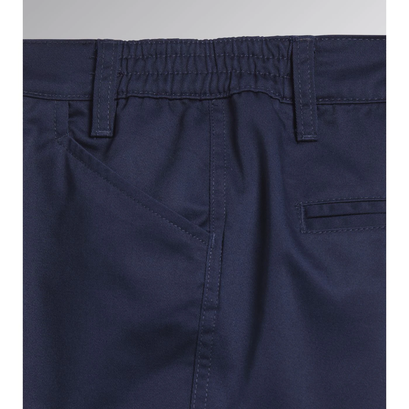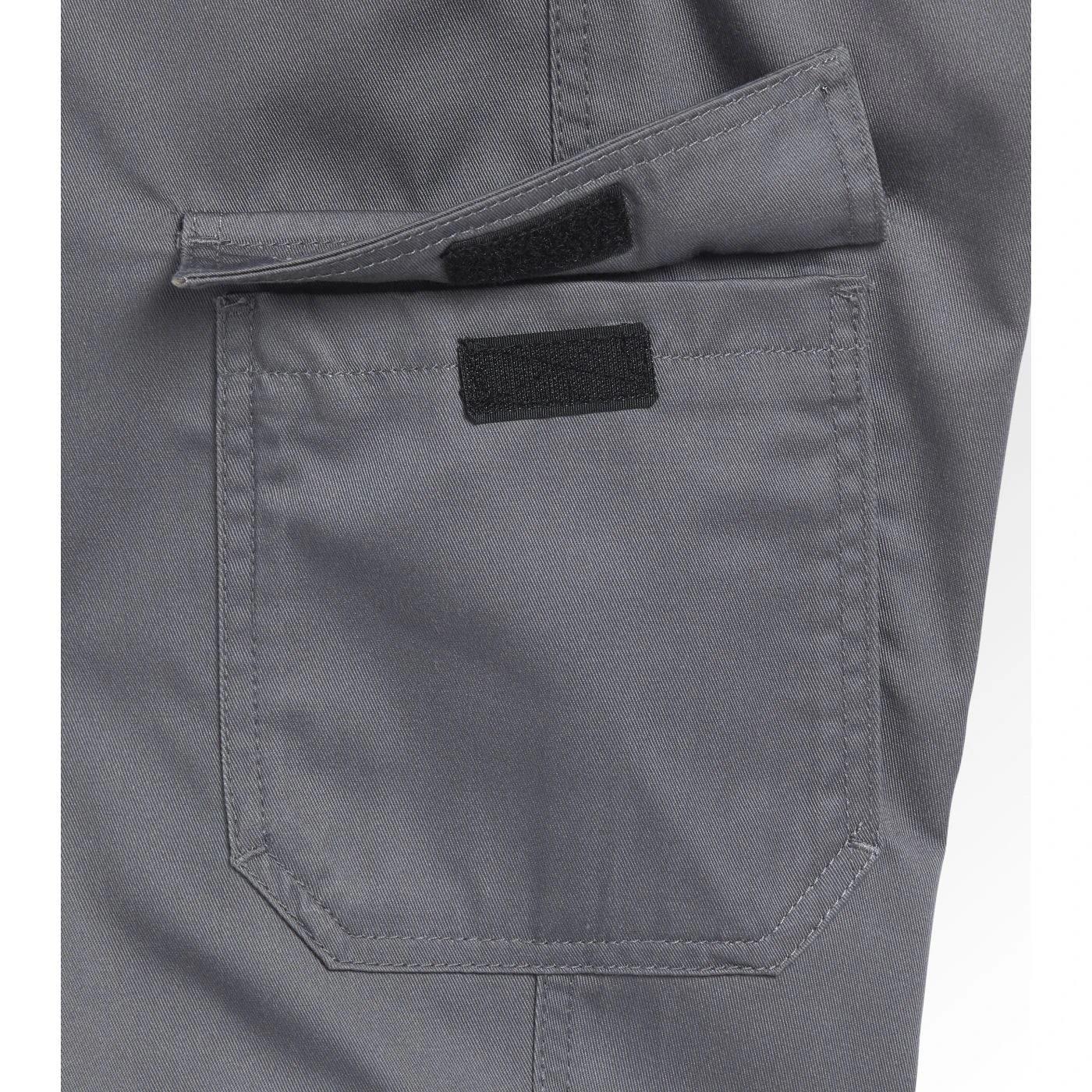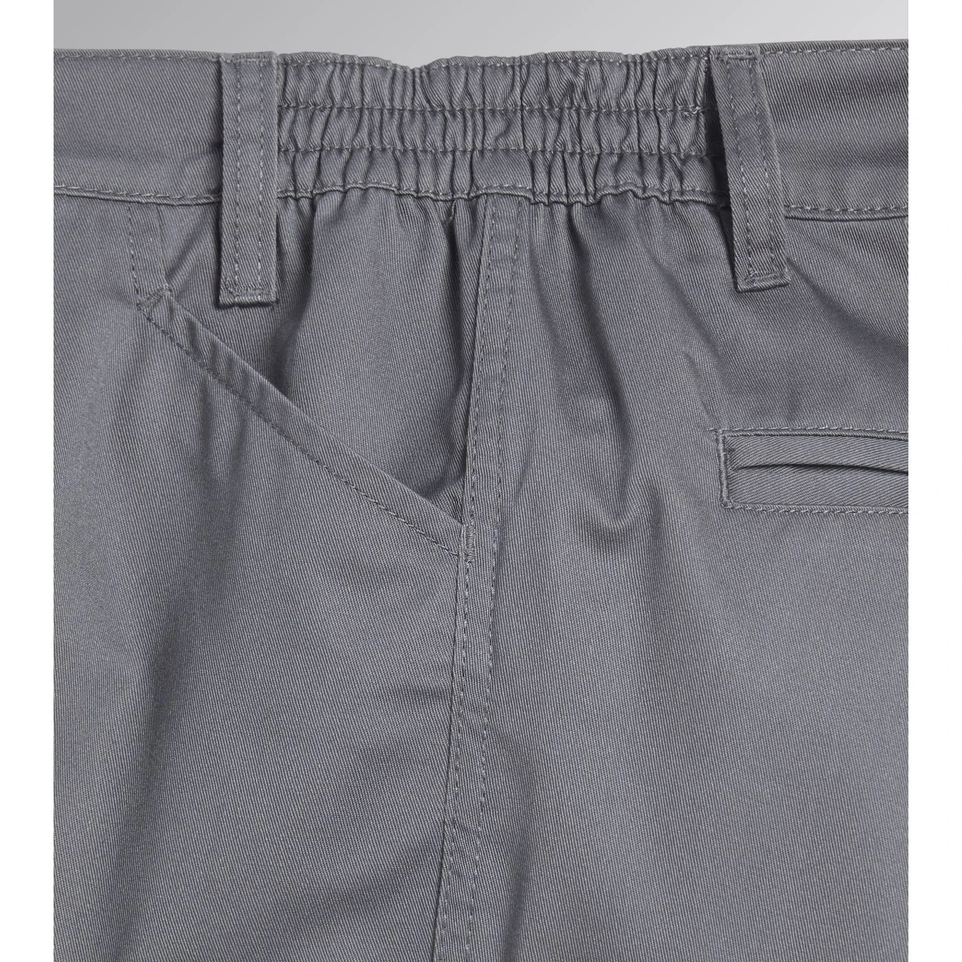 Utility trousers, pockets on both sides, ruler holder, elasticated waist, double stitching.