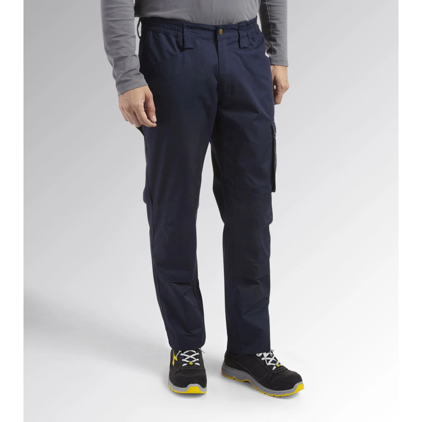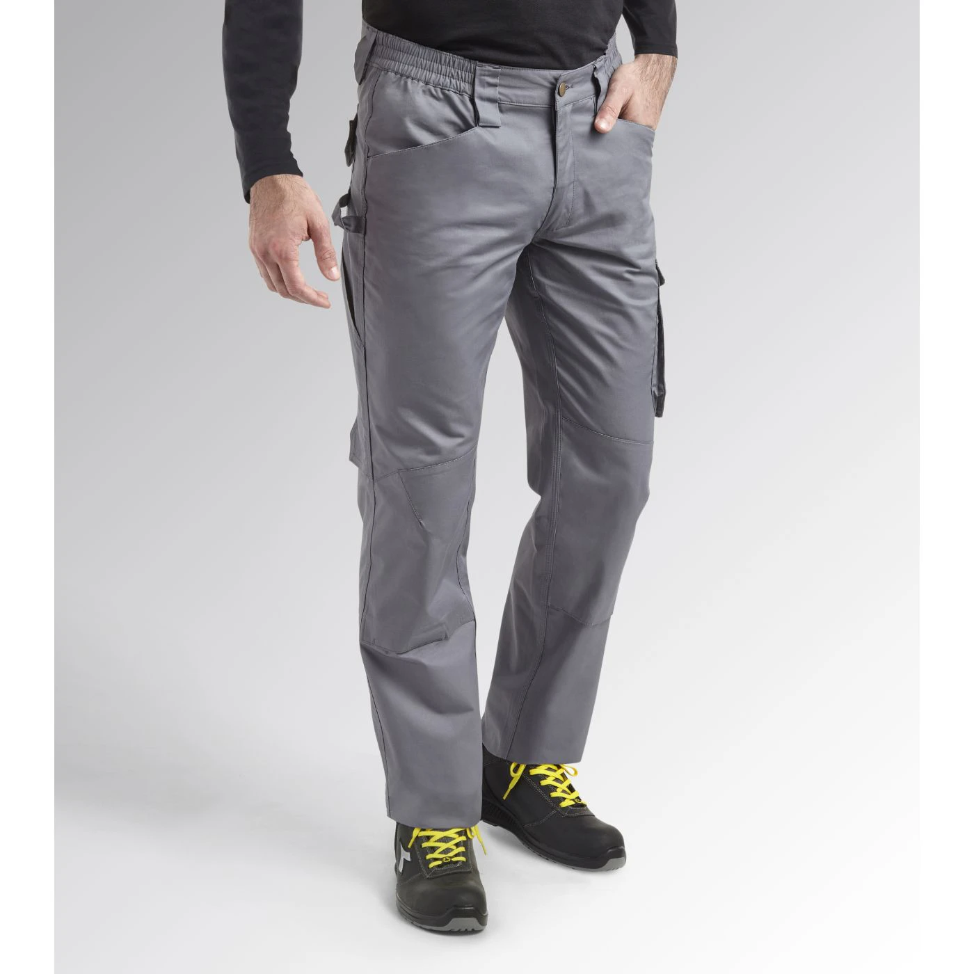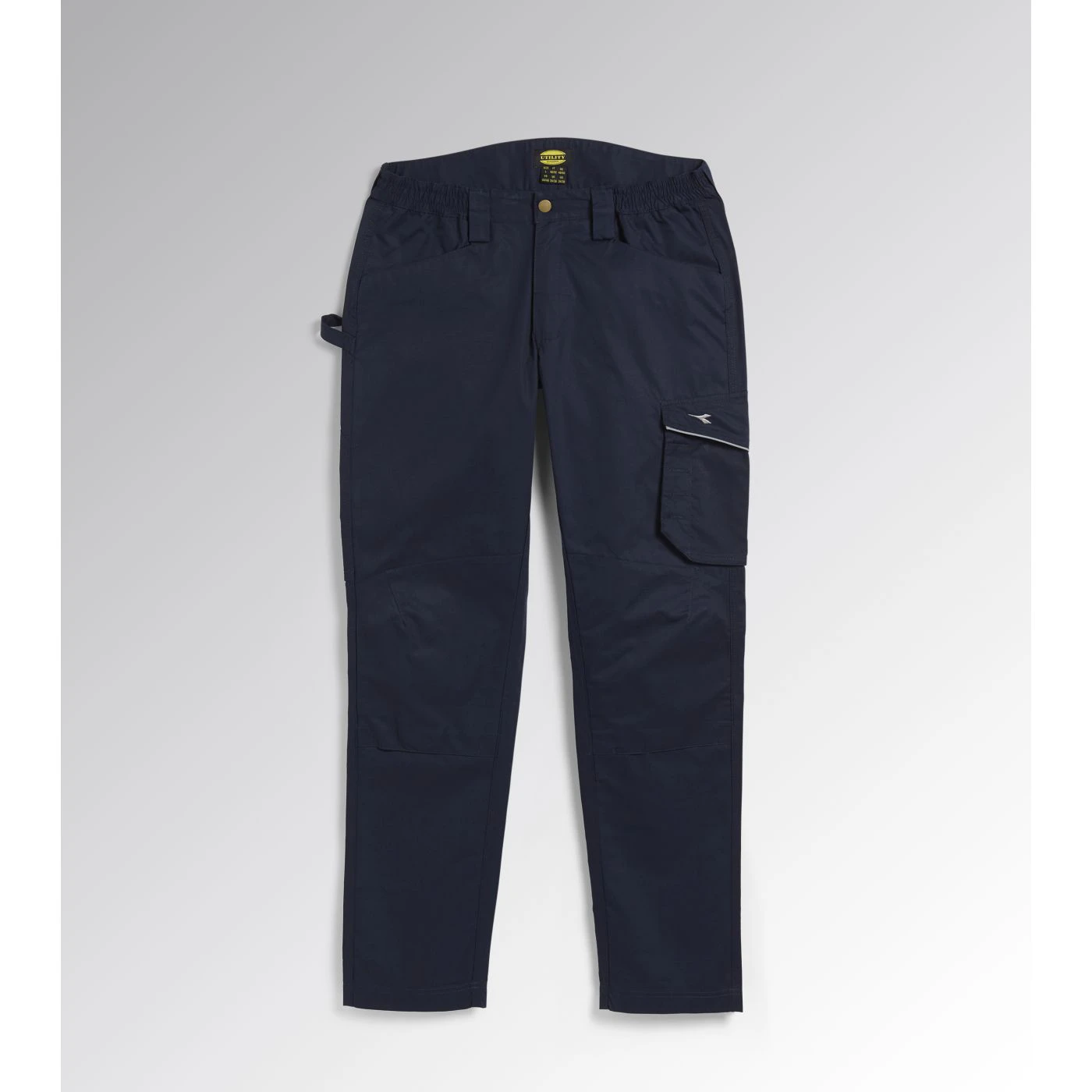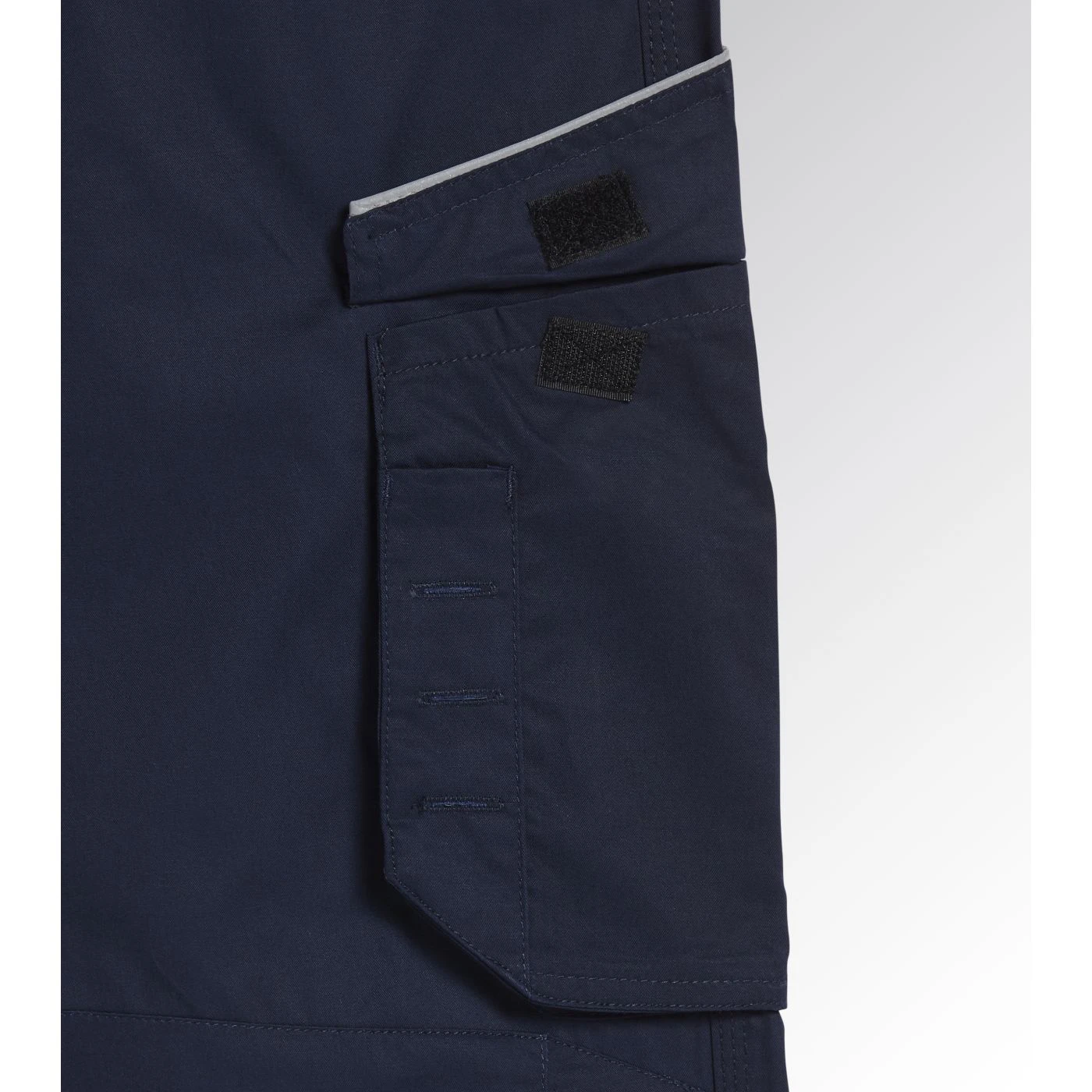 Trousers in cotton twill with knee pads, side pocket, reflective details, ruler pocket, hammer holder, elastic waist, triple stitching.