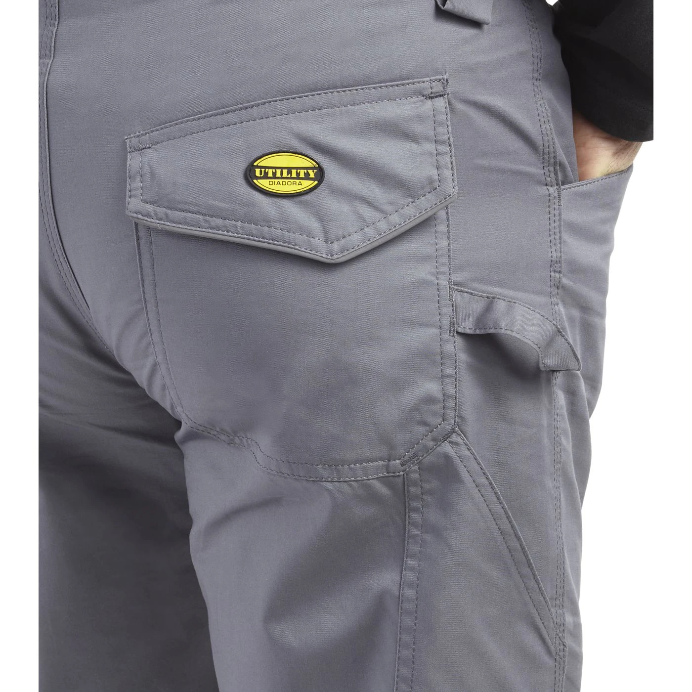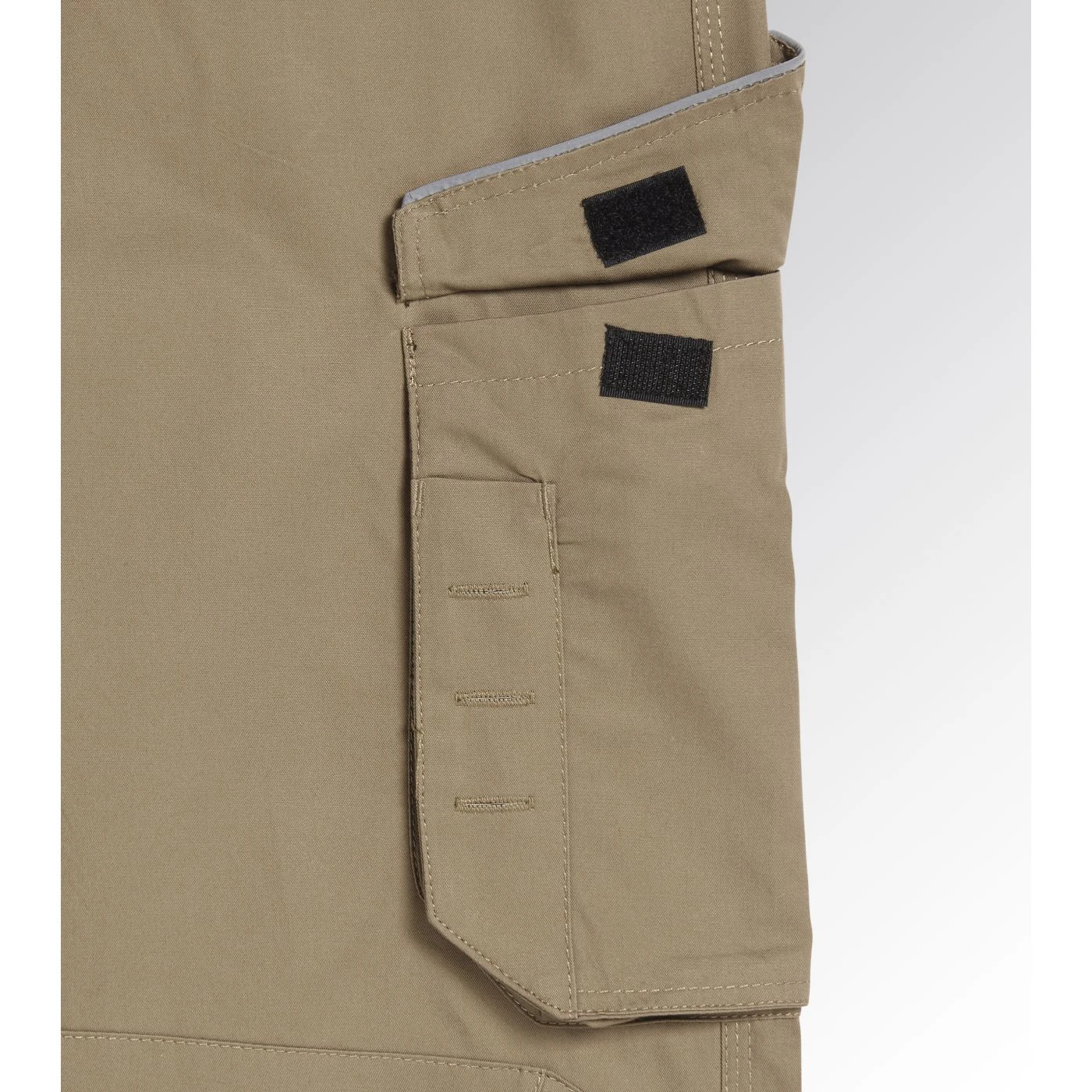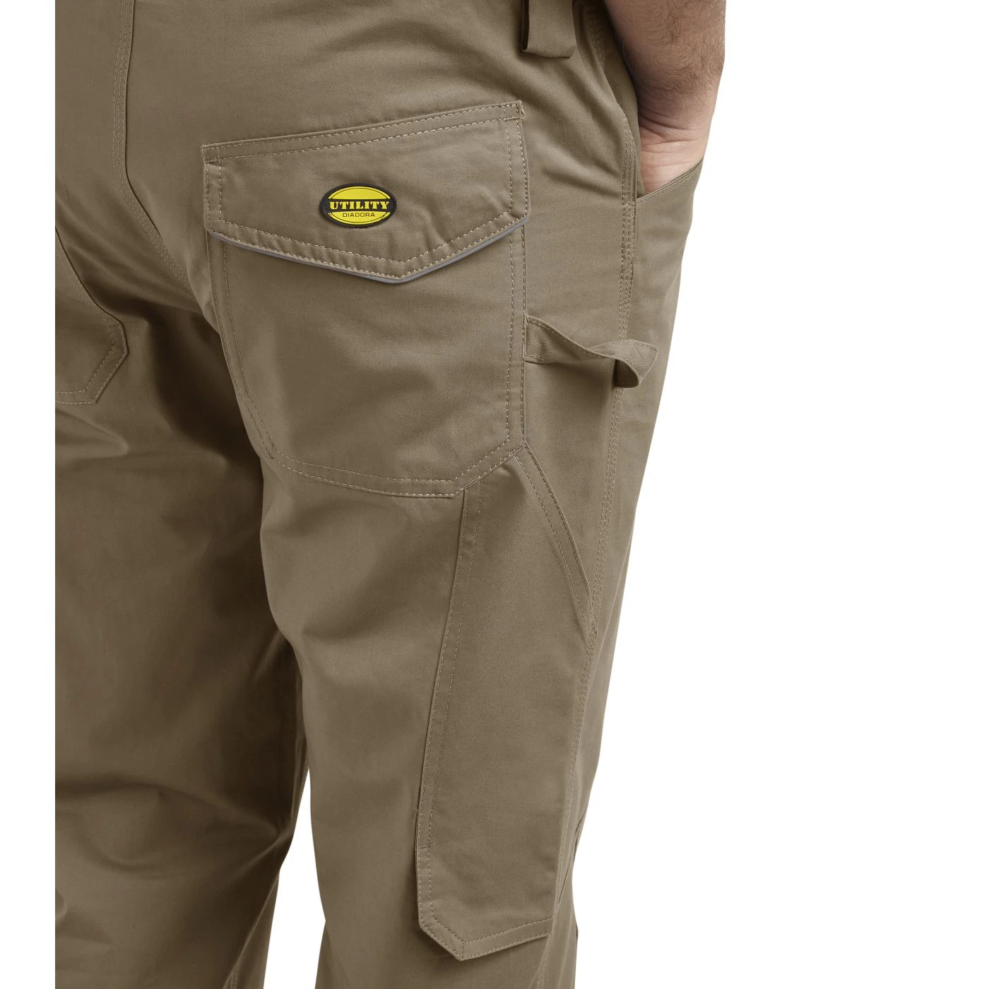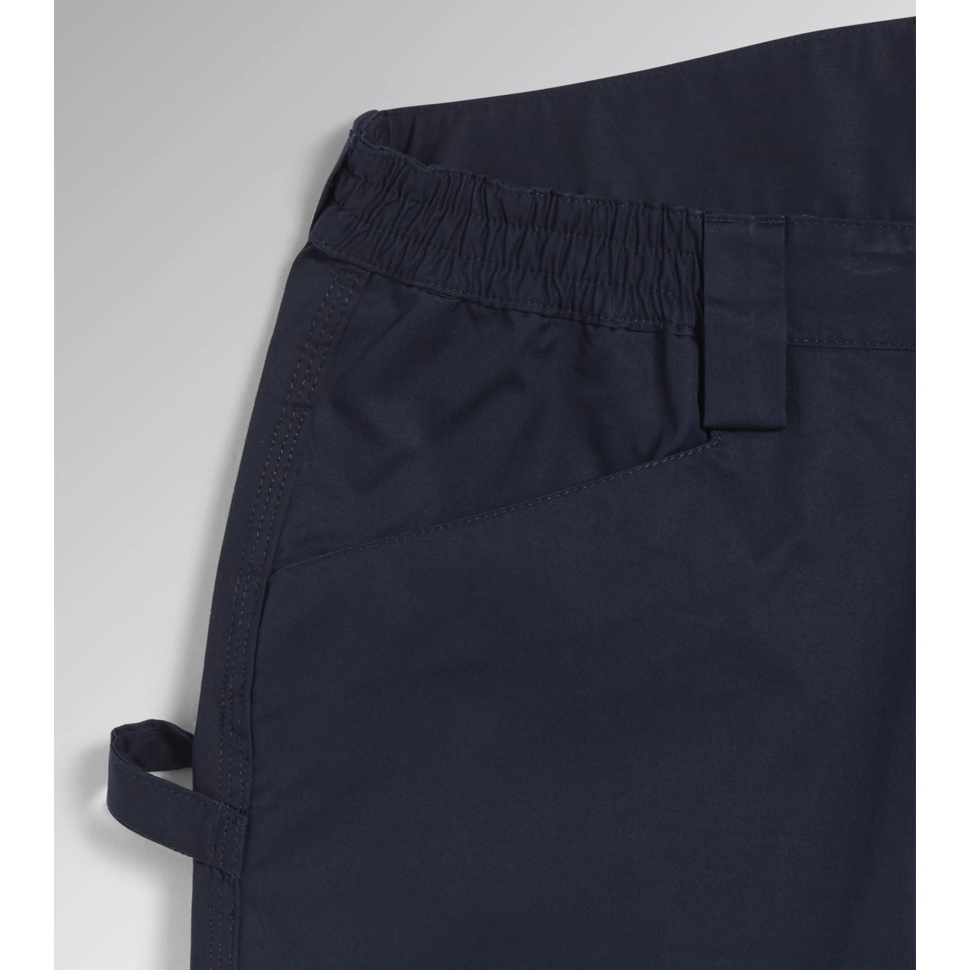 Trousers in cotton twill with knee pads, side pocket, reflective details, ruler pocket, hammer holder, elastic waist, triple stitching.