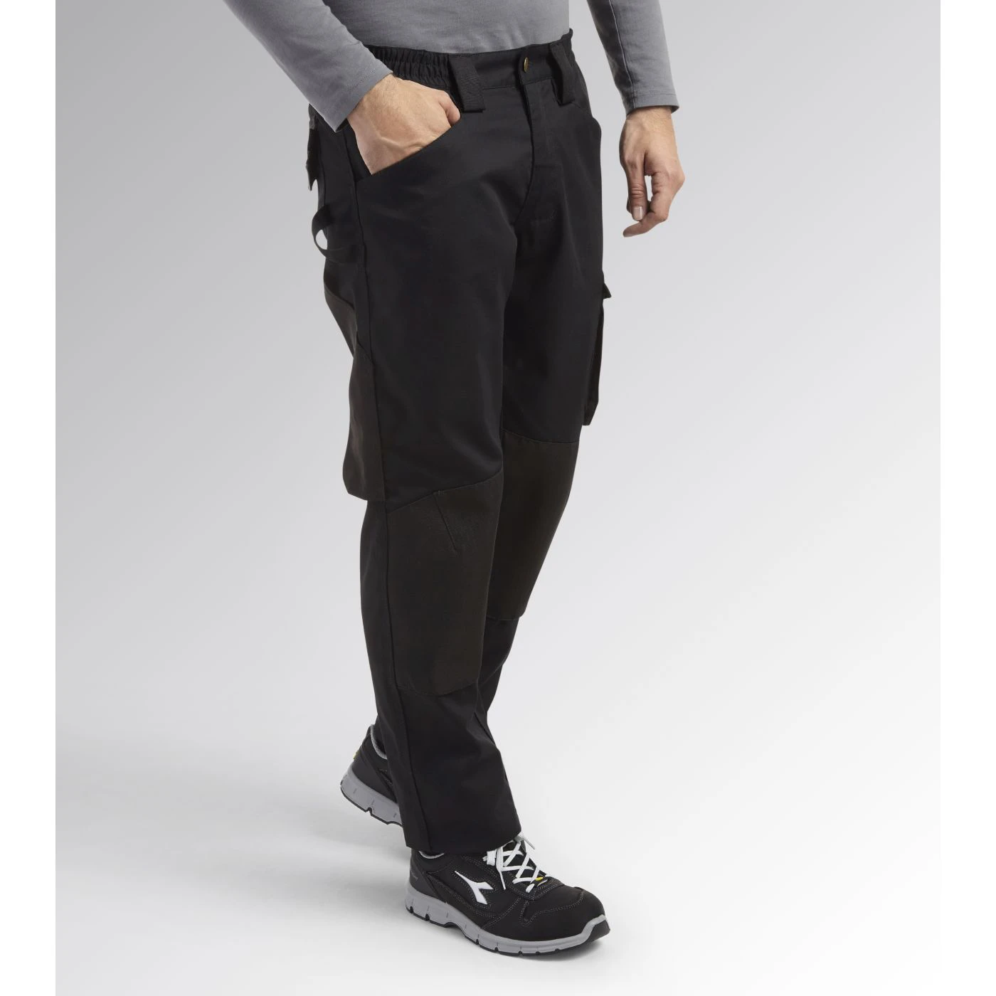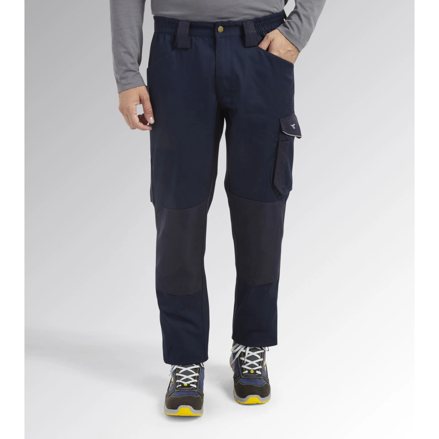 Trousers in polyester and cotton twill with knee pads, side pocket, reflective details, ruler pocket, hammer holder and contrast details in abrasion-resistant material, elastic waist, triple stitching.
