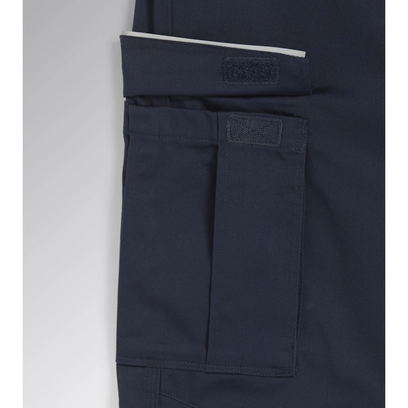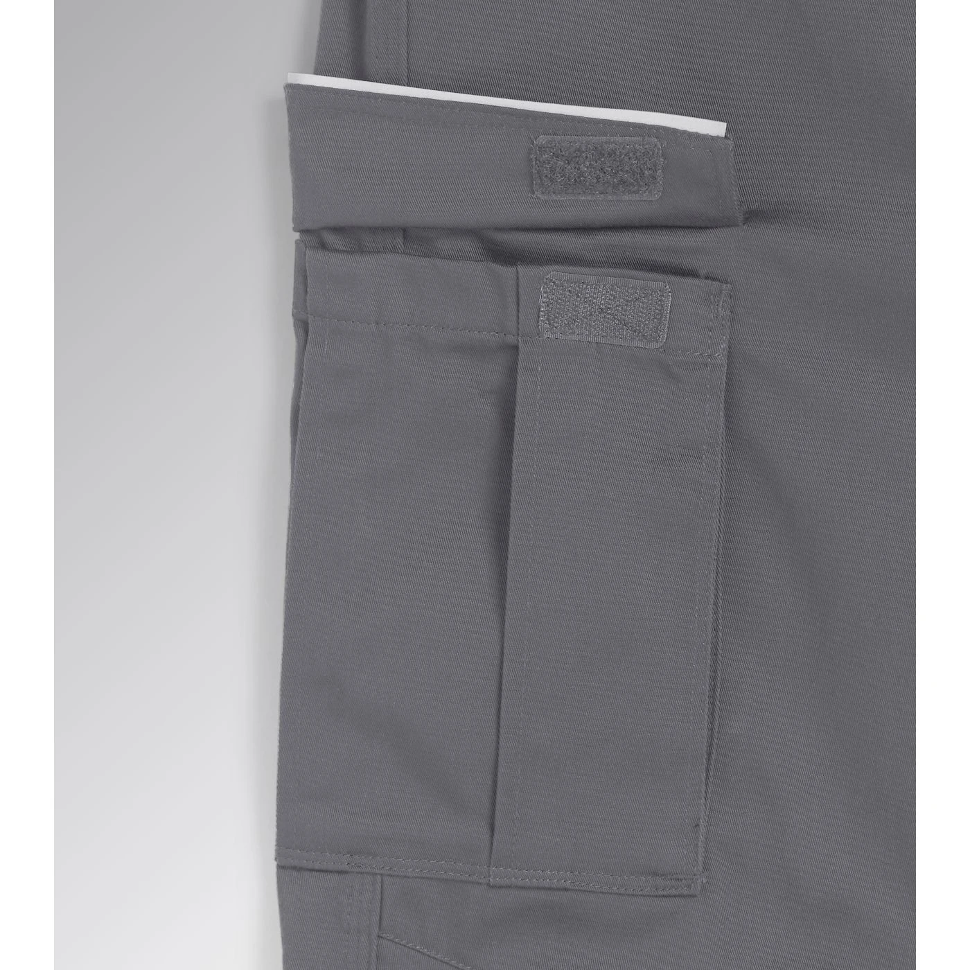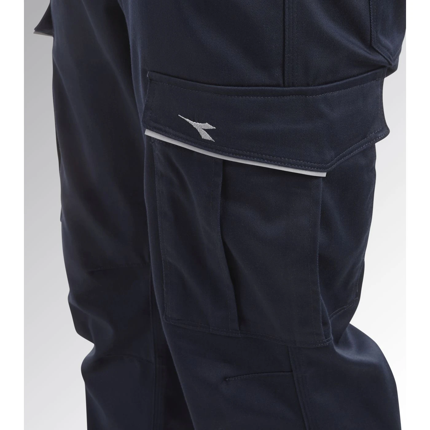 Cargo trousers, two side pockets and two back pockets, reflective details, elastic waist, triple stitching. Pleats on knees for improved ergonomics.