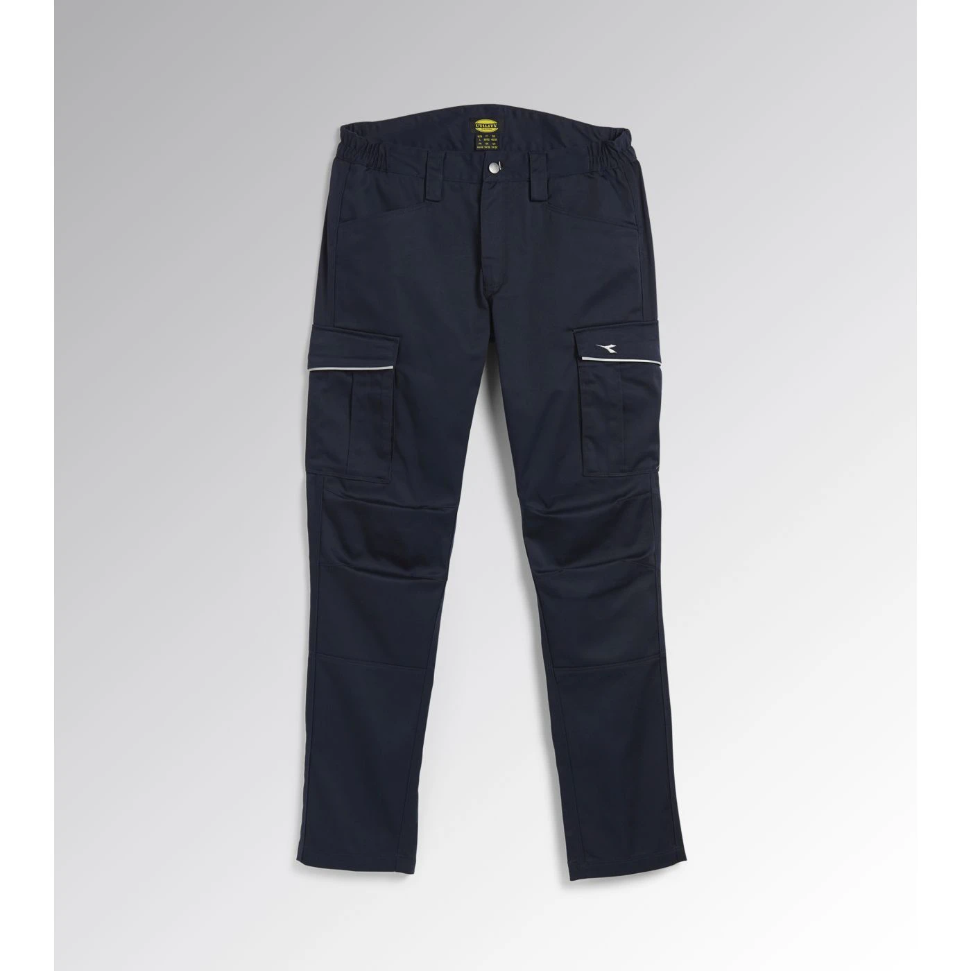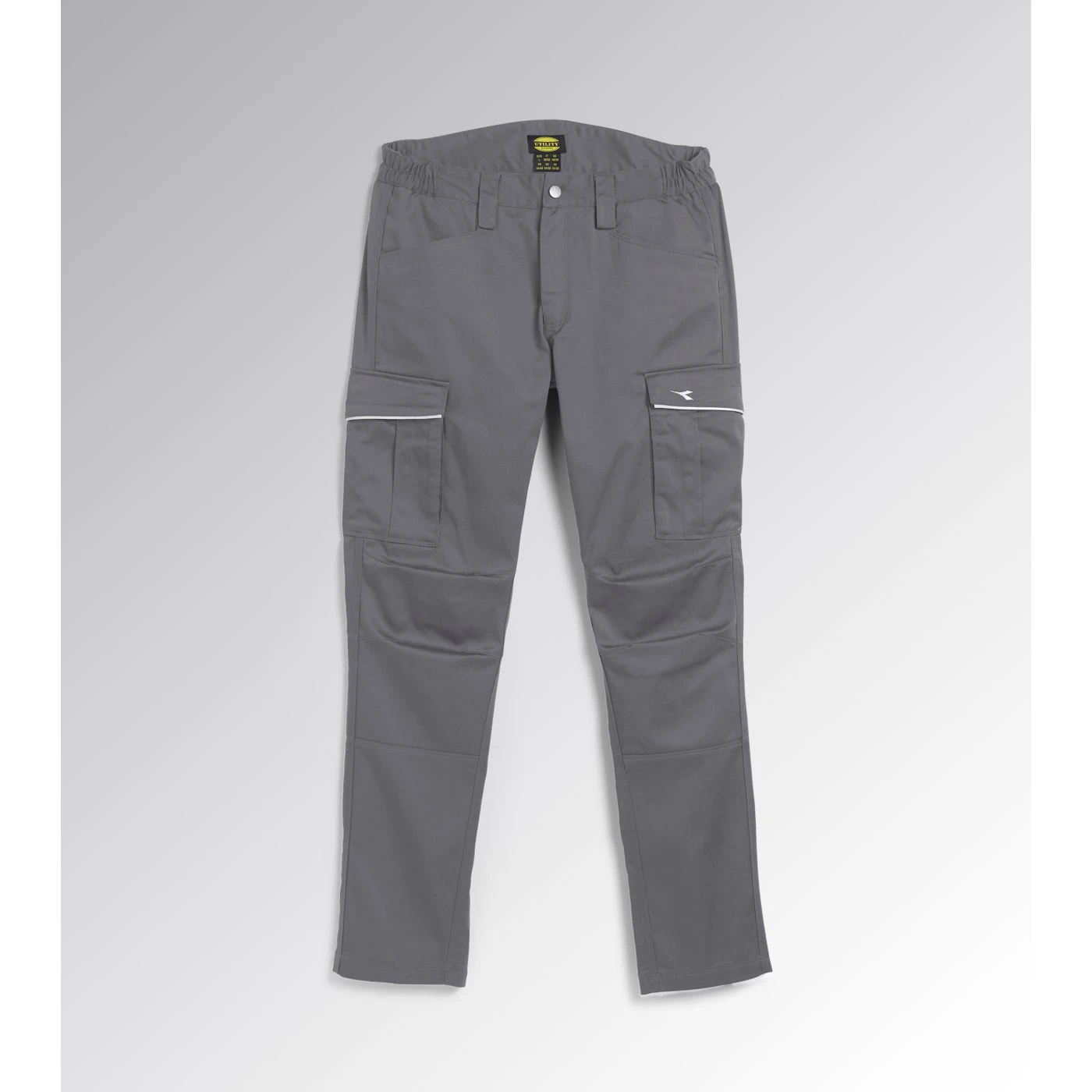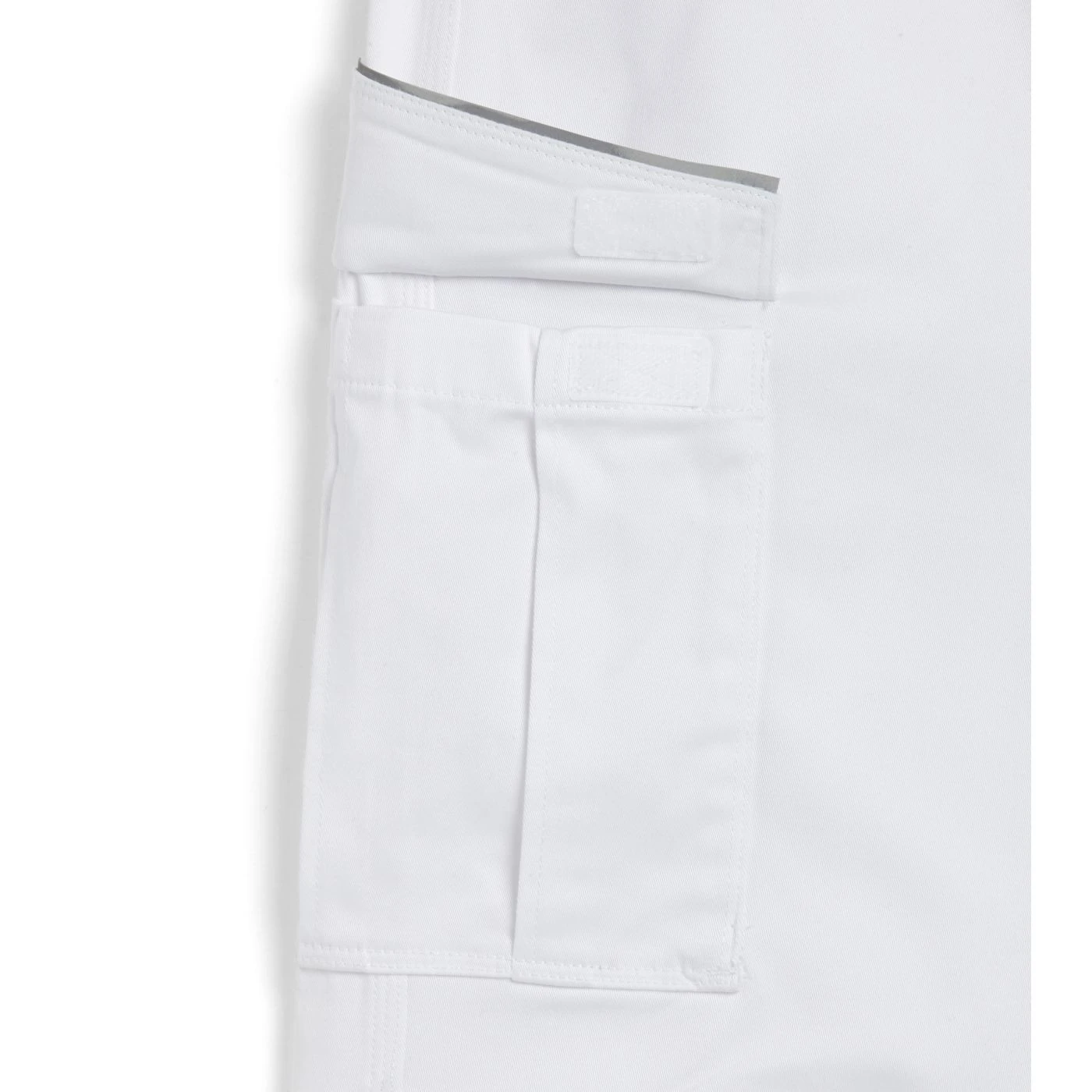 Cargo trousers, two side pockets and two back pockets, reflective details, elastic waist, triple stitching. Pleats on knees for improved ergonomics.