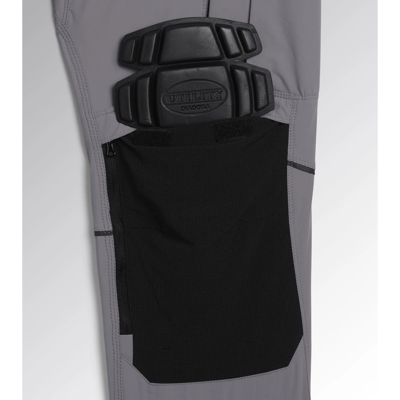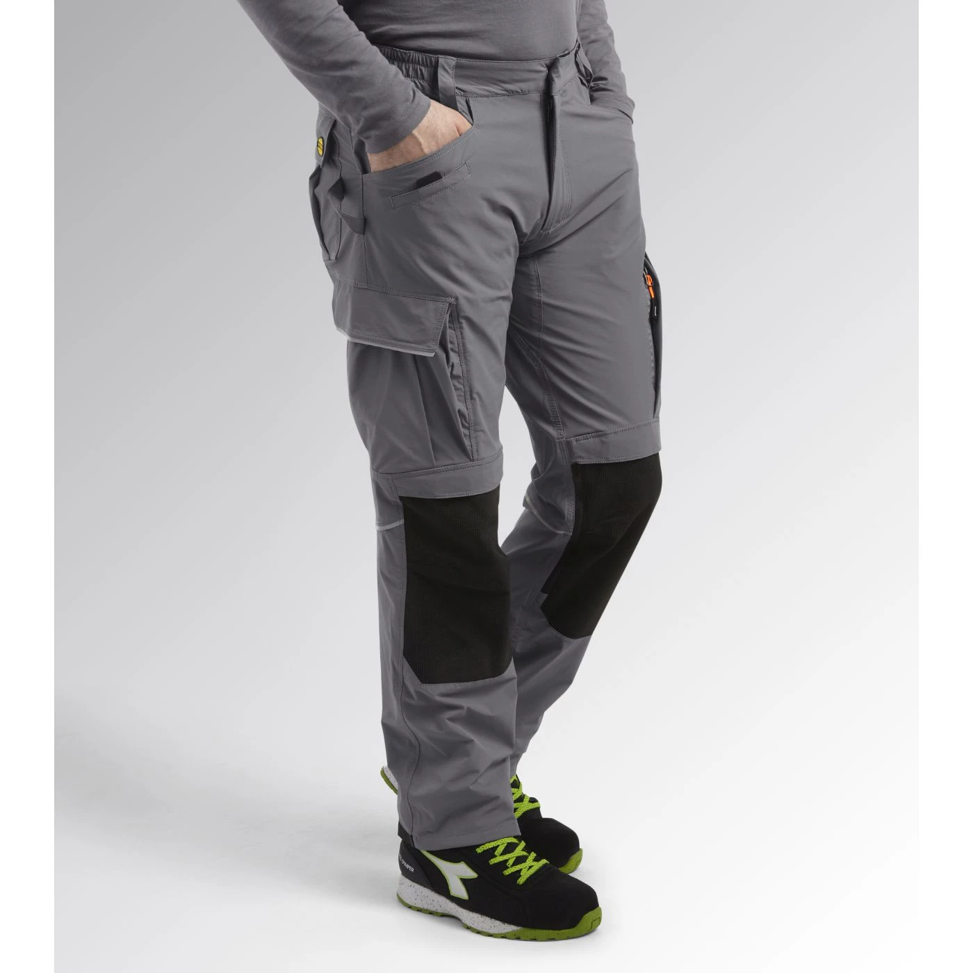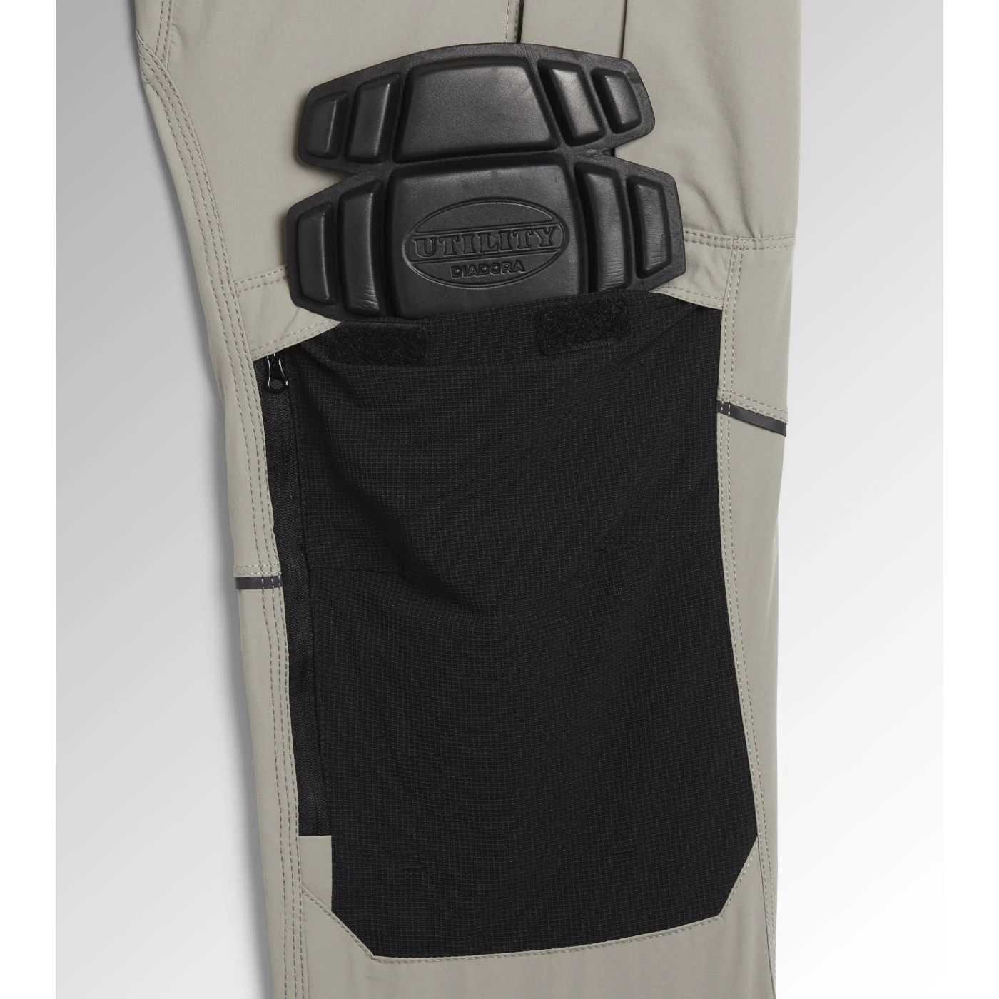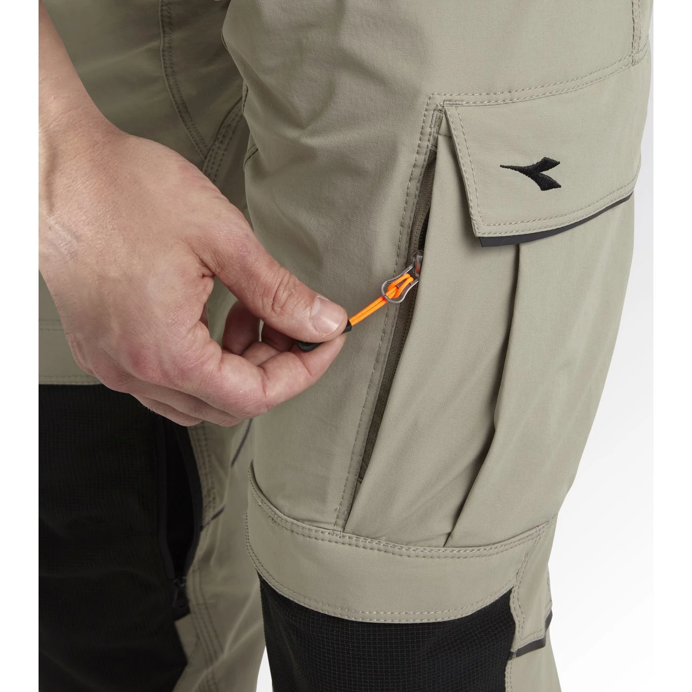 Stretch nylon performance trousers. Contoured waistband with stretch details on the sides for increased comfort. Crotch insert for greater range of movement. Open front pockets and small phone pocket. Ruler pocket on the side. Cargo pockets on both sides. Knee pad in contrasting, abrasion-resistant fabric, with opening from the top, zip and mesh side gusset for greater breathability. Reflective details. Concealed button. Ergonomic leg and adjustable length with press-stud buttons; reinforced heel area with abrasion-resistant fabric. 3M™ SCOTCHGARD™ wicking treatment for quick drying.