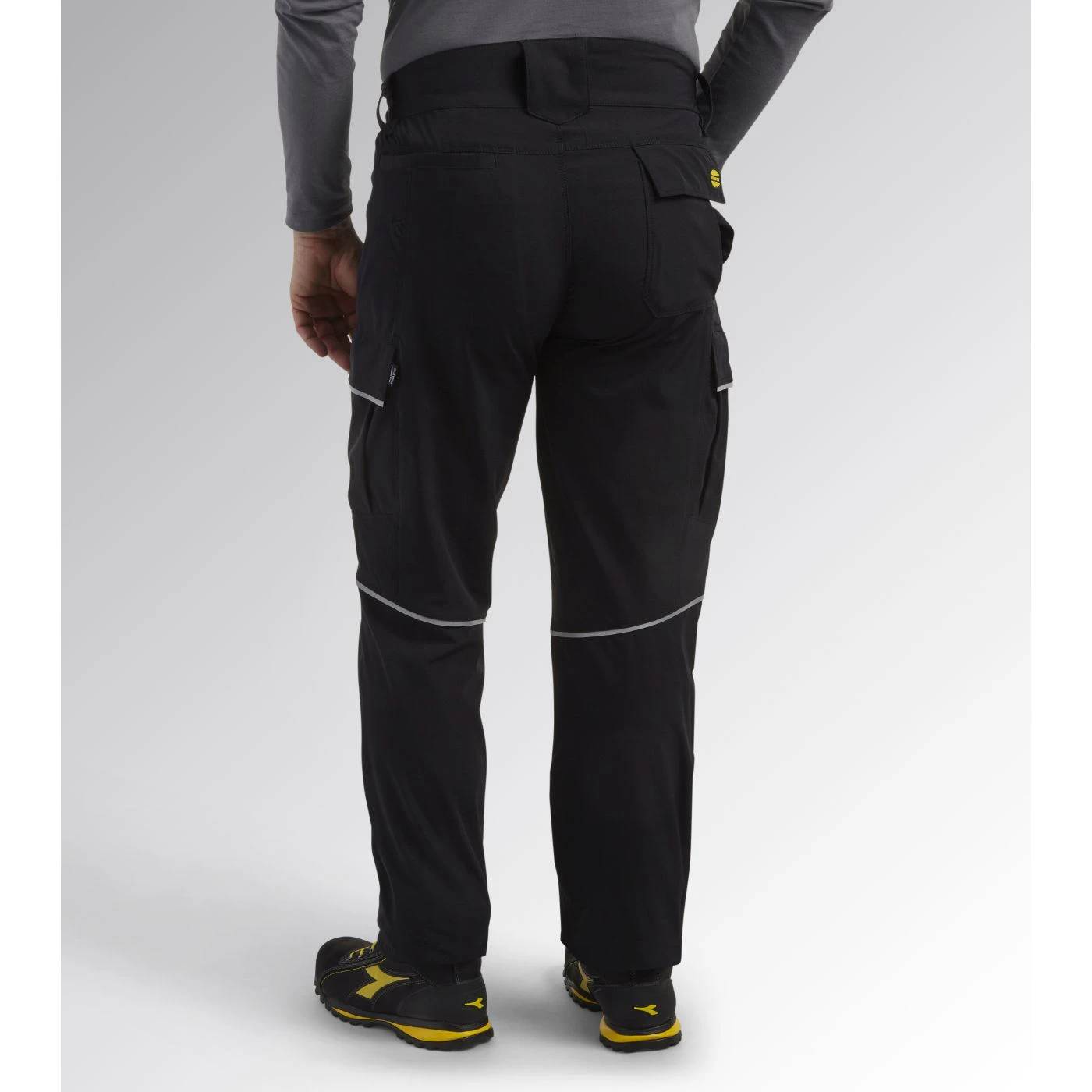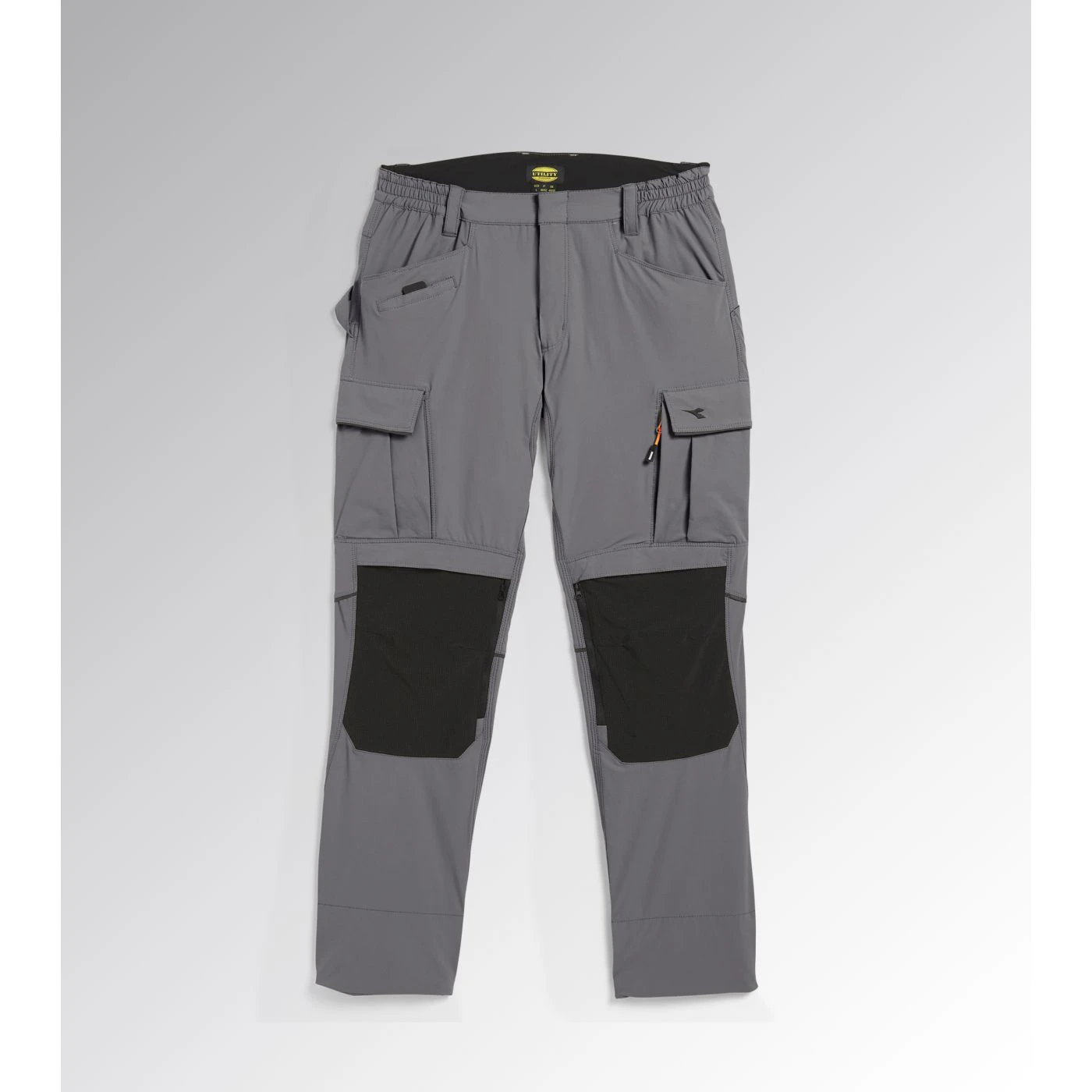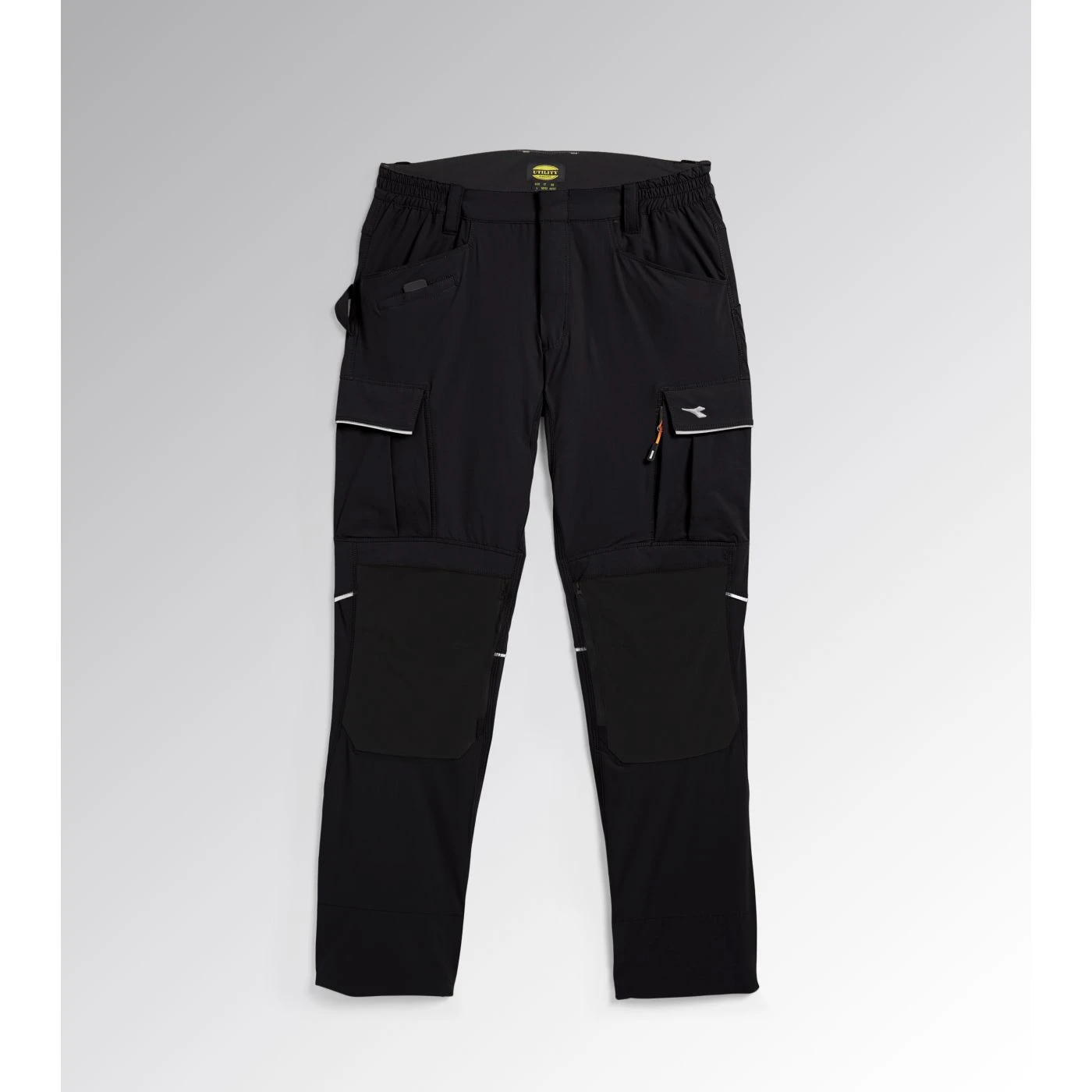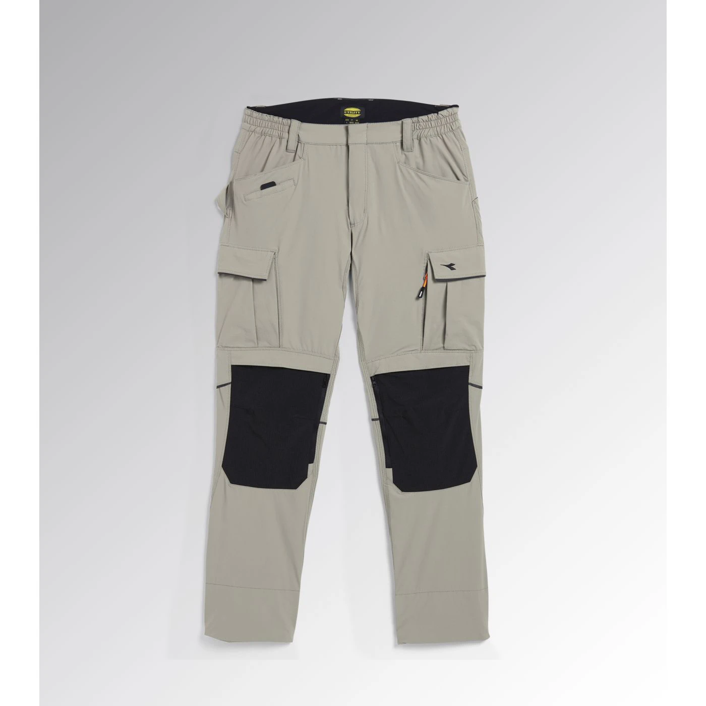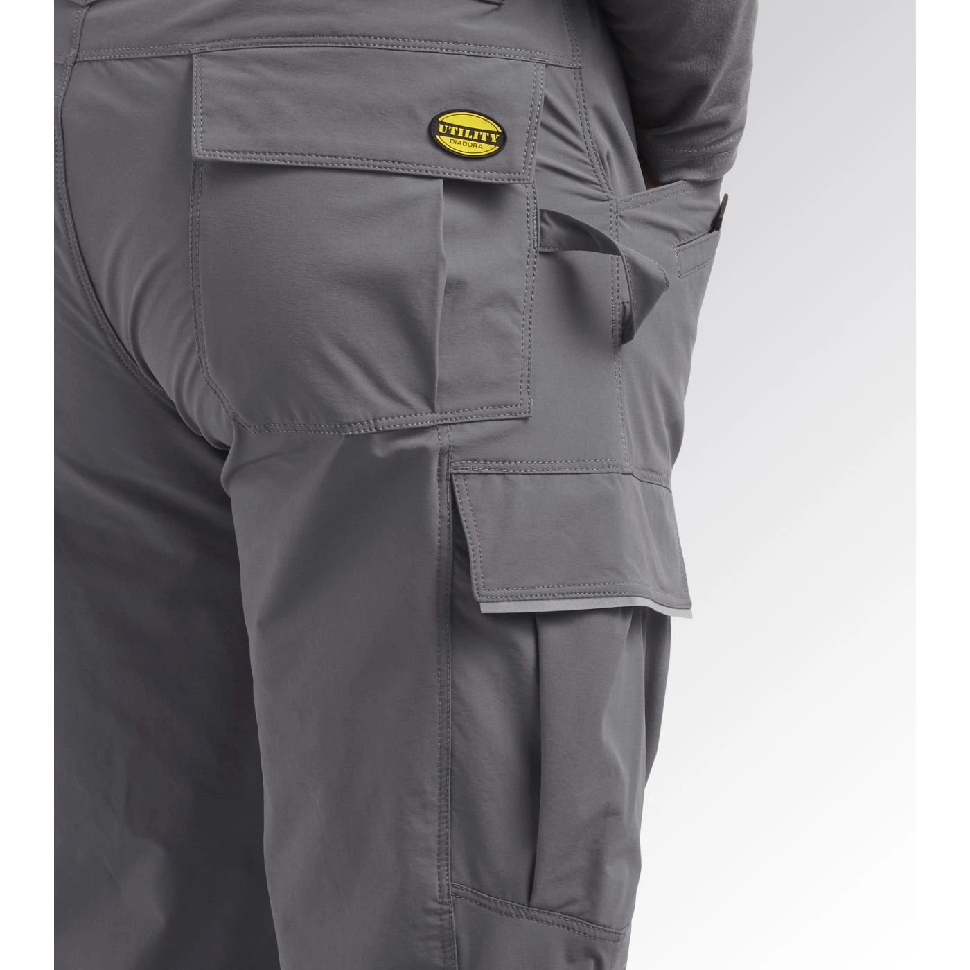Stretch nylon performance trousers. Contoured waistband with stretch details on the sides for increased comfort. Crotch insert for greater range of movement. Open front pockets and small phone pocket. Ruler pocket on the side. Cargo pockets on both sides. Knee pad in contrasting, abrasion-resistant fabric, with opening from the top, zip and mesh side gusset for greater breathability. Reflective details. Concealed button. Ergonomic leg and adjustable length with press-stud buttons; reinforced heel area with abrasion-resistant fabric. 3M™ SCOTCHGARD™ wicking treatment for quick drying.