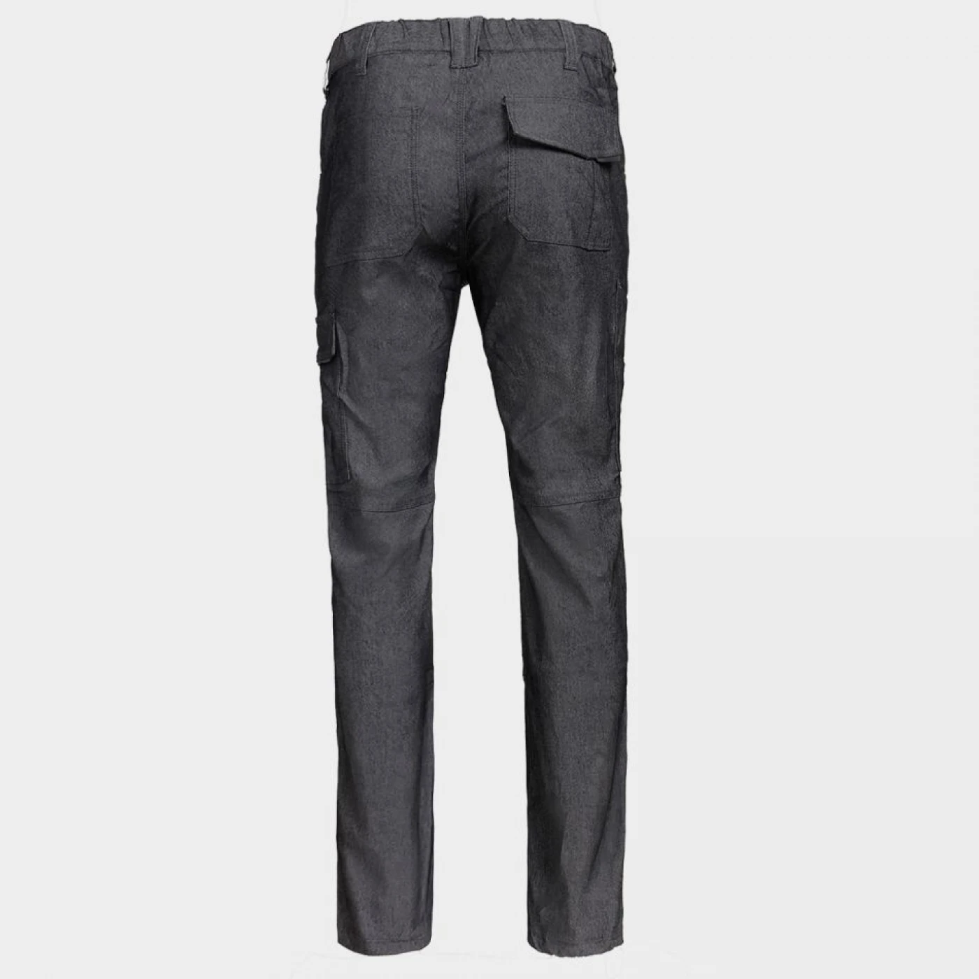 Pantaloni de lucru cu talie elastică și multiple buzunare, potriviți pentru utilizarea zilnică în medii industriale. Elemente reflectorizante sporesc vizibilitatea și siguranța la locul de muncă.