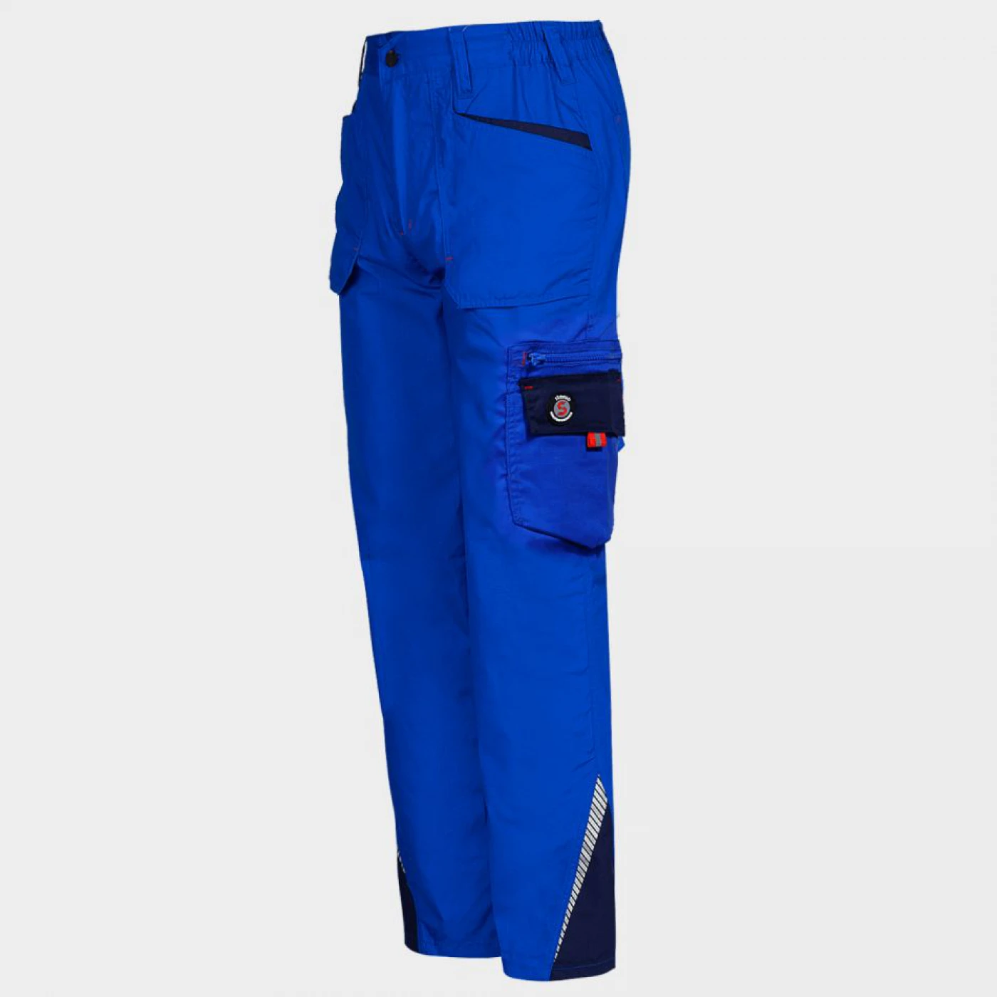 Pantaloni de lucru cu buzunare funcționale și elemente reflectorizante.