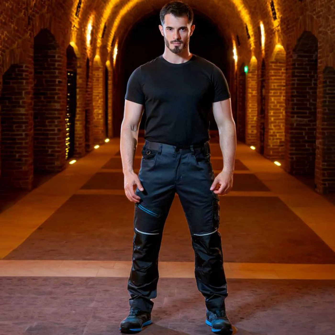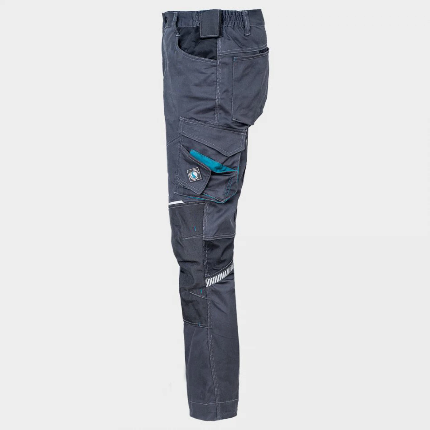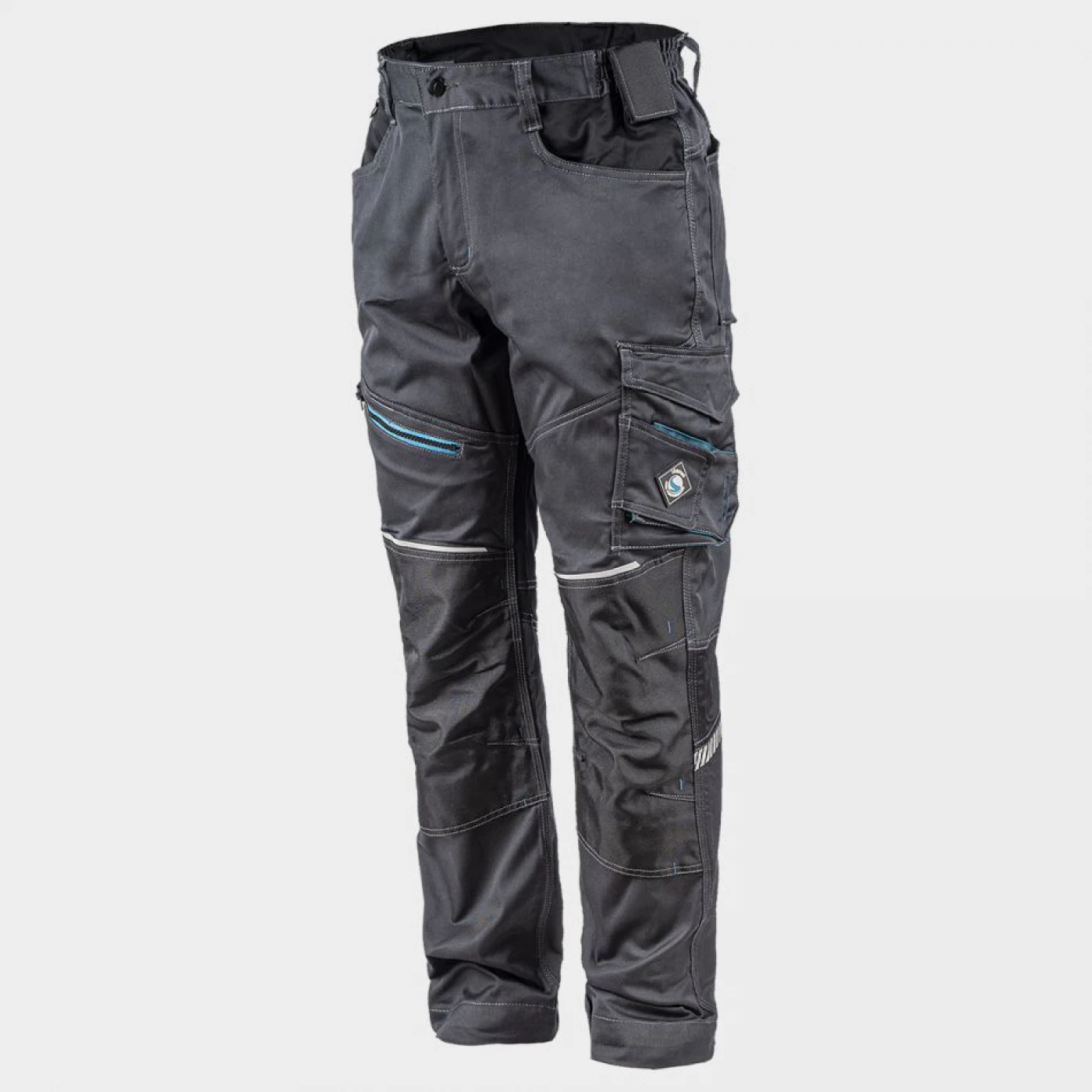 • pantaloni de lucru multifuncționali cu cusături triple și elasticitate buna;