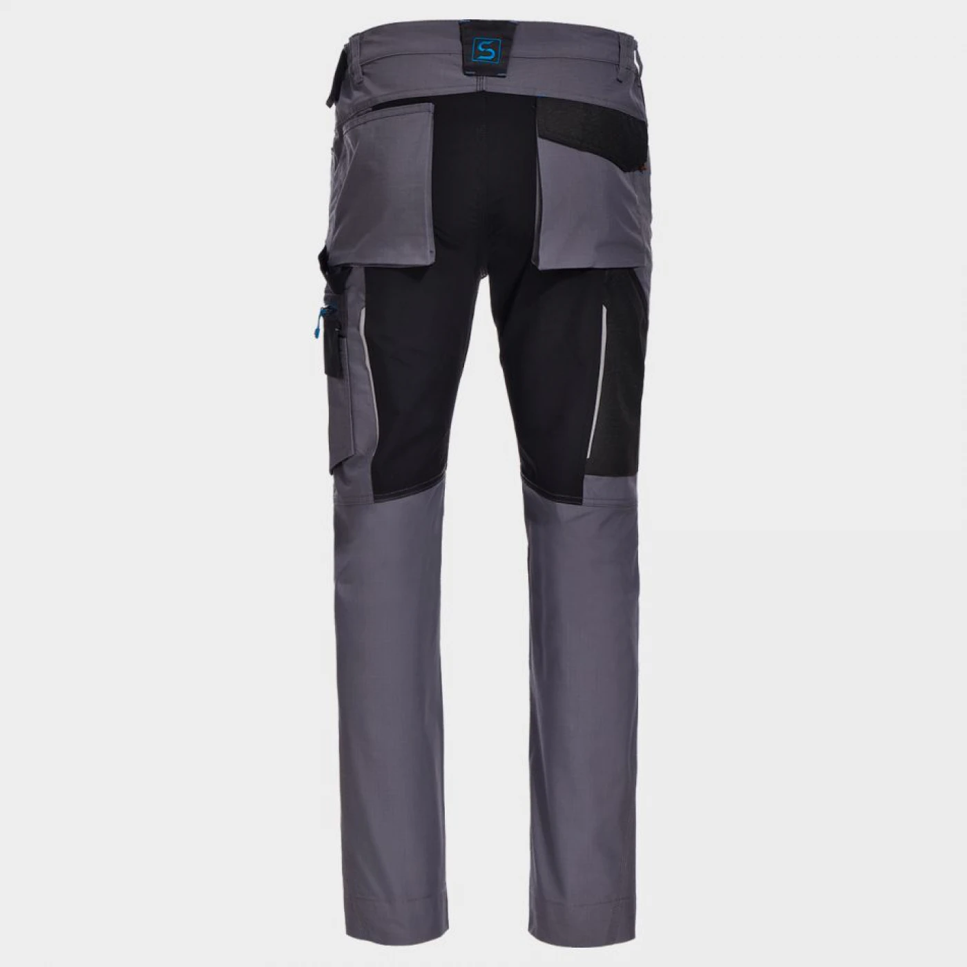 Pantaloni de lucru cu buzunare multifuncționale și elemente reflectorizante.