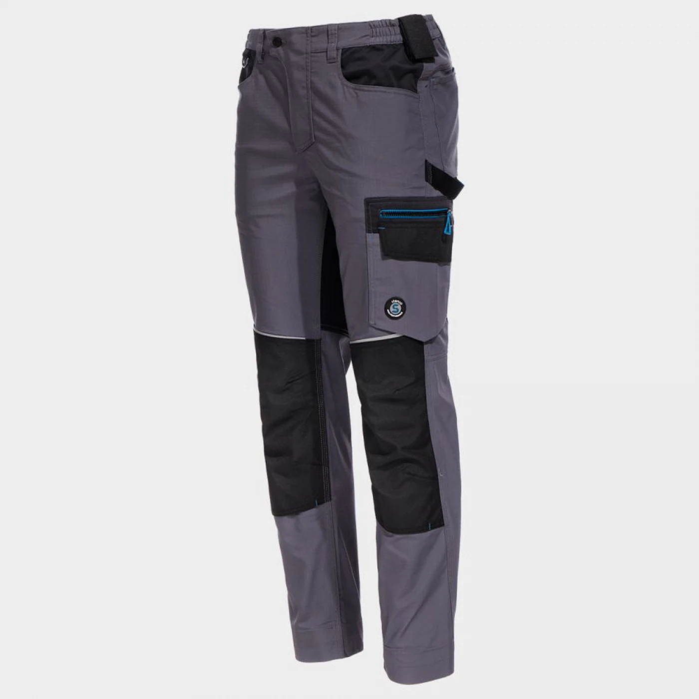 • Talie elastică, genunchi întăriți cu buzunar pentru genunchiere, bucla pentru cheie sau insignă, bandă velcro în talie pentru atașarea genții de scule.