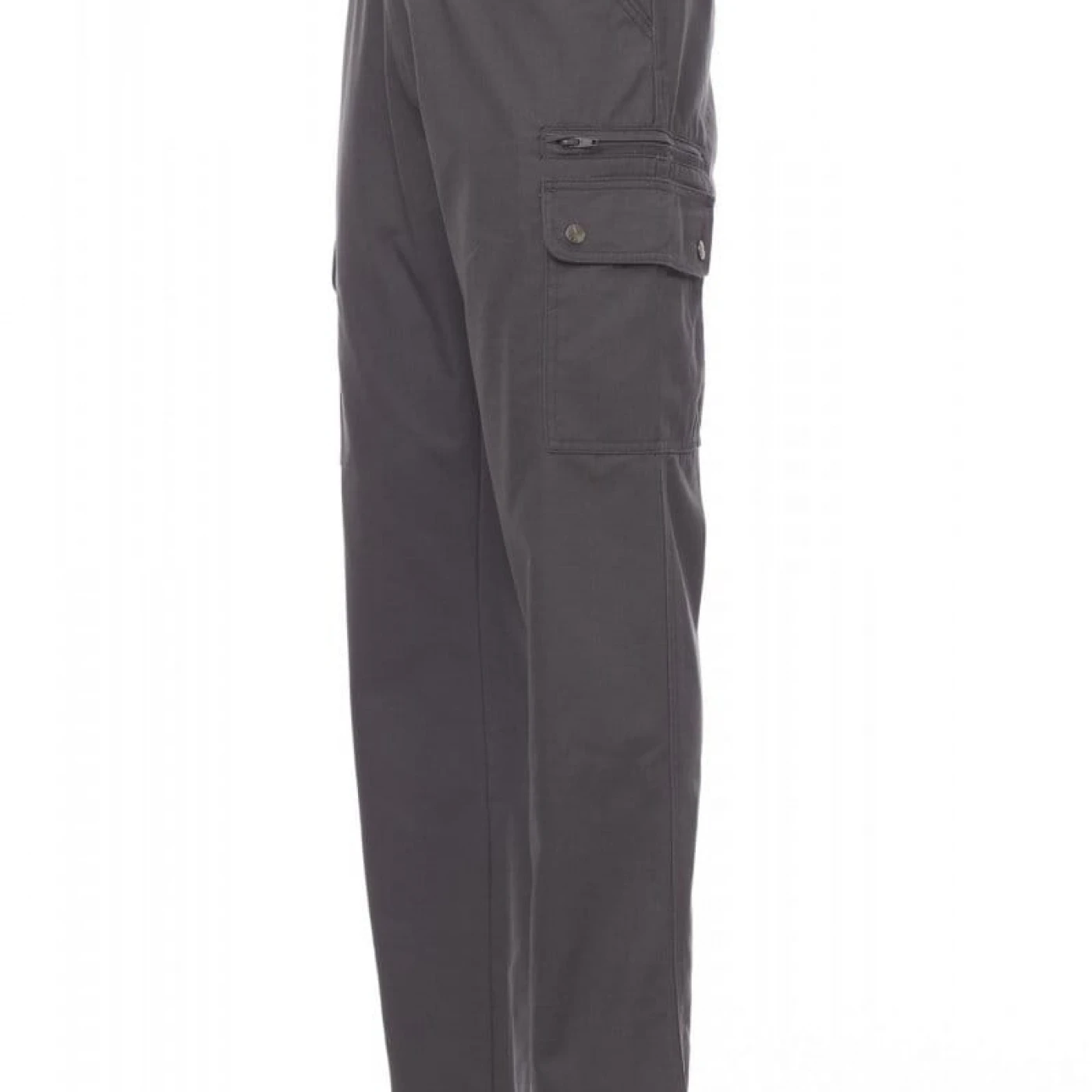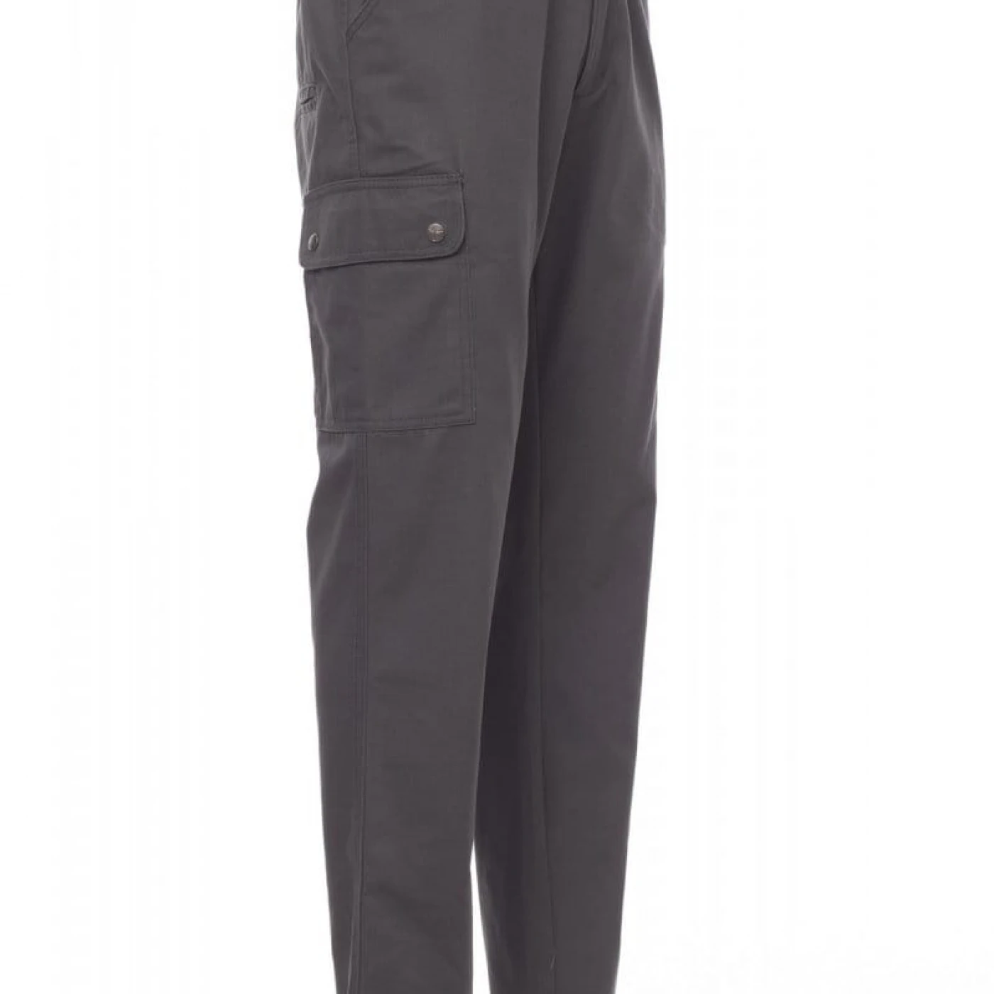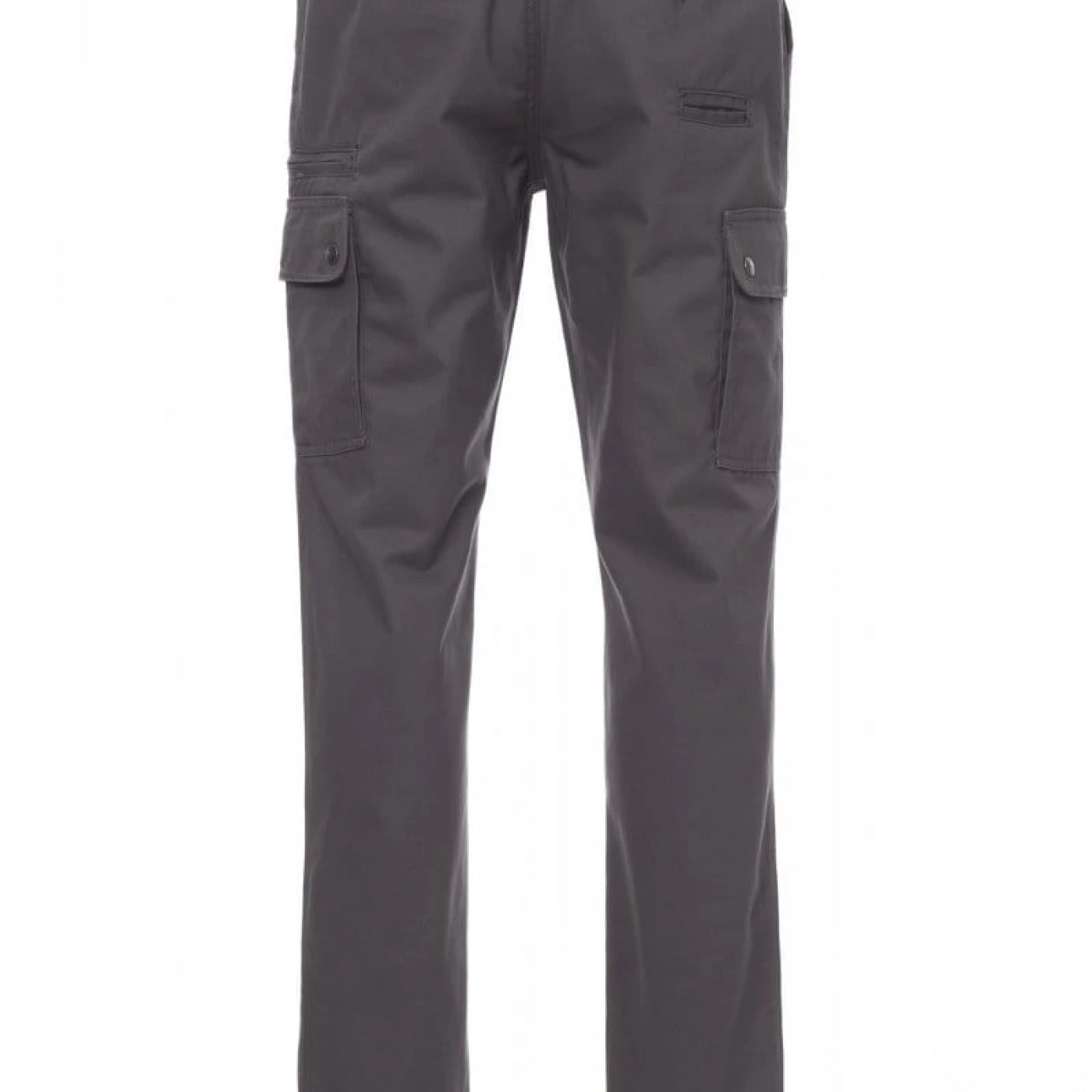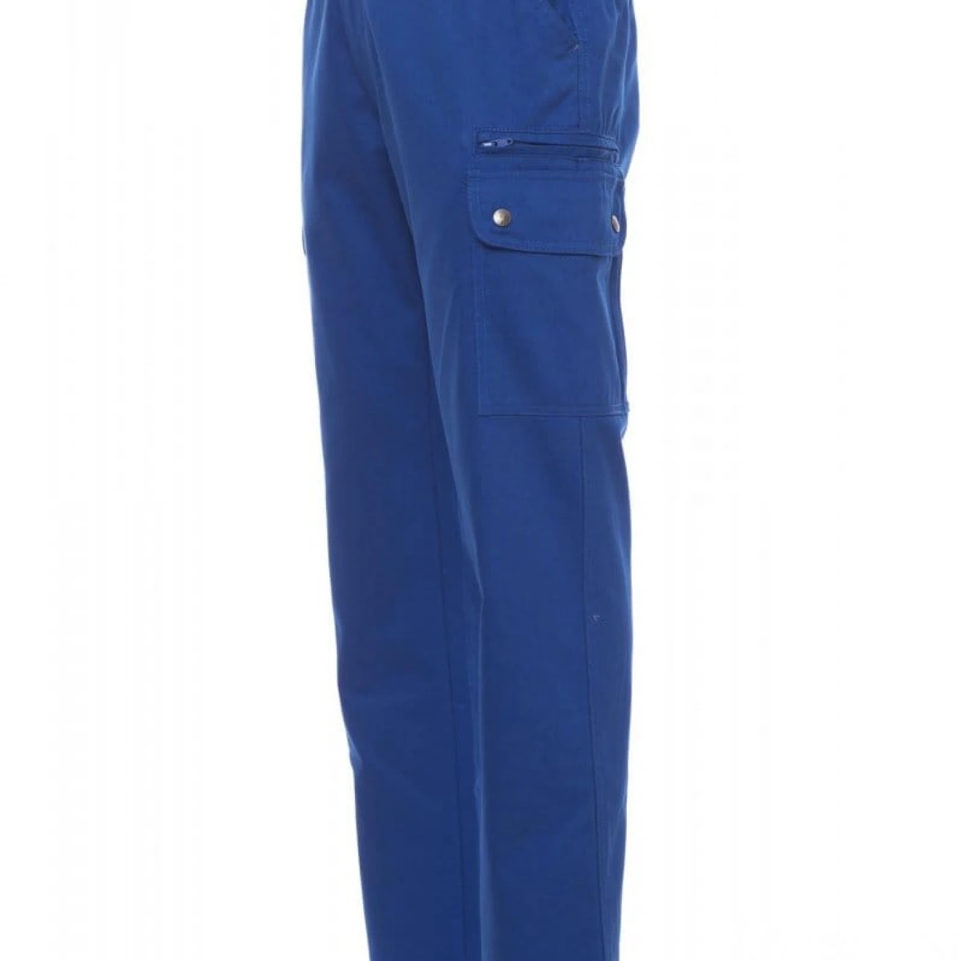 Pantaloni talie pentru barbati, confectionati din bumbac 100%, cu elastic pe lateral și găici pentru curea. Închiderea se face cu fermoar si nasture metalic. Sunt echipati cu doua buzunare frontale cu croiala clasica, doua buzunare laterale cu clapete si capse metalice, un buzunar cu fermoar pe piciorul stang, un buzunar cu banda de masurat pe piciorul drept, doua buzunare cu fante la spate, prevazute cu nasturi si butoniere.