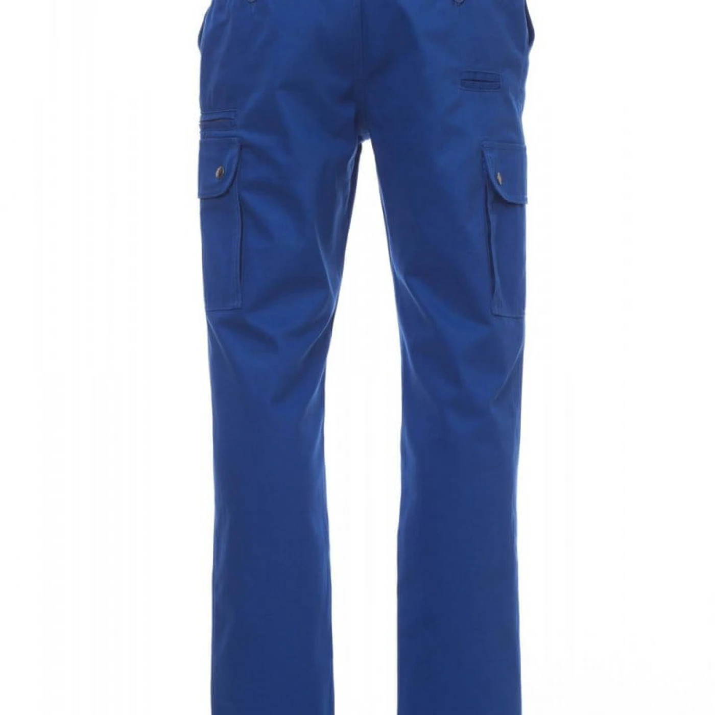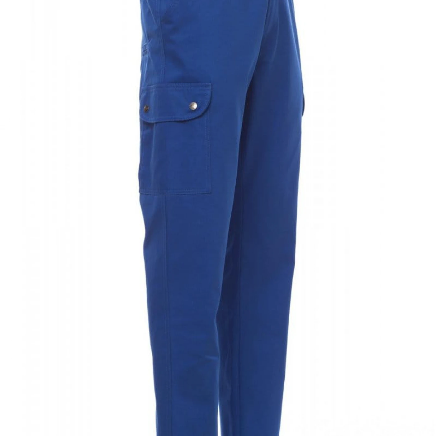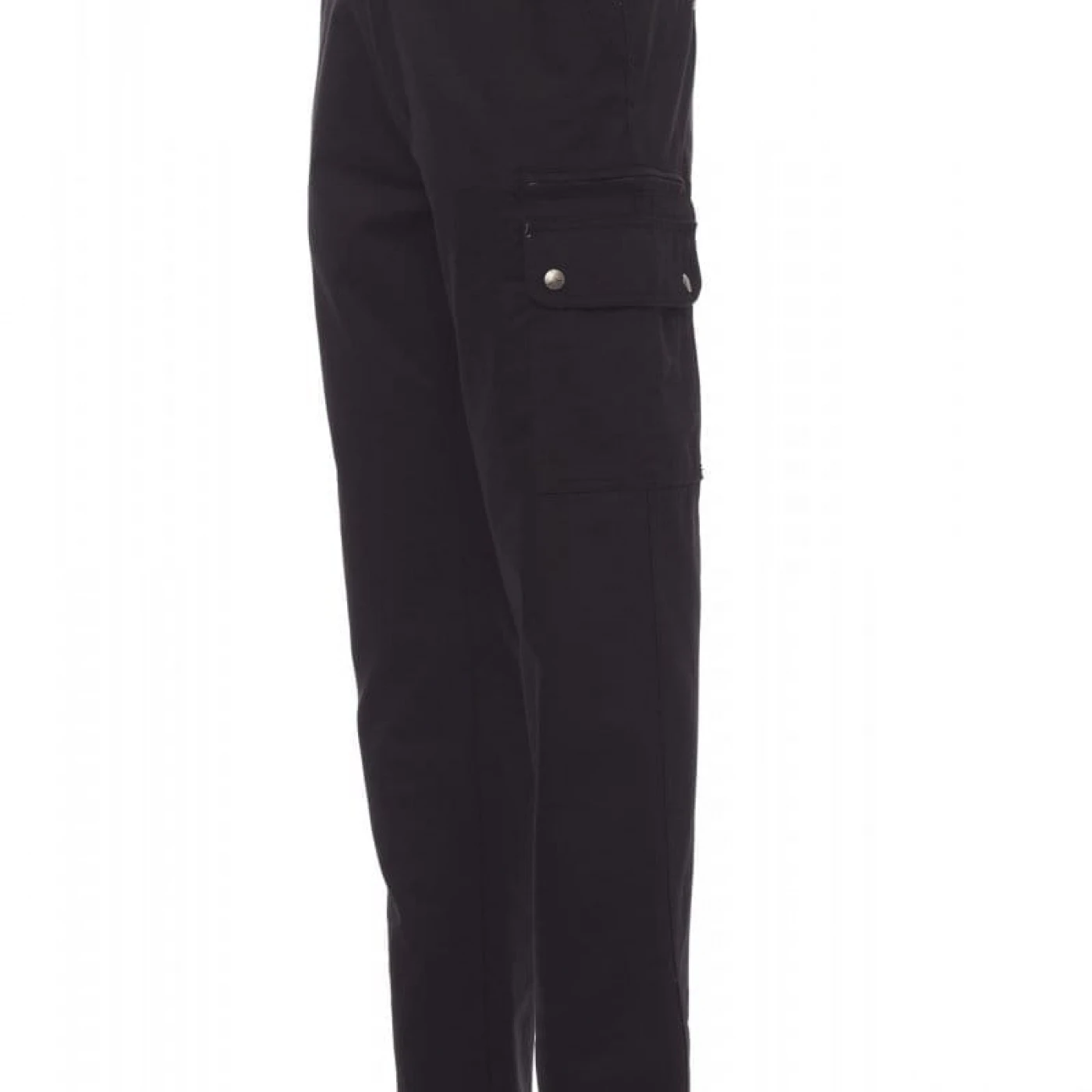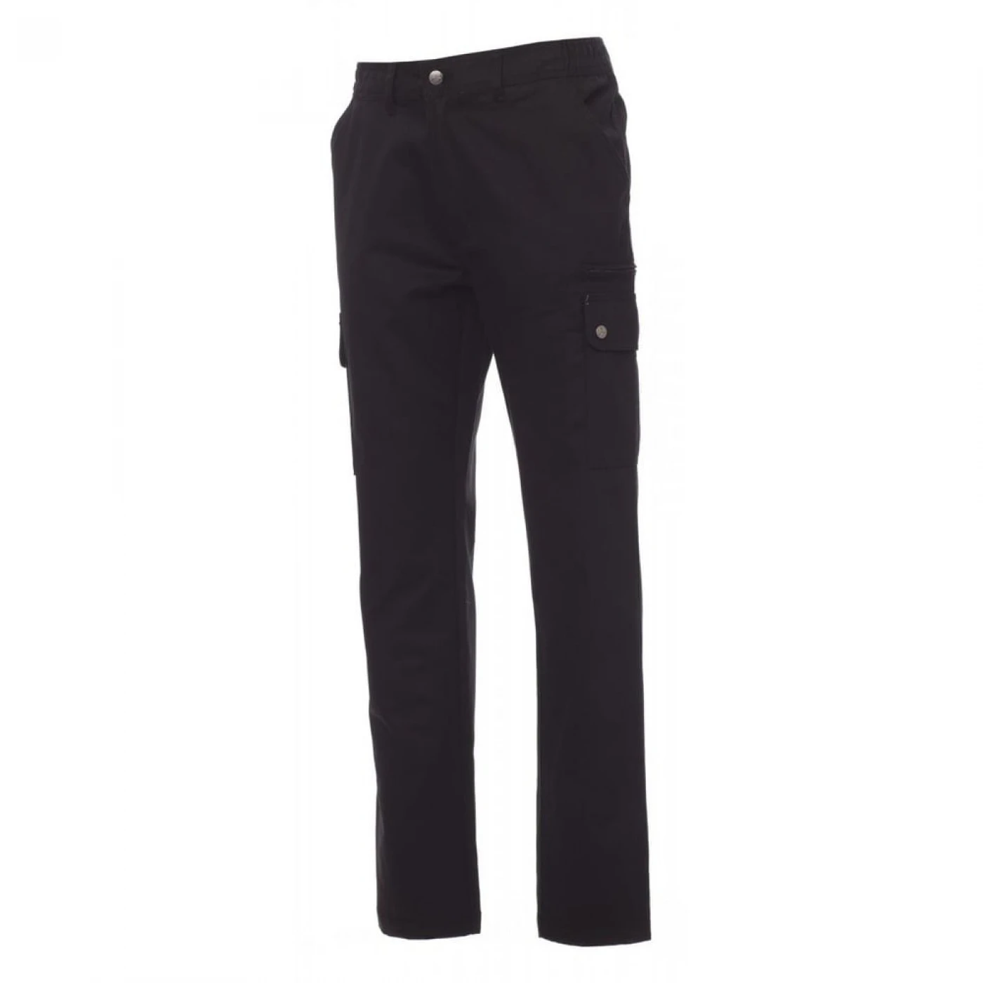 Pantaloni talie pentru barbati, confectionati din bumbac 100%, cu elastic pe lateral și găici pentru curea. Închiderea se face cu fermoar si nasture metalic. Sunt echipati cu doua buzunare frontale cu croiala clasica, doua buzunare laterale cu clapete si capse metalice, un buzunar cu fermoar pe piciorul stang, un buzunar cu banda de masurat pe piciorul drept, doua buzunare cu fante la spate, prevazute cu nasturi si butoniere.