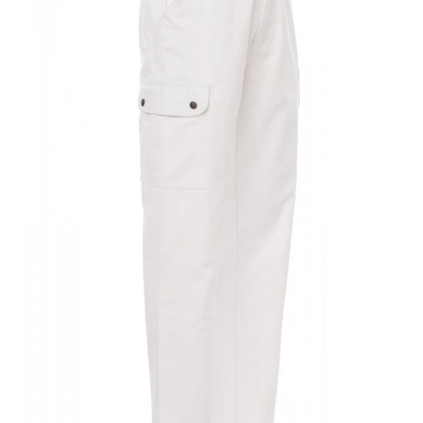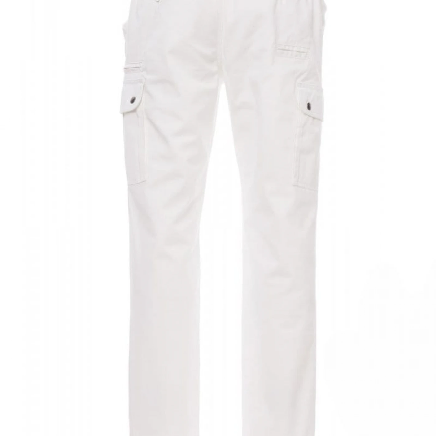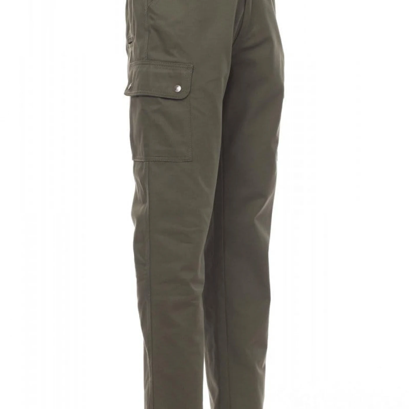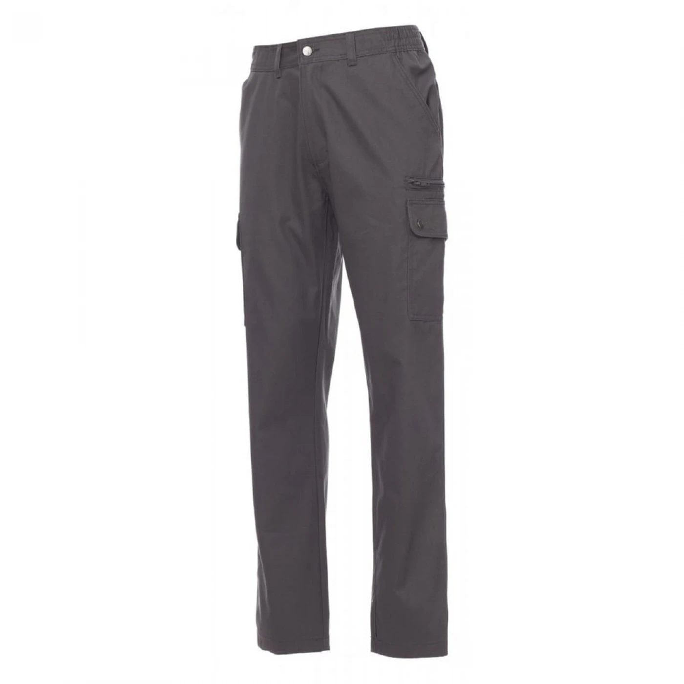 Pantaloni talie pentru barbati, confectionati din bumbac 100%, cu elastic pe lateral și găici pentru curea. Închiderea se face cu fermoar si nasture metalic. Sunt echipati cu doua buzunare frontale cu croiala clasica, doua buzunare laterale cu clapete si capse metalice, un buzunar cu fermoar pe piciorul stang, un buzunar cu banda de masurat pe piciorul drept, doua buzunare cu fante la spate, prevazute cu nasturi si butoniere.