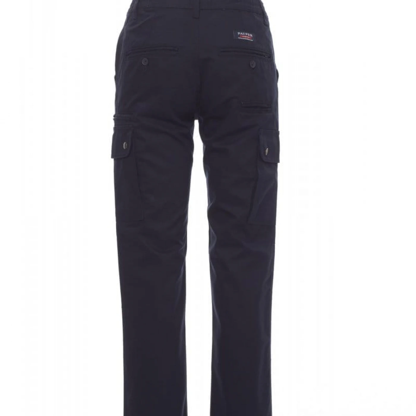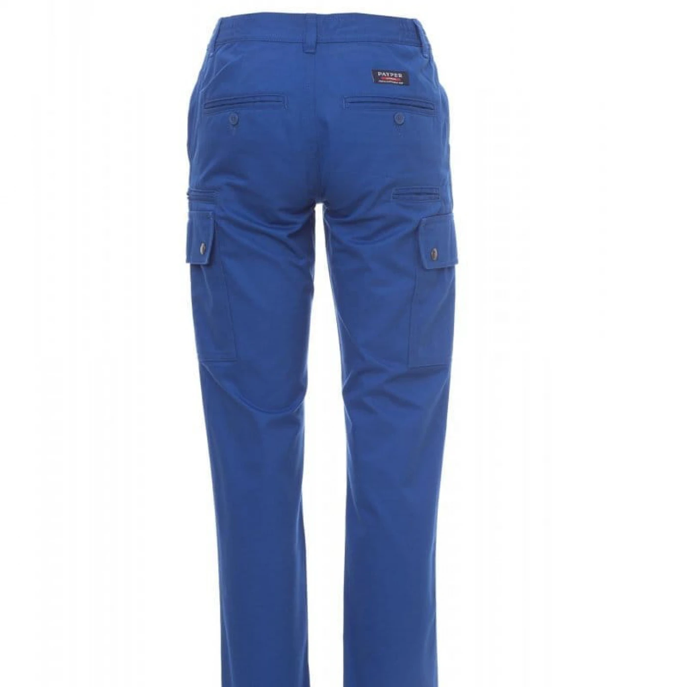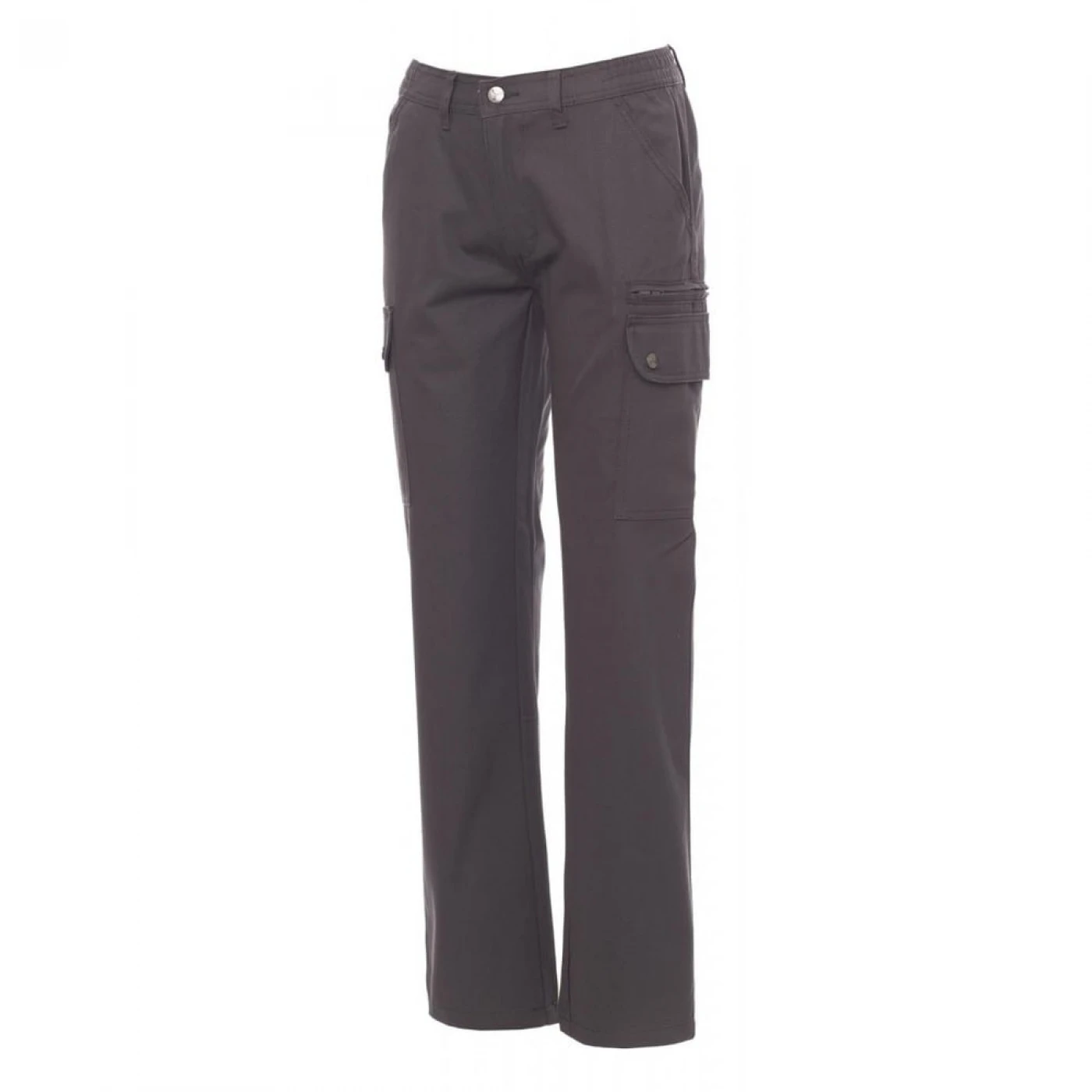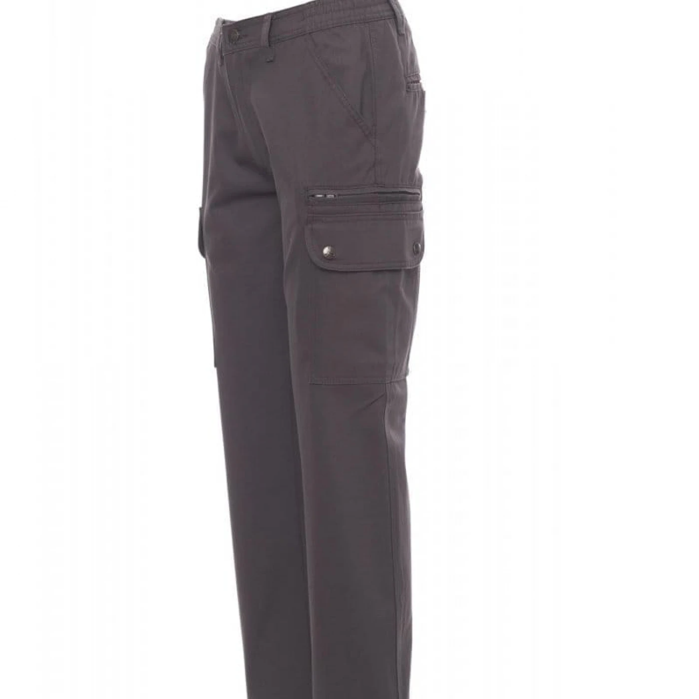 Pantaloni talie pentru femei, confectionati din bumbac 100%, cu elastic pe lateral și găici pentru curea. Închiderea se face cu fermoar si nasture metalic. Sunt echipati cu doua buzunare frontale cu croiala clasica, doua buzunare laterale cu clapete si capse metalice, un buzunar cu fermoar pe piciorul stang, un buzunar cu banda de masurat pe piciorul drept, doua buzunare cu fante la spate, prevazute cu nasturi si butoniere.
