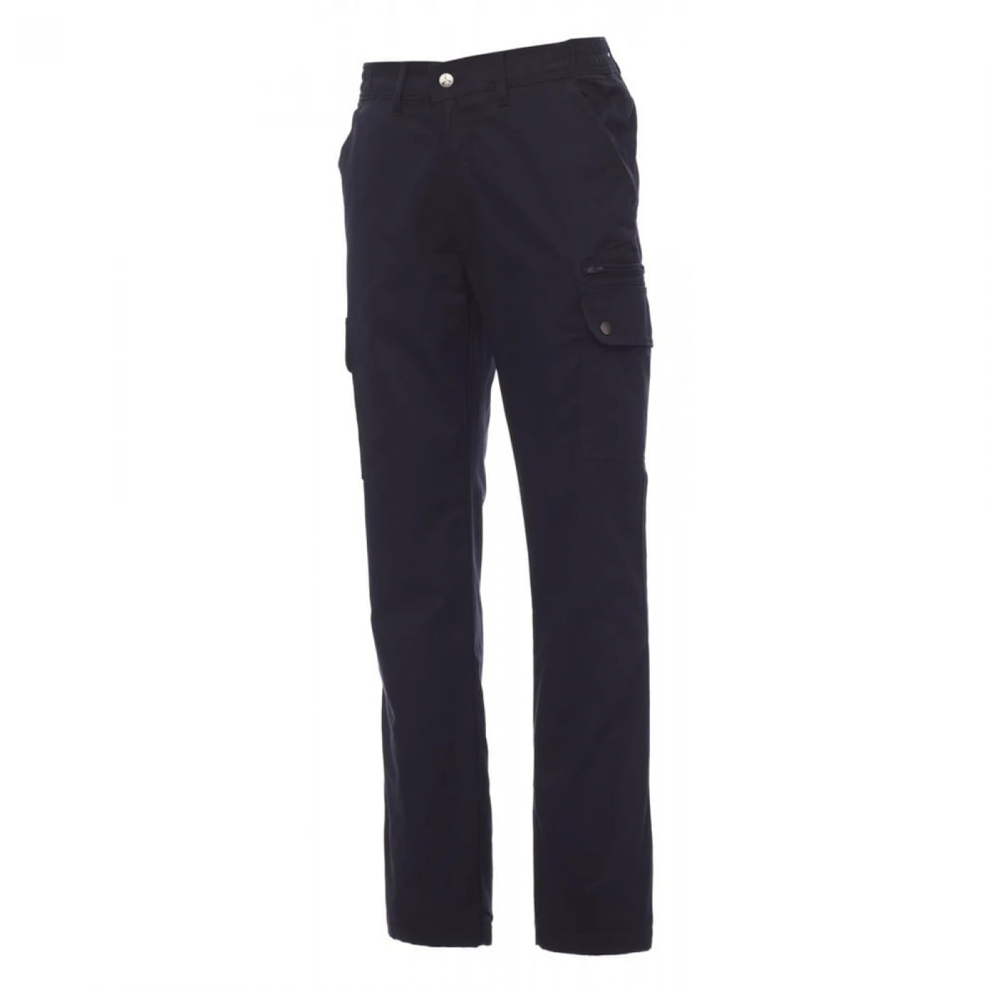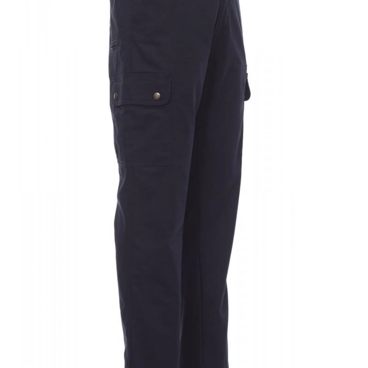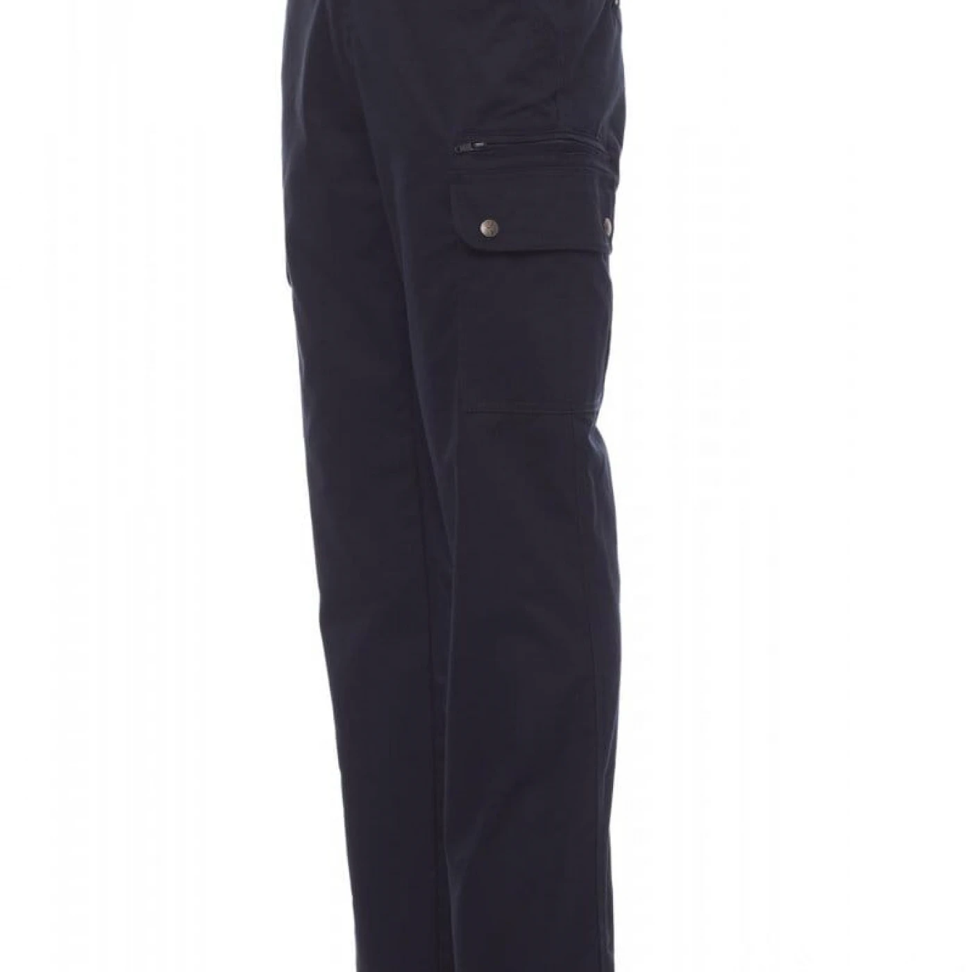 Pantaloni talie de iarna, pentru barbati, confectionati din bumbac 100% si captuseala interioara din poliester (greutate 110 gr/mp) Prevazuti cu elastic pe lateral și găici pentru curea. Închiderea se face cu fermoar si nasture metalic. Sunt echipati cu doua buzunare frontale cu croiala clasica, doua buzunare laterale cu clapete si capse metalice, un buzunar cu fermoar pe piciorul stang, un buzunar cu banda de masurat pe piciorul drept, doua buzunare cu fante la spate, prevazute cu nasturi si butoniere. \n