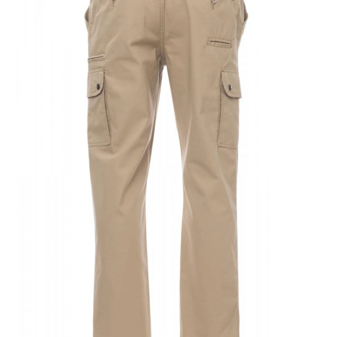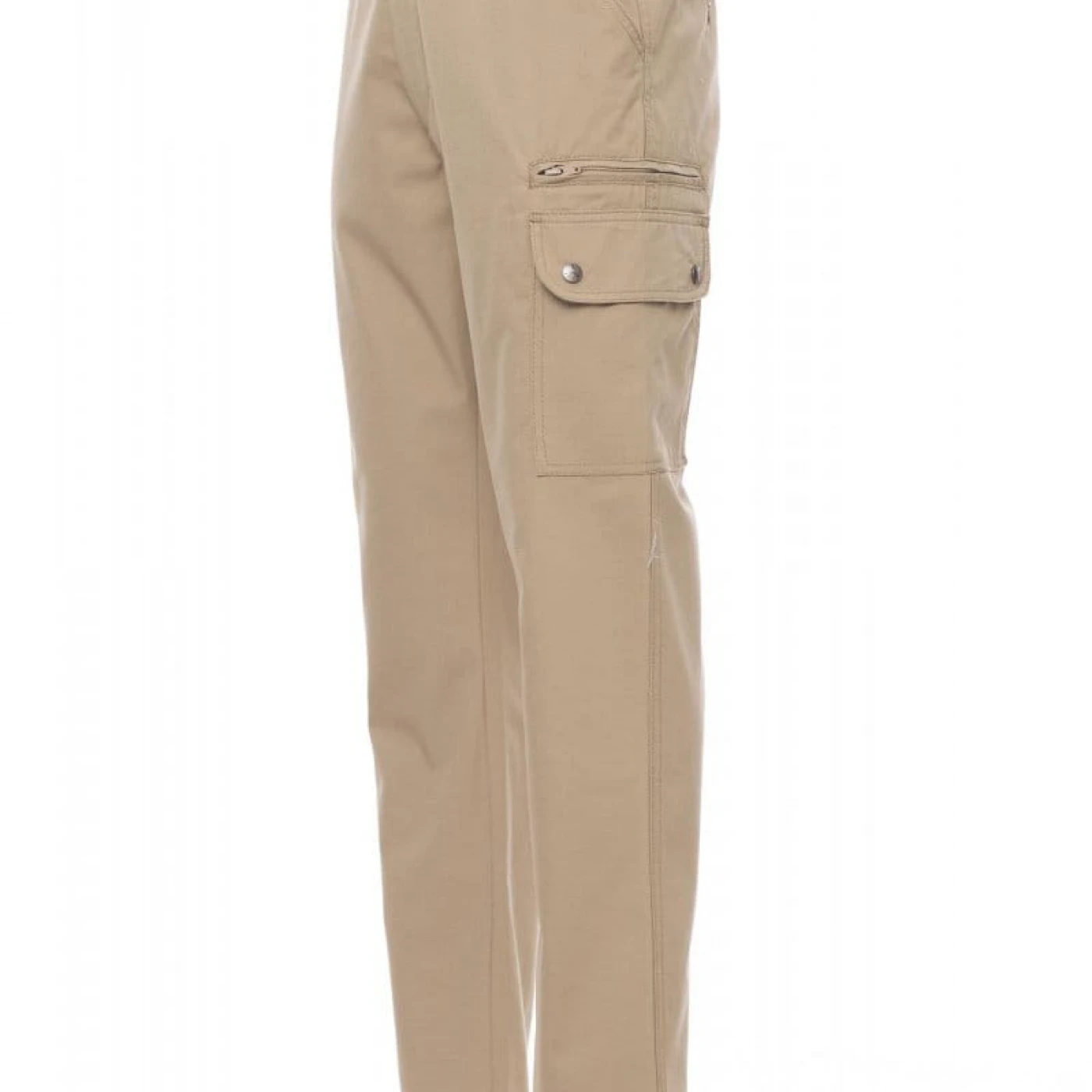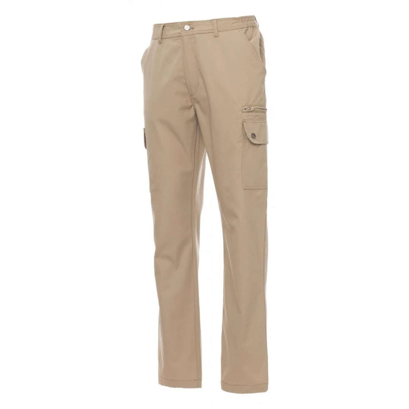 Pantaloni talie de vara, pentru barbati, confectionati din bumbac 100%, cu elastic pe lateral și găici pentru curea. Închiderea se face cu fermoar si nasture metalic. Sunt echipati cu doua buzunare frontale cu croiala clasica, doua buzunare laterale cu clapete si capse metalice, un buzunar cu fermoar pe piciorul stang, un buzunar cu banda de masurat pe piciorul drept, doua buzunare cu fante la spate, prevazute cu nasturi si butoniere.