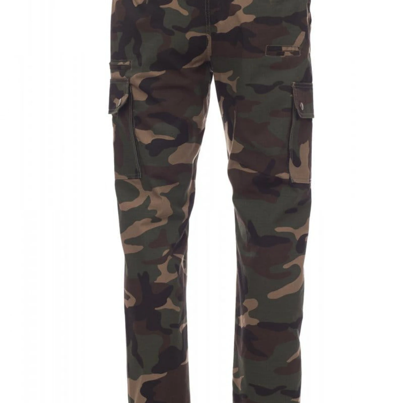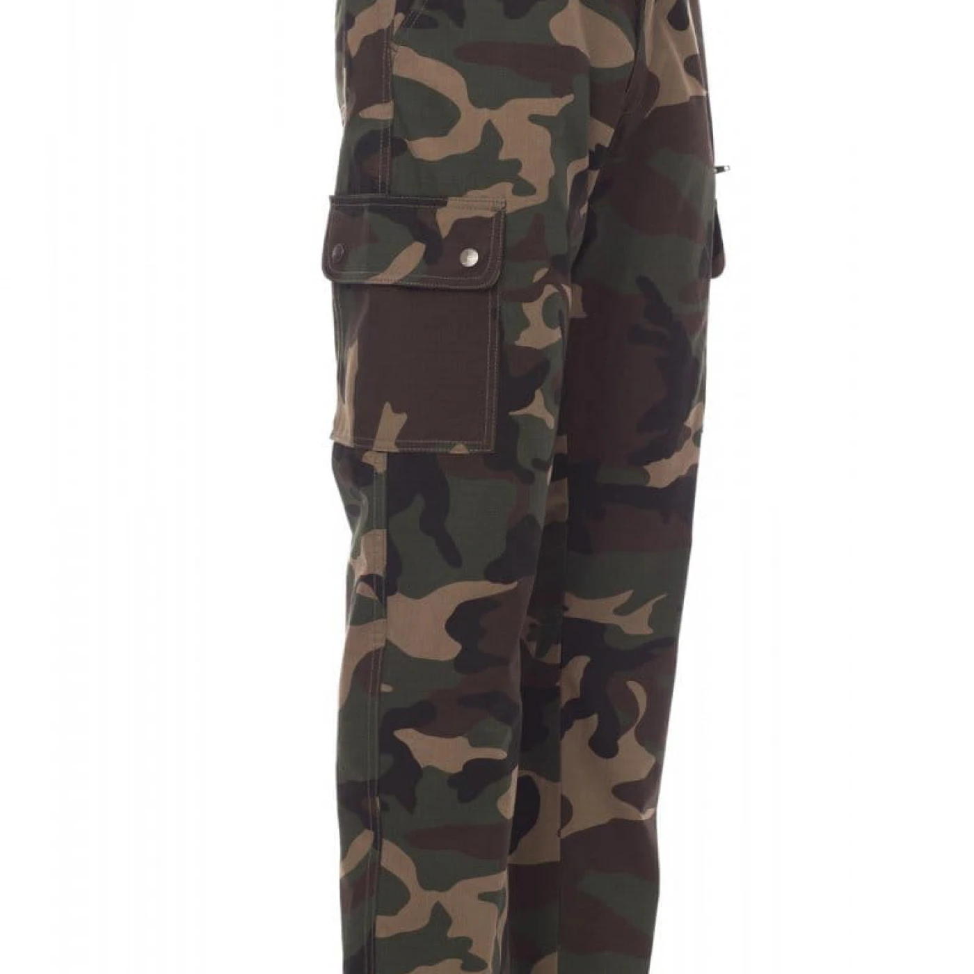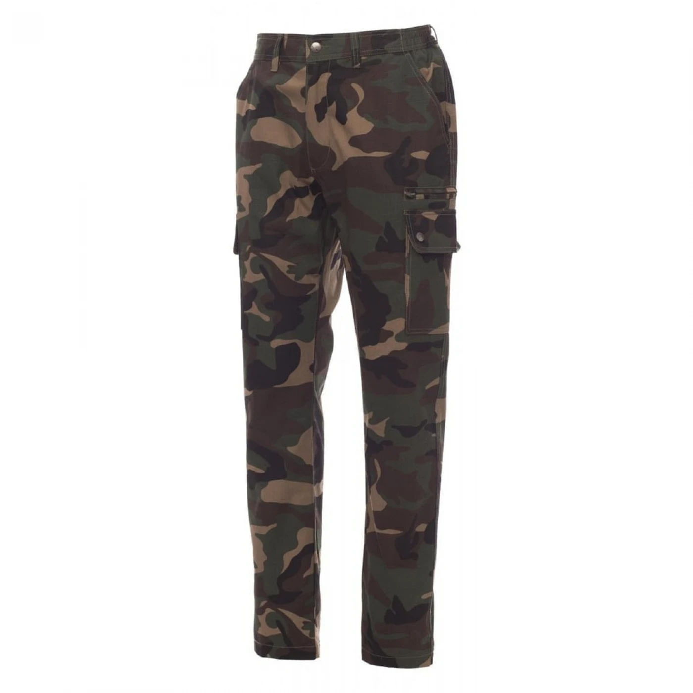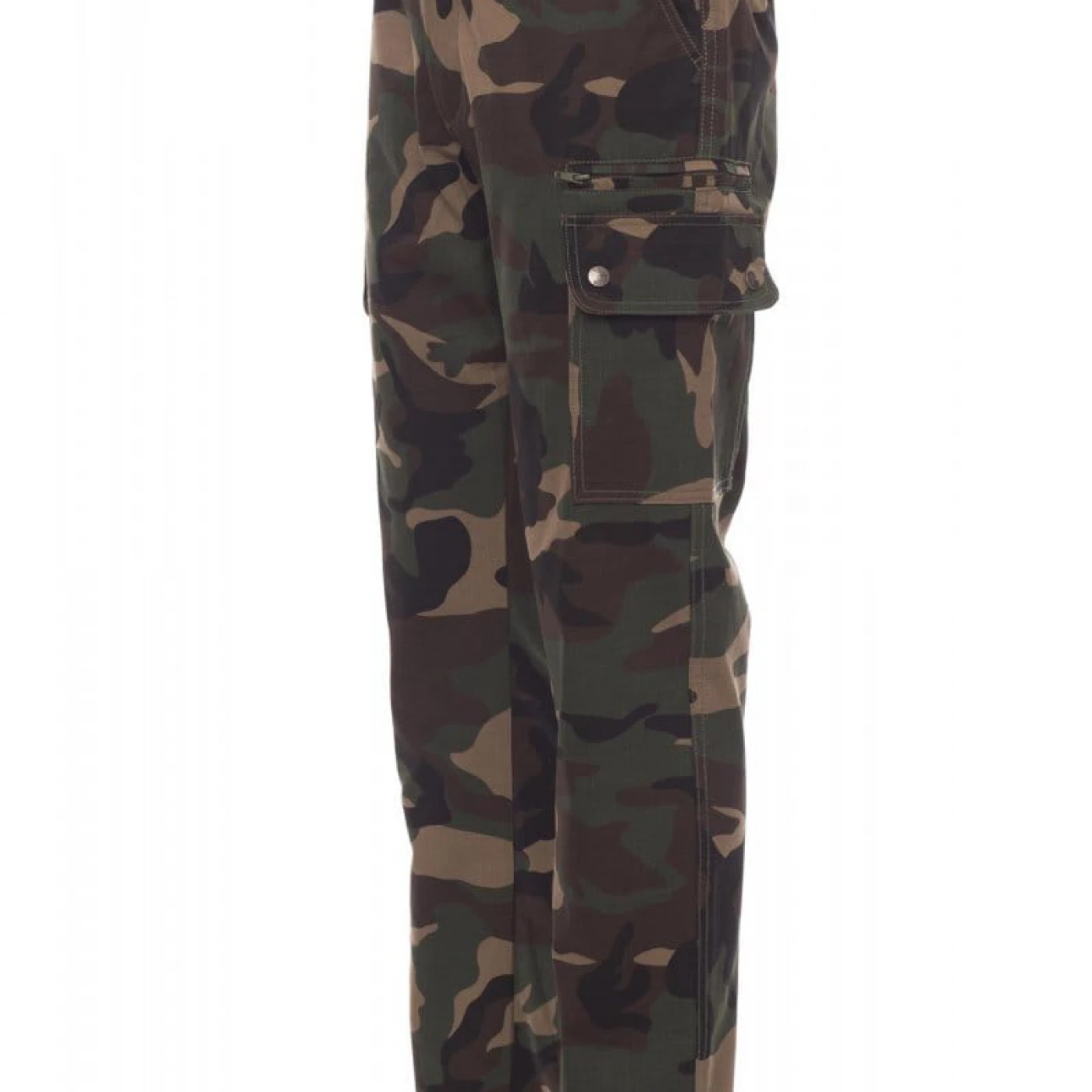 Pantaloni talie de vara, pentru barbati, confectionati din bumbac 100%, cu elastic pe lateral și găici pentru curea. Închiderea se face cu fermoar si nasture metalic. Sunt echipati cu doua buzunare frontale cu croiala clasica, doua buzunare laterale cu clapete si capse metalice, un buzunar cu fermoar pe piciorul stang, un buzunar cu banda de masurat pe piciorul drept, doua buzunare cu fante la spate, prevazute cu nasturi si butoniere.