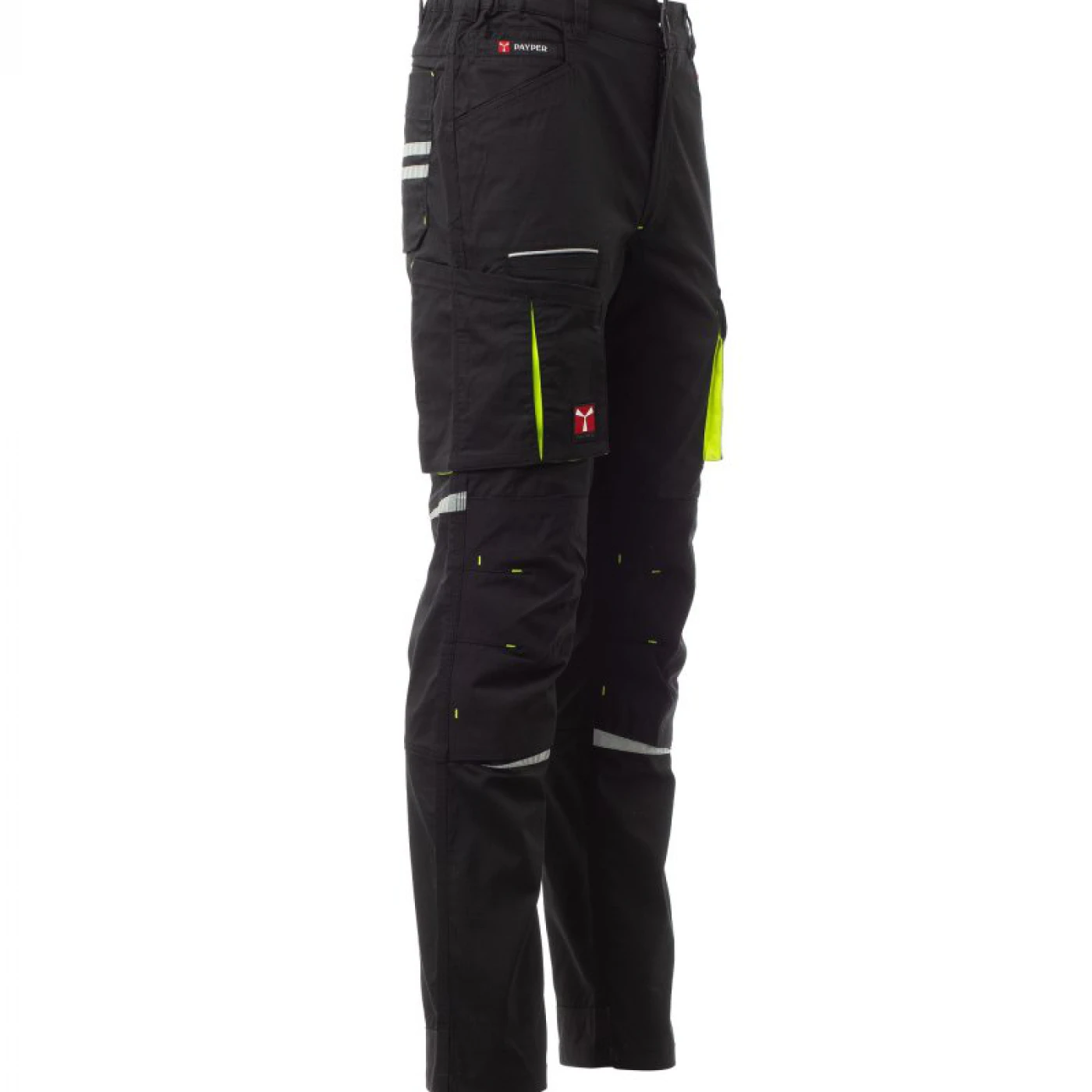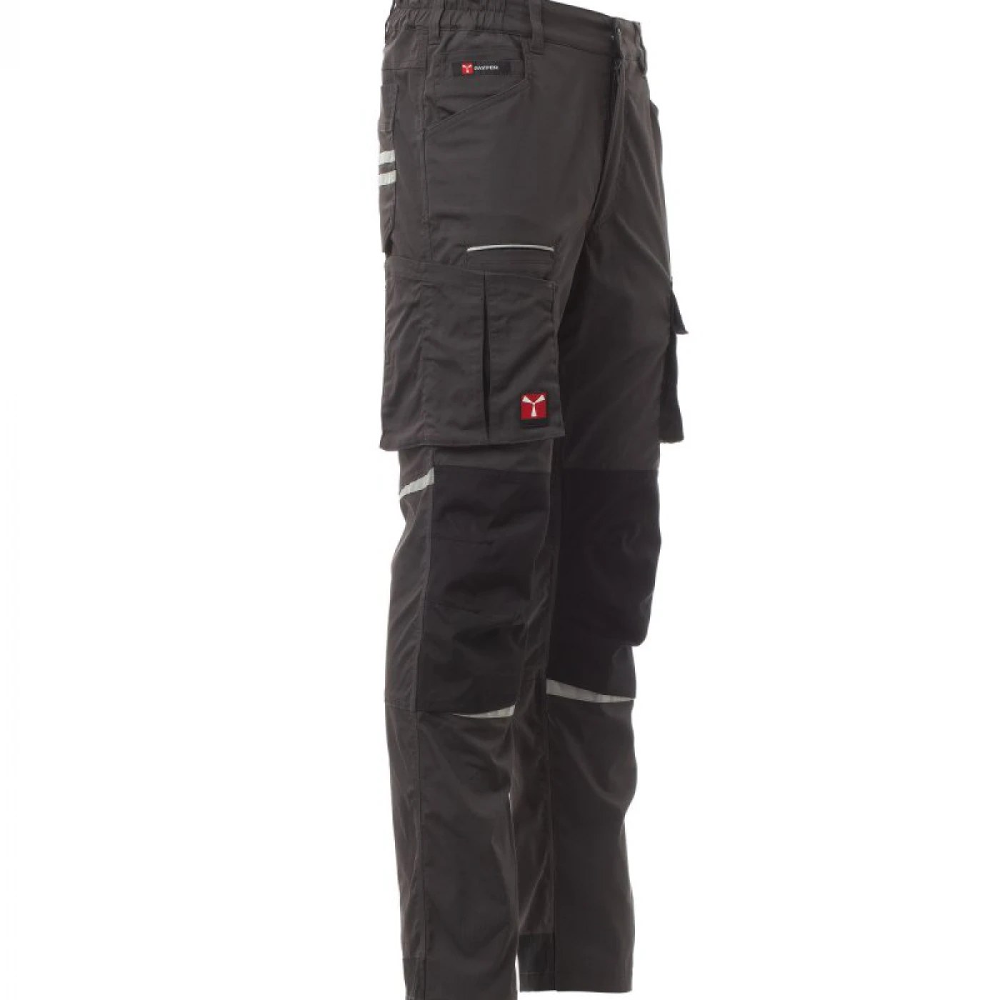 Pantaloni talie unisex cu aspect stretch confectionati dintr-un amestec de poliester, bumbac si elastomer de tip ripstop. Potriviti pentru perioada calda, usori, confortabili si foarte bine echipati din punct de vedere al depozitarii : doua buzunare frontale clasice si un mic buzunar cu fermoar pentru monezi pe partea stanga, doua buzunare frontale de tip burduf pe picioare inchise cu scai VELCRO, doua buzunare in partea din spate din care unul inchis cu scai VELCRO. Ambele picioare sunt echipate cu suporturi pentru genunchiere din material contrastant cu deschidere de jos si insertii reflectorizante care arata deschiderea. Are insertii reflectorizante in fata si benzi reflectorizante pe buzunarul din spate, cusaturi triplu intarite si contrastante.