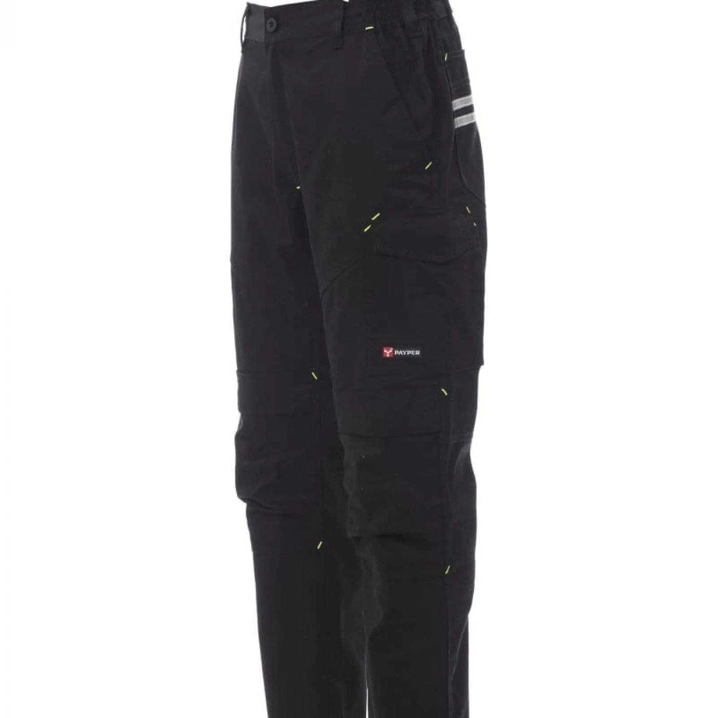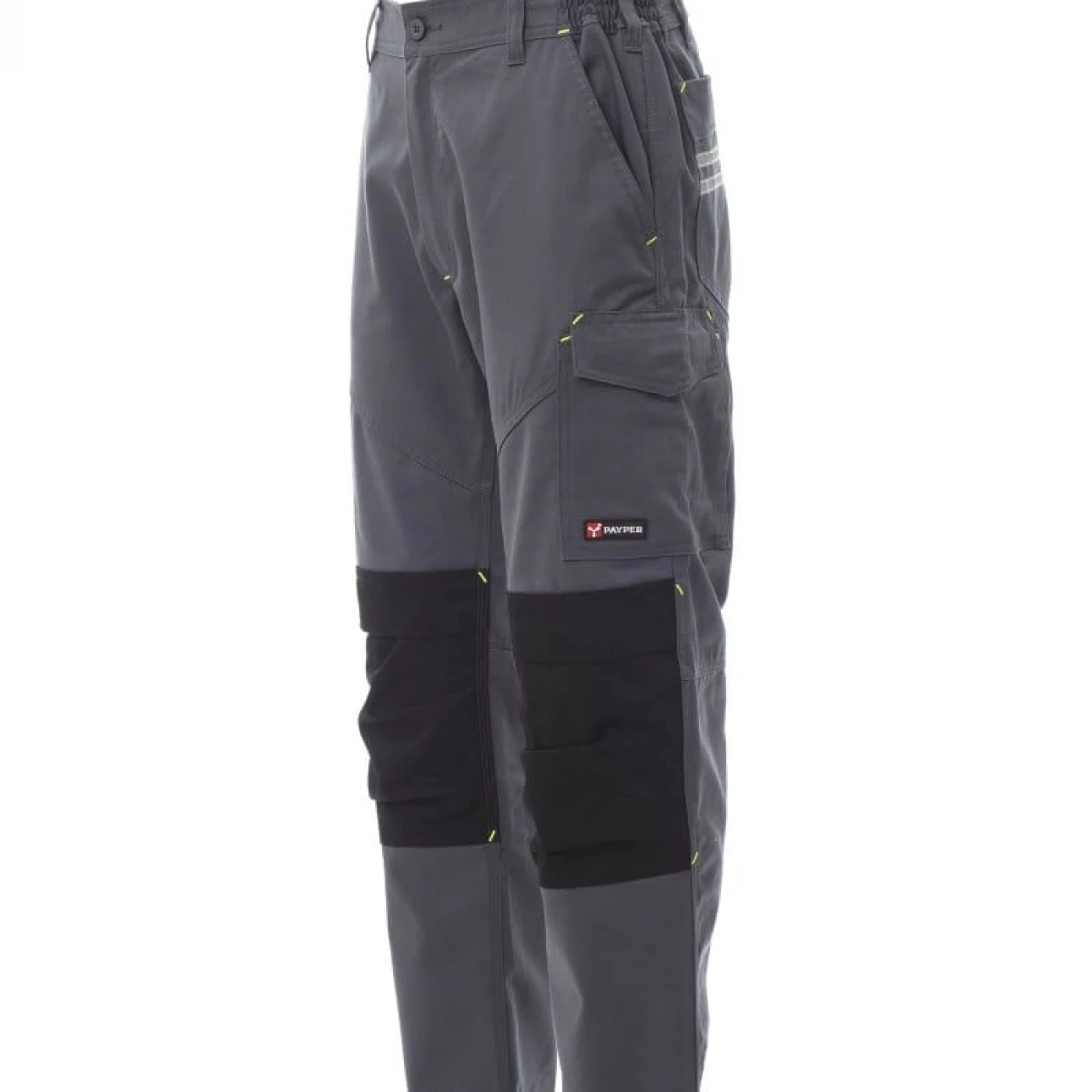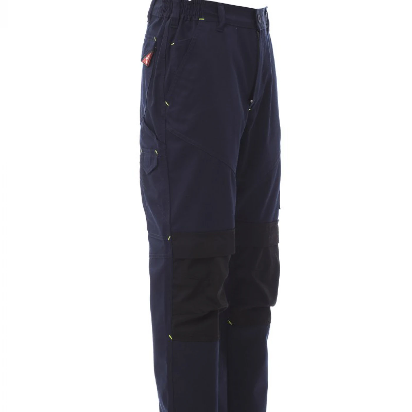 Pantaloni talie unisex confectionati dintr-un amestec de 65% polyester si 35% bumbac. Talie elastica si prevazuta cu gaici pentru curea. Echipati cu doua buzunare frontale clasice, un buzunar lateral pe piciorul stang cu inchidere LOCK SYSTEM si doua buzunare la spate, unul deschis si unul cu inchidere cu scai VELCRO. Ambele picioare sunt echipate cu suporturi pentru genunchiere din material contrastant cu deschidere superioara. Are insertii reflectorizante pe buzunarul din spate si cusaturi triplu intarite.
