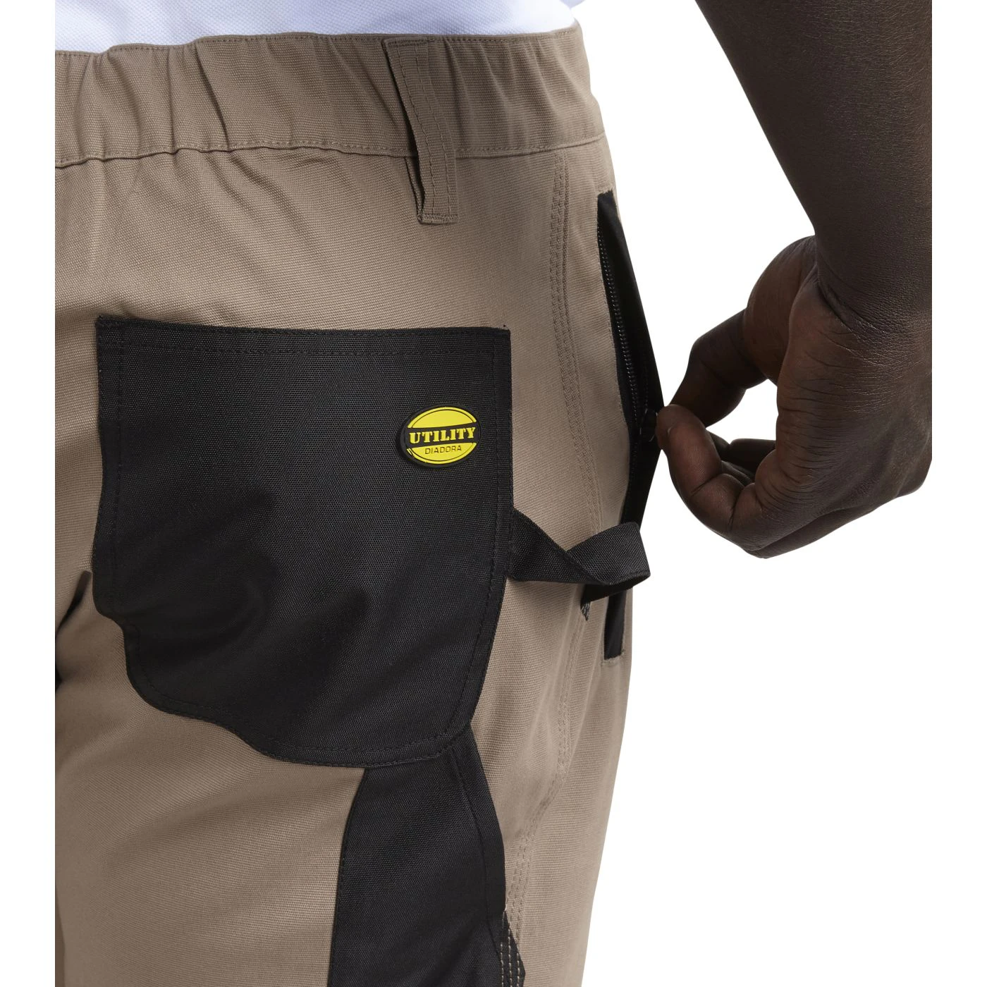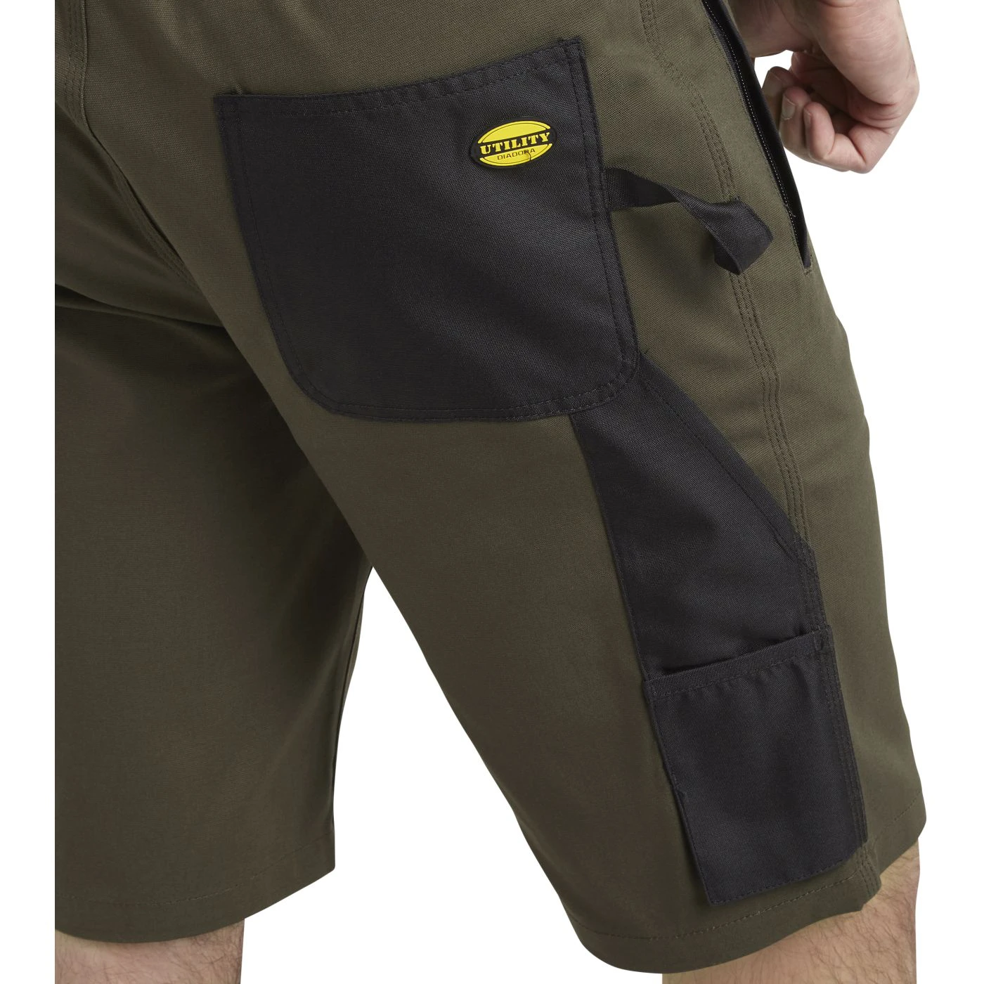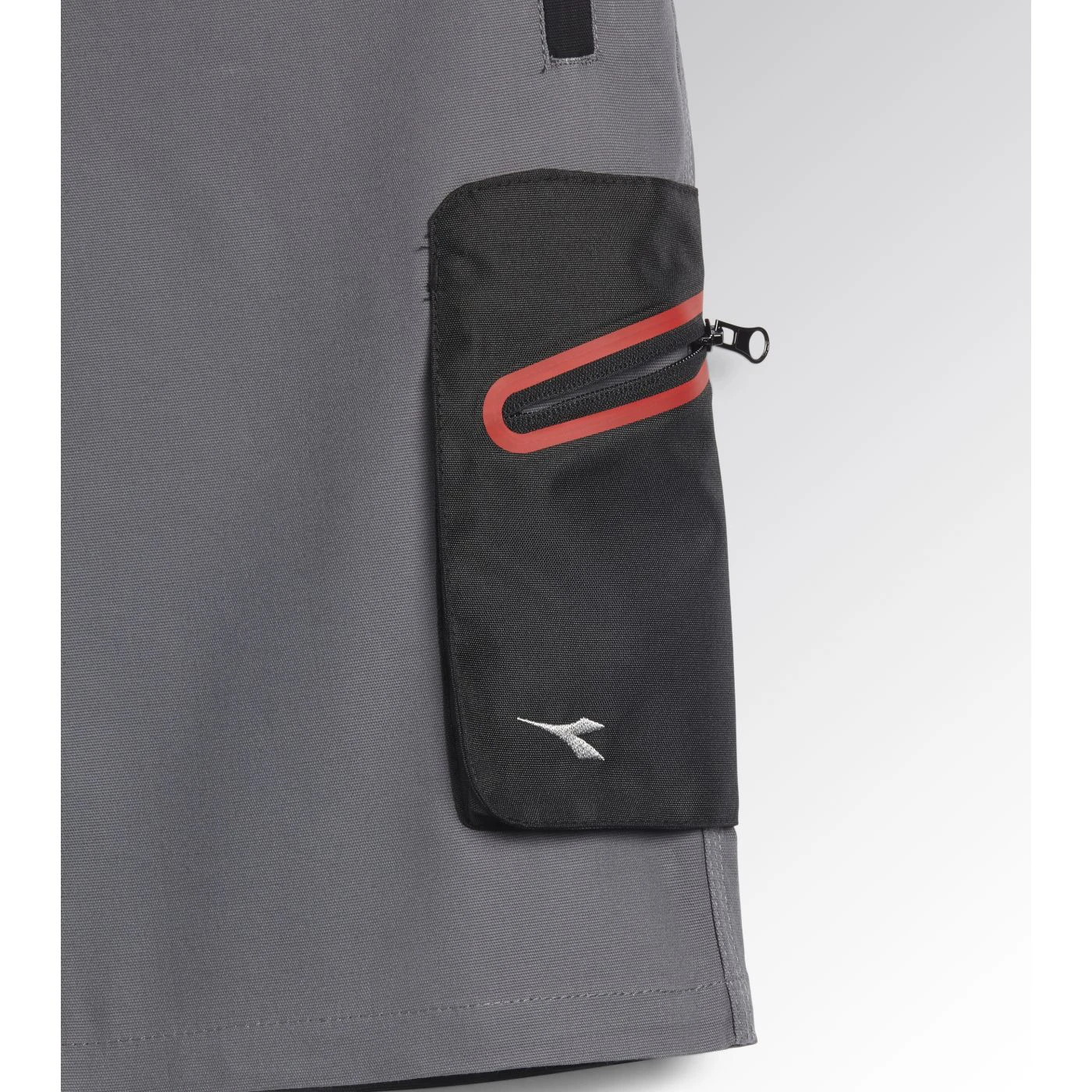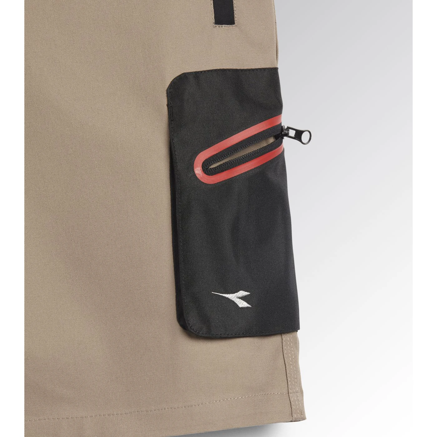 Stretch cotton canvas Bermuda shorts with zip side pocket in abrasion-resistant polyester Oxford fabric and red heat-taped detailing and zip hand pockets. Elasticated waist, ruler and hammer holder, triple stitching.
