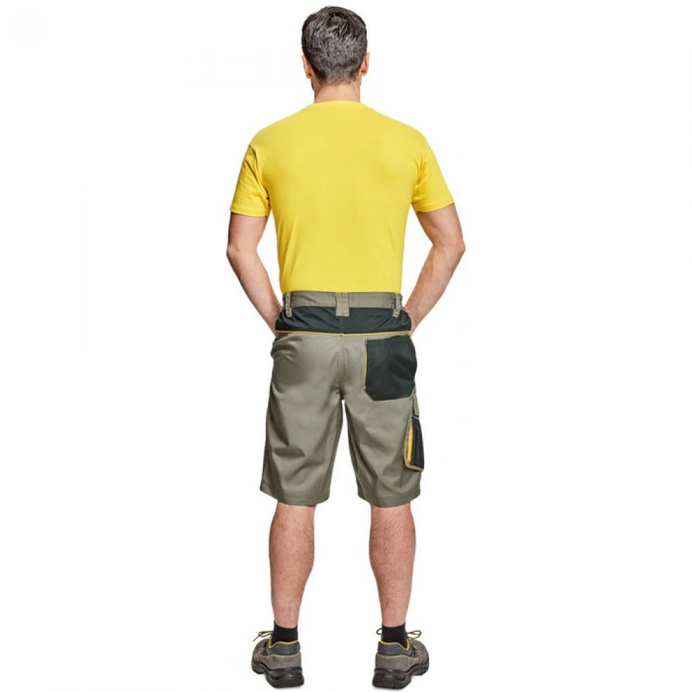 Pantaloni scurți de lucru pentru bărbați din material bogat din bumbac; croială modernă; 2 buzunare laterale; 1 buzunar lateral multifuncțional pe picior; buzunar spate cu velcro; talie elastică; inel D.