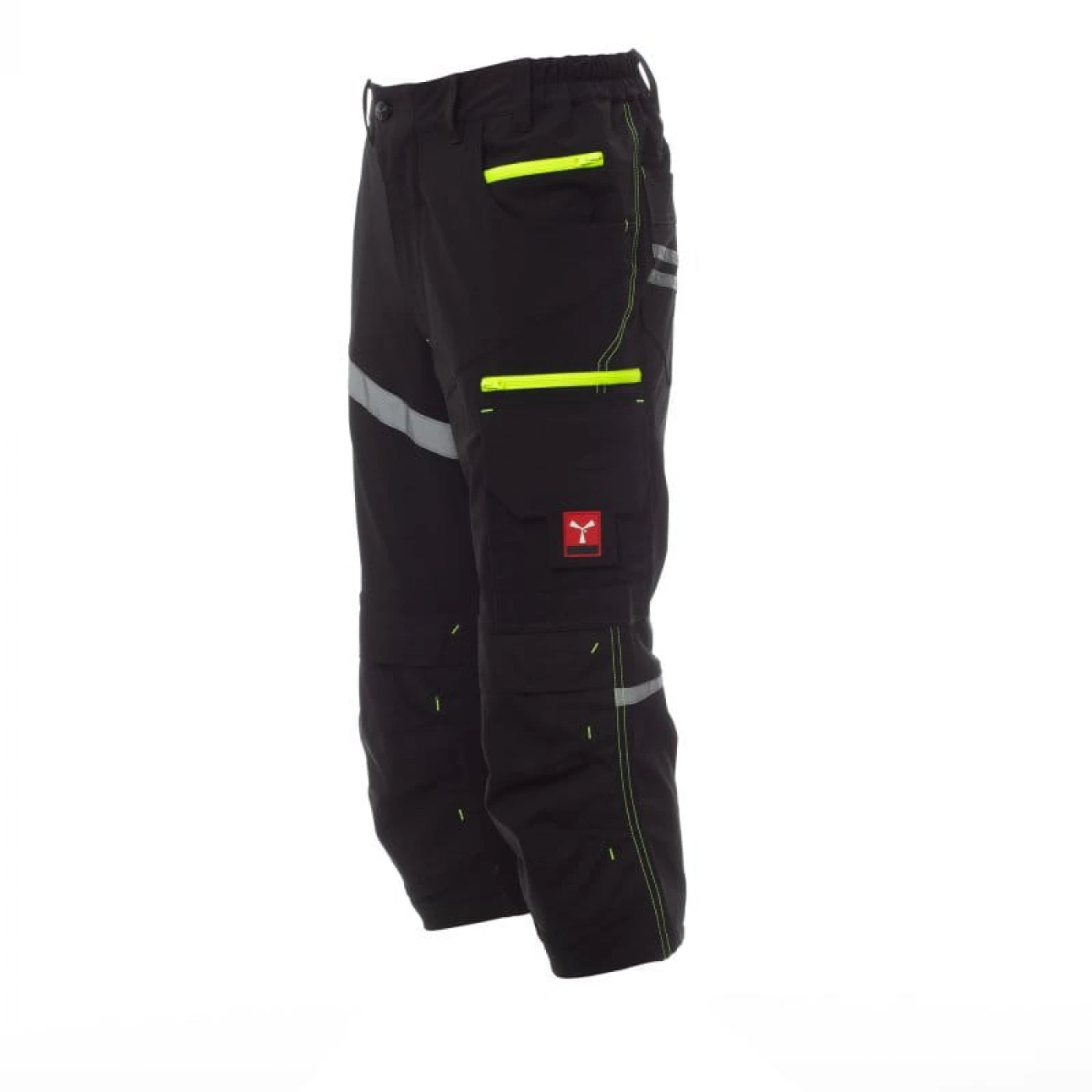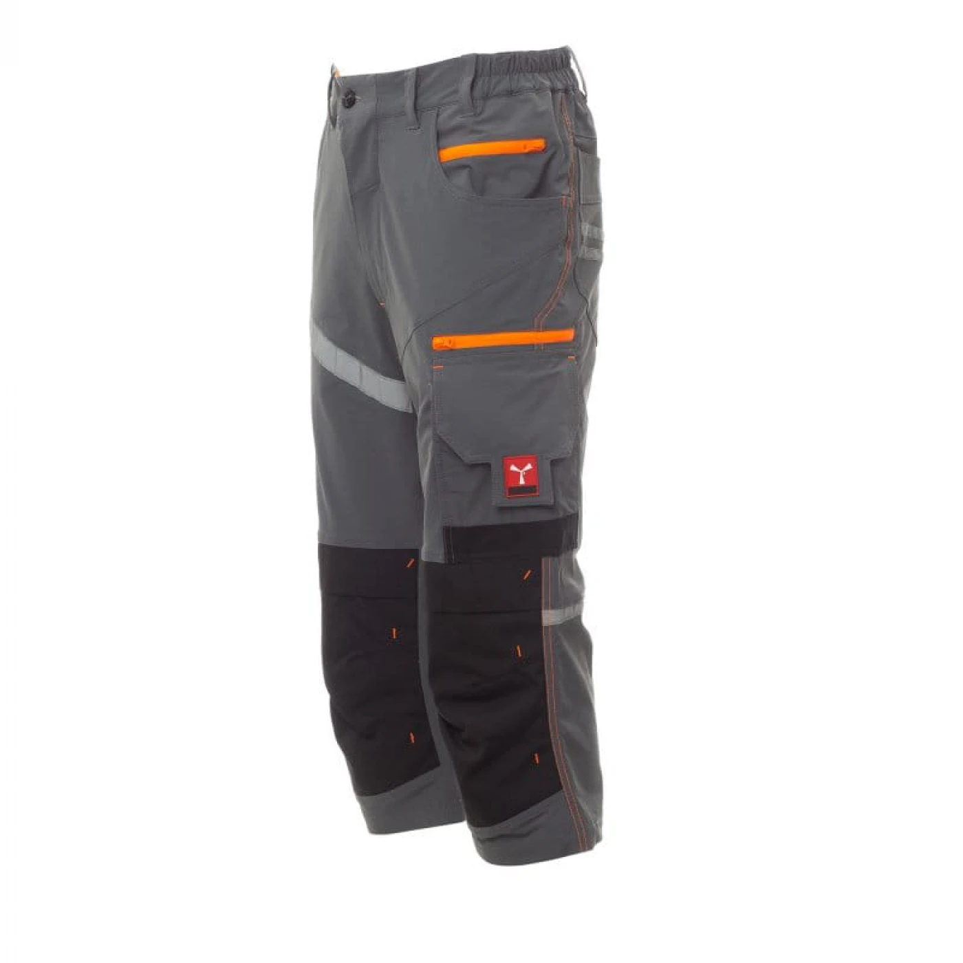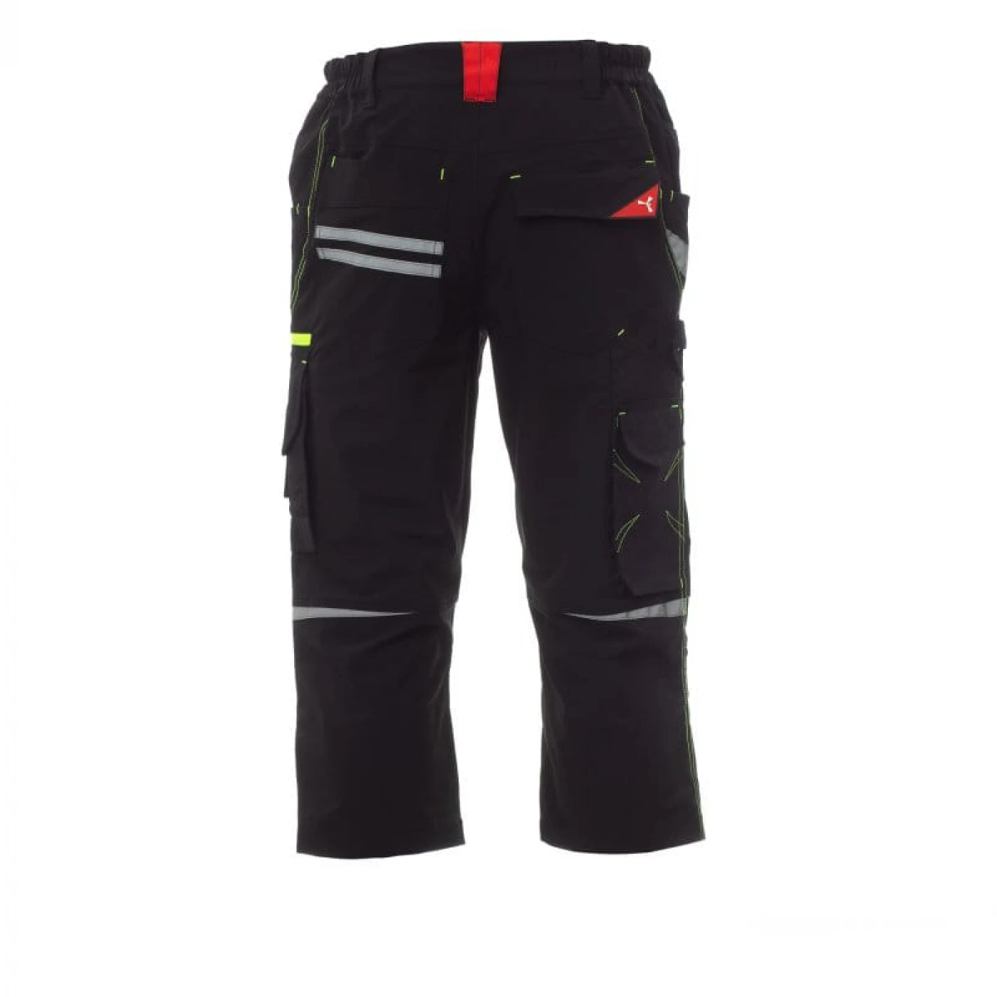 Pantaloni trei sferturi unisex cu aspect stretch confectionati dintr-un amestec de 90% nylon de inalta calitate si 10% elastan. Foarte bine echipati din punct de vedere al depozitarii : doua buzunare frontale clasice si un mic buzunar cu fermoar pentru monezi pe partea stanga, trei buzunare pe piciorul stang din care unul inchis cu scai VELCRO si doua buzunare mai mici inchise cu fermoar, doua buzunare in partea din spate din care unul inchis cu scai VELCRO. Ambele picioare sunt echipate cu suporturi pentru genunchiere din material contrastant cu deschidere superioara. Are insertii reflectorizante in fata si benzi reflectorizante pe buzunarul din spate, cusaturi triplu intarite si contrastante.