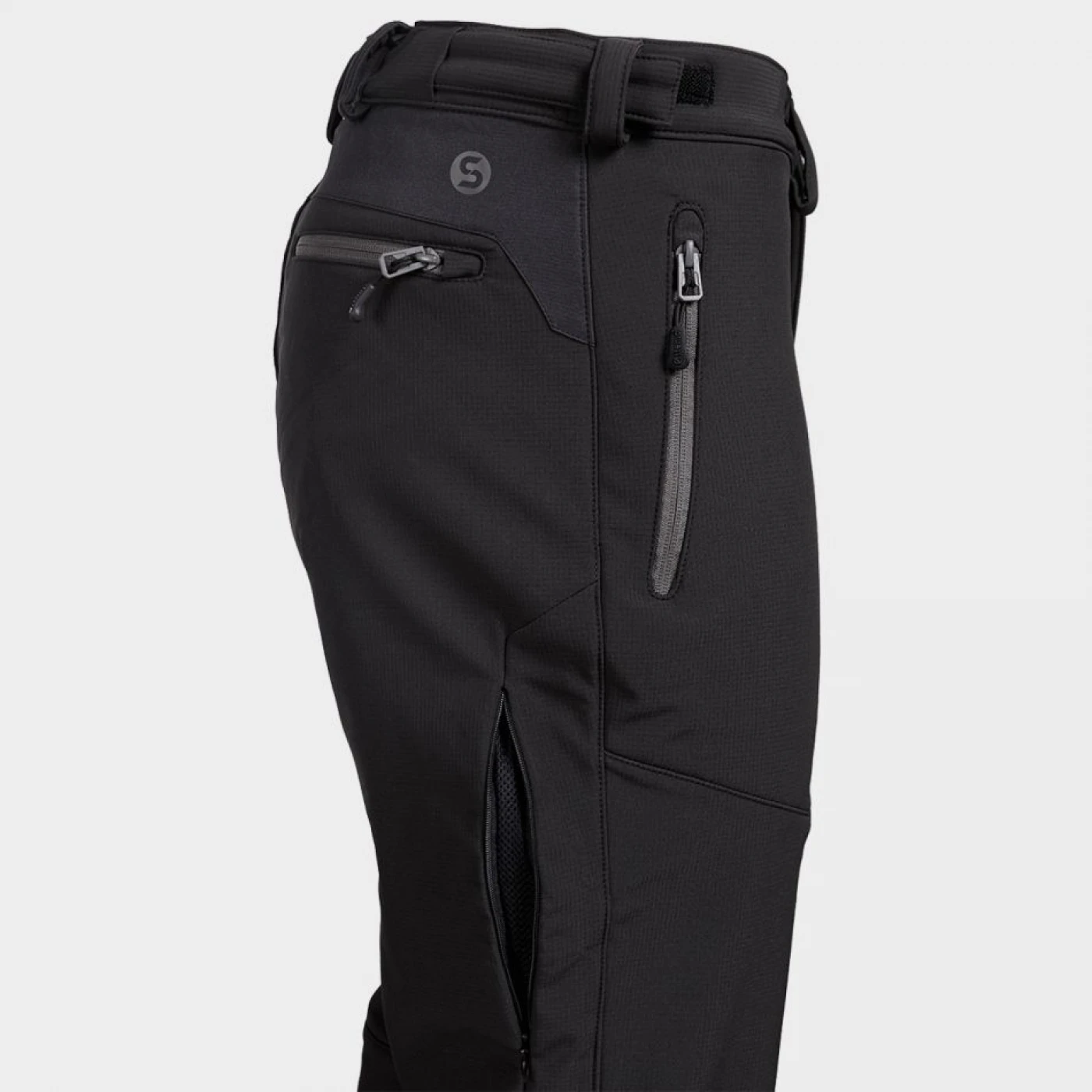 • Talia elastică, reglabilă, pentru o potrivire personalizată. • Două buzunare frontale și două buzunare la spate, toate cu fermoar, pentru depozitarea în siguranță a obiectelor. • Genunchi întăriți, rezistenți la uzură, pentru durabilitate sporită. • Orificii de ventilație cu fermoar ascuns pe lateralele coapselor, pentru aerisire îmbunătățită. • Manșete elastice interioare la baza pantalonului, cu nasture pentru ajustare. • Fermoar lateral la partea de jos a cracului, pentru mai mult confort și încălțare/descălțare facilă.