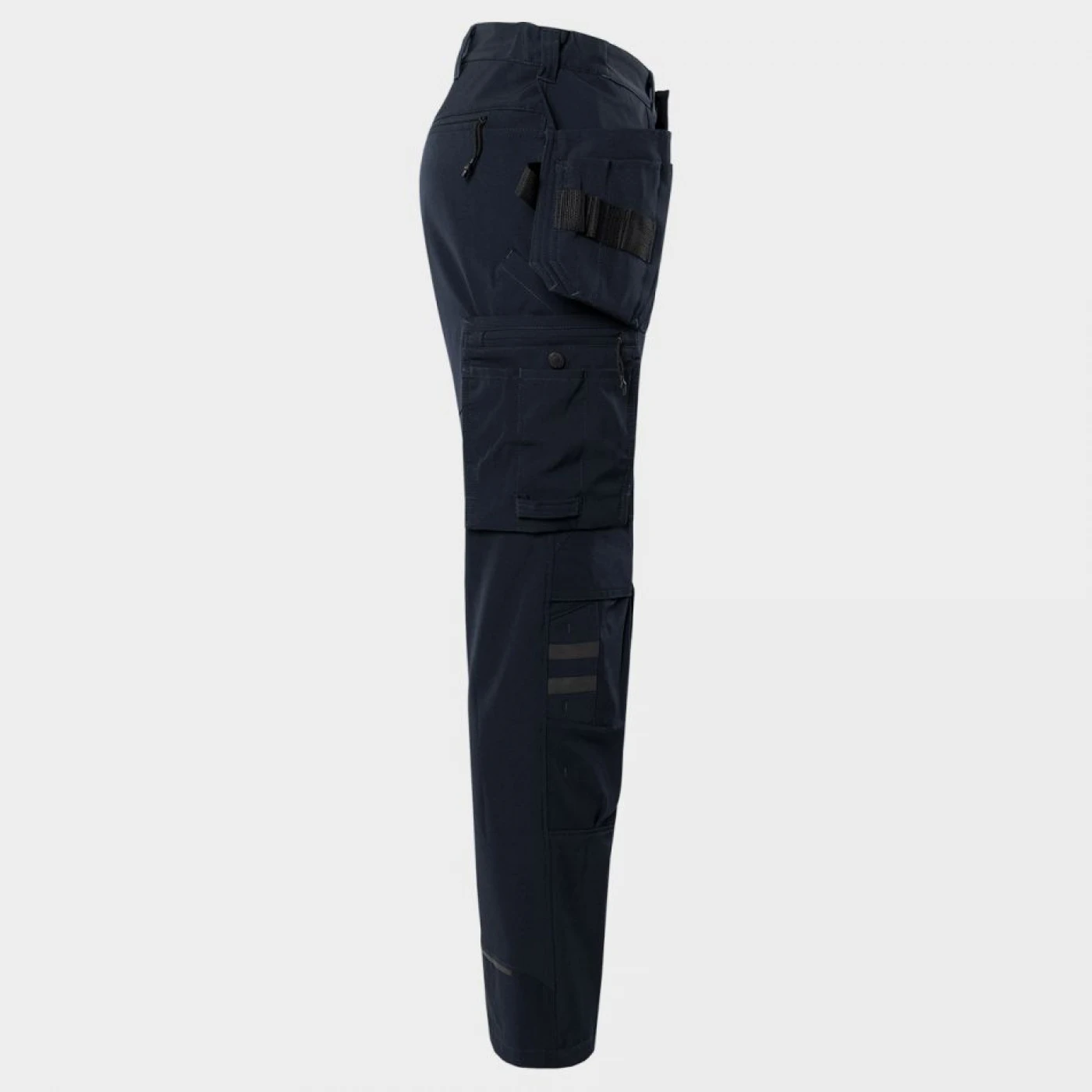 Pantaloni de lucru, realizați din material ușor 4-stretch cu poliester reciclat și zone ripstop rezistente, pentru libertate optimă de mișcare. PFAS free.